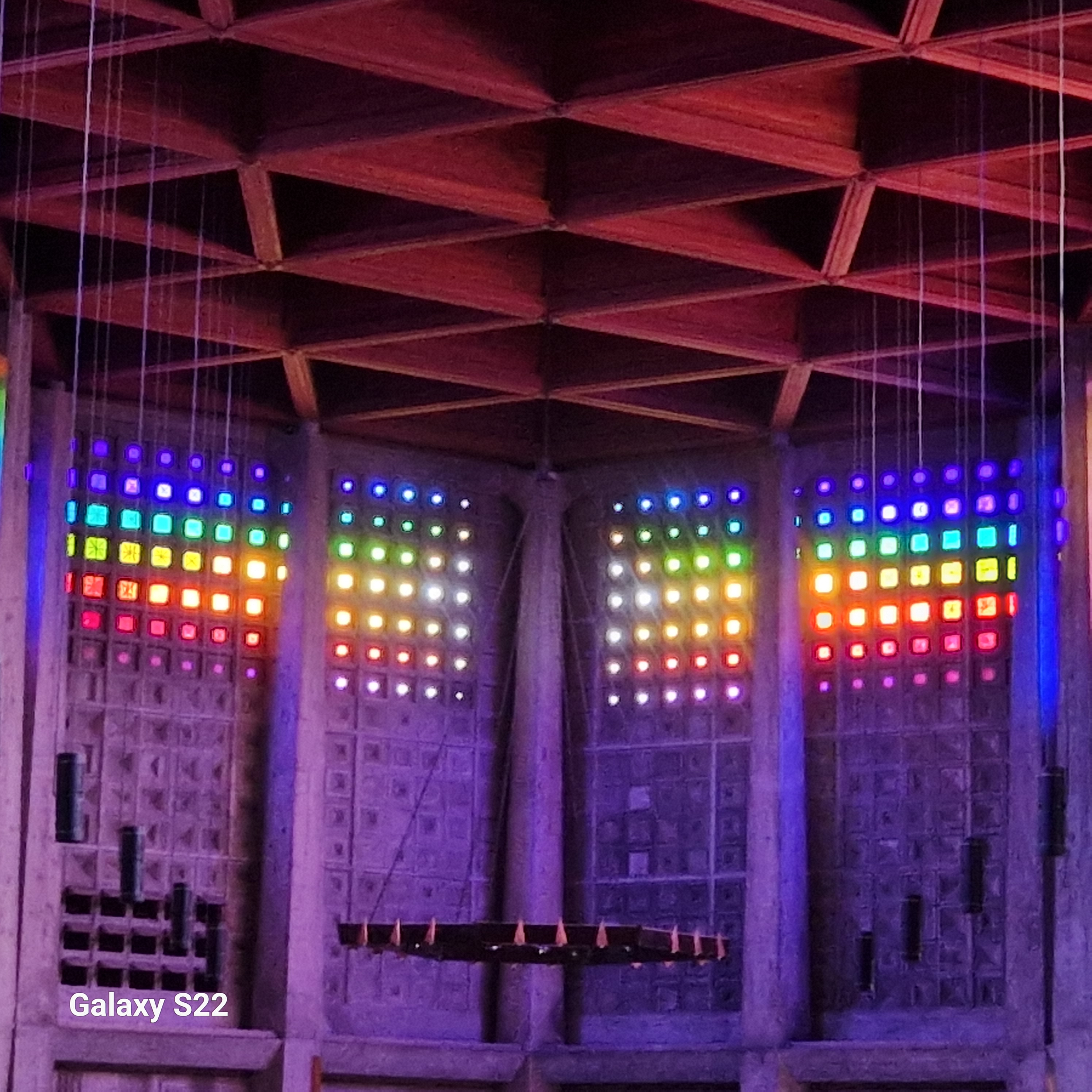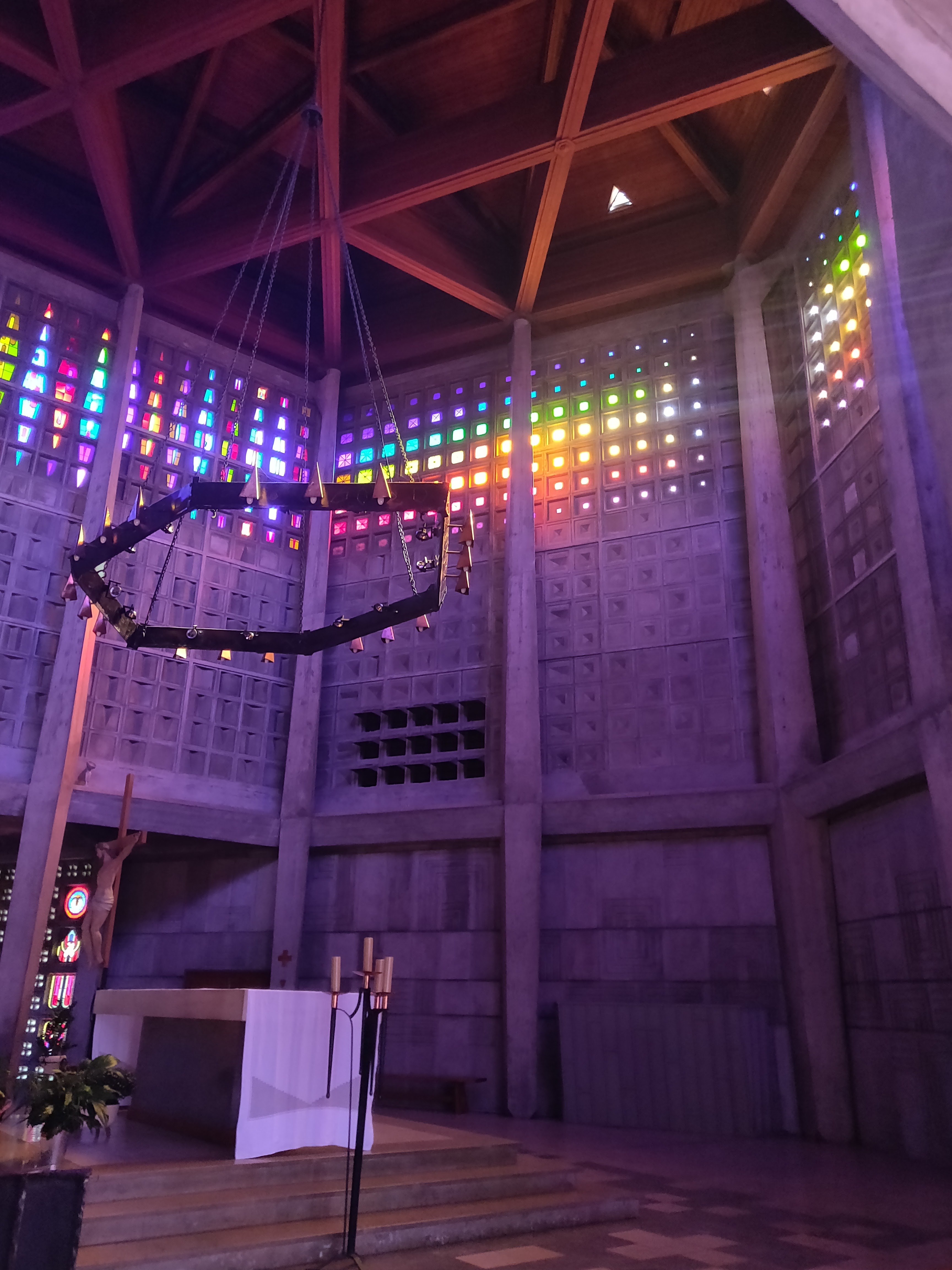 Église très originale, bel exercice d'architecture. A visiter lorsqu'il y a du soleil pour apprécier pleinement les cristaux qui servent de vitraux, cela donne une ambiance surprenante. Même les bénitiers sont en cristal.