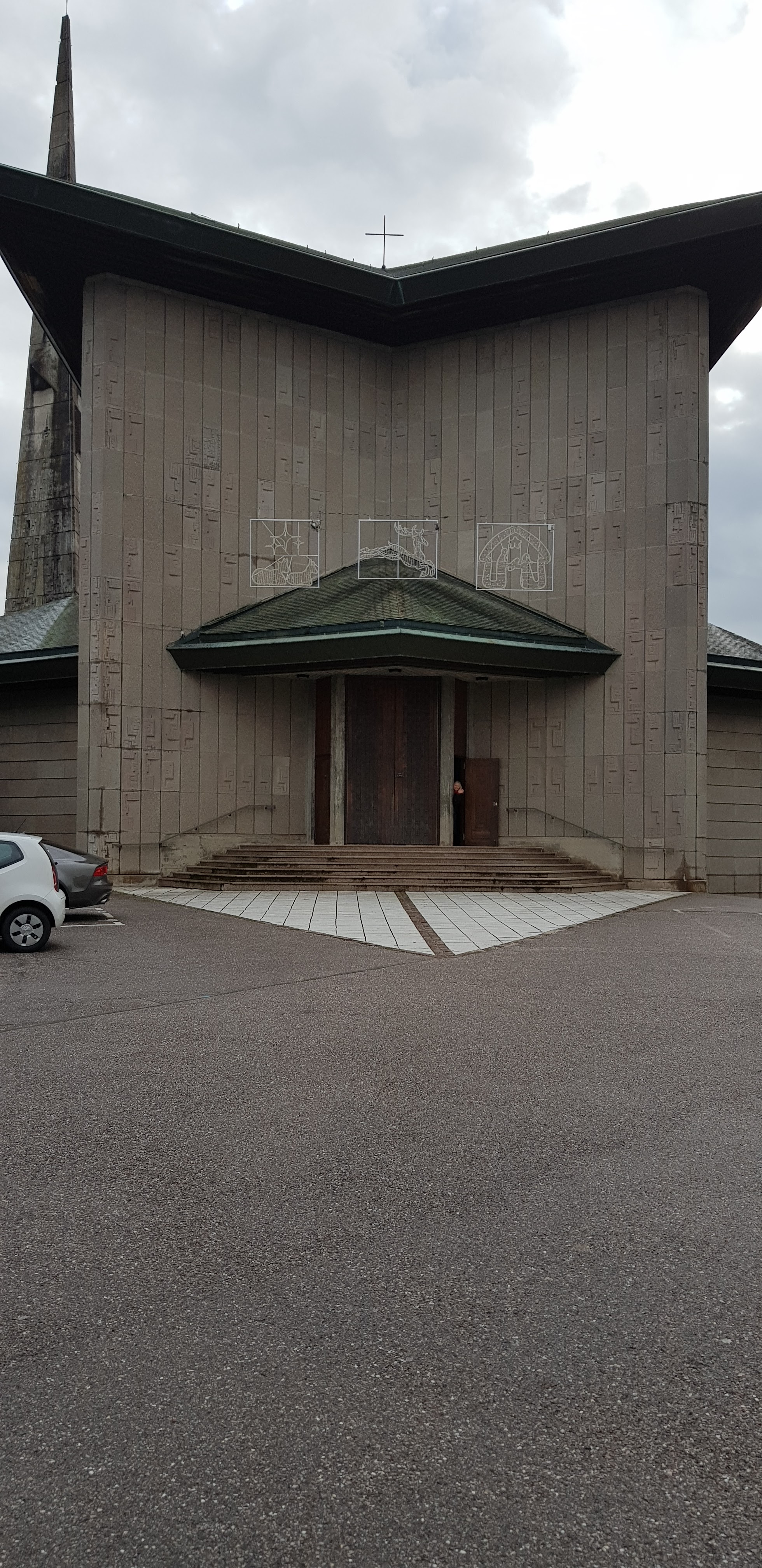 Présent pour la messe des rameaux, beaucoup de monde (mais aussi de vent et de fraîcheur). L'église est originale mais un peu sombre malgré tout (surtout sans soleil dehors). Il manque 1 accès handicapés car c'est bien de vouloir nous faire monter au 7ème ciel mais ça fait 7 marches à franchir... seul bémol mais de taille avec des personnes âgées.