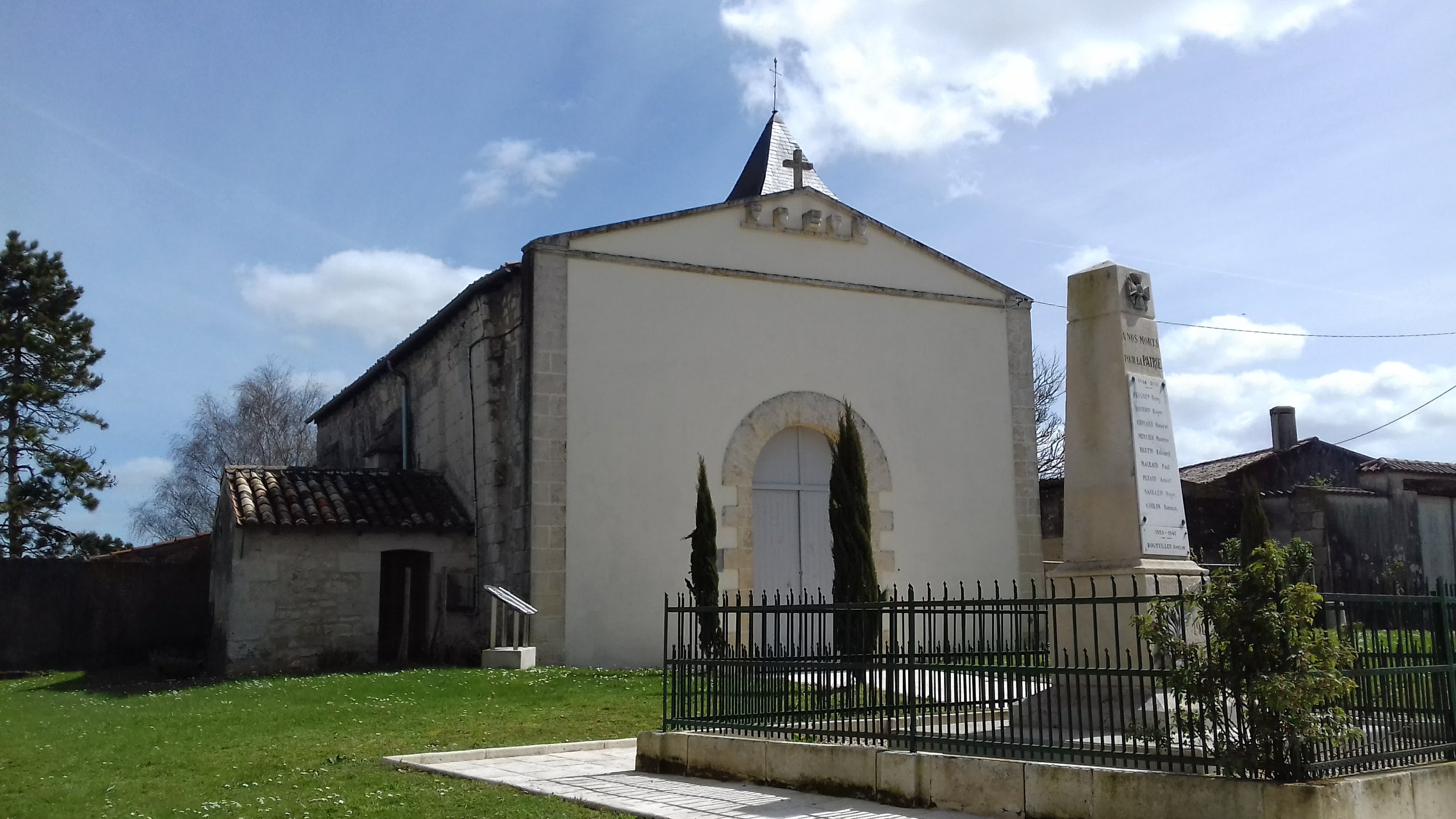 Sa façade figurait dans la collection des façades remarquables romanes de Saintonge et ce au XII ème Siècle. Elle a bien changée, tte simple et blanche avec son portail. Une tour clocher carrée en pierre. Intérieur tout simple également et sa toiture rabaissée.
