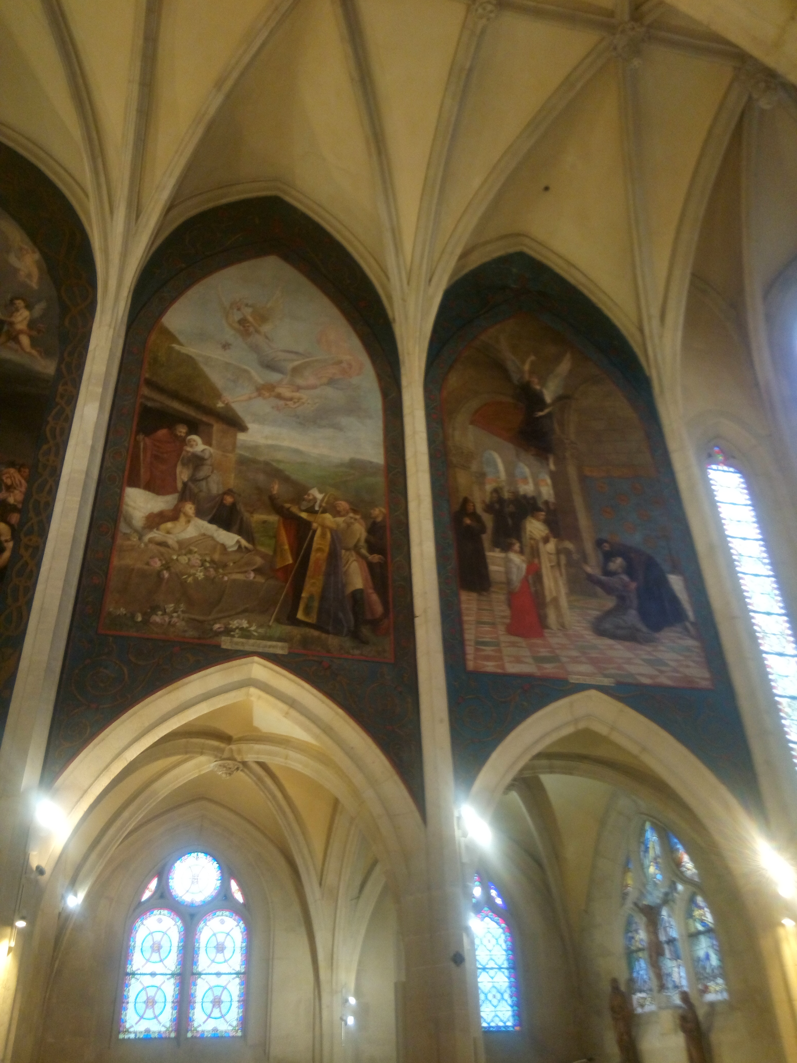 belles fresques de St Rémi et Ste Geneviève; à l'intérieur de la nef