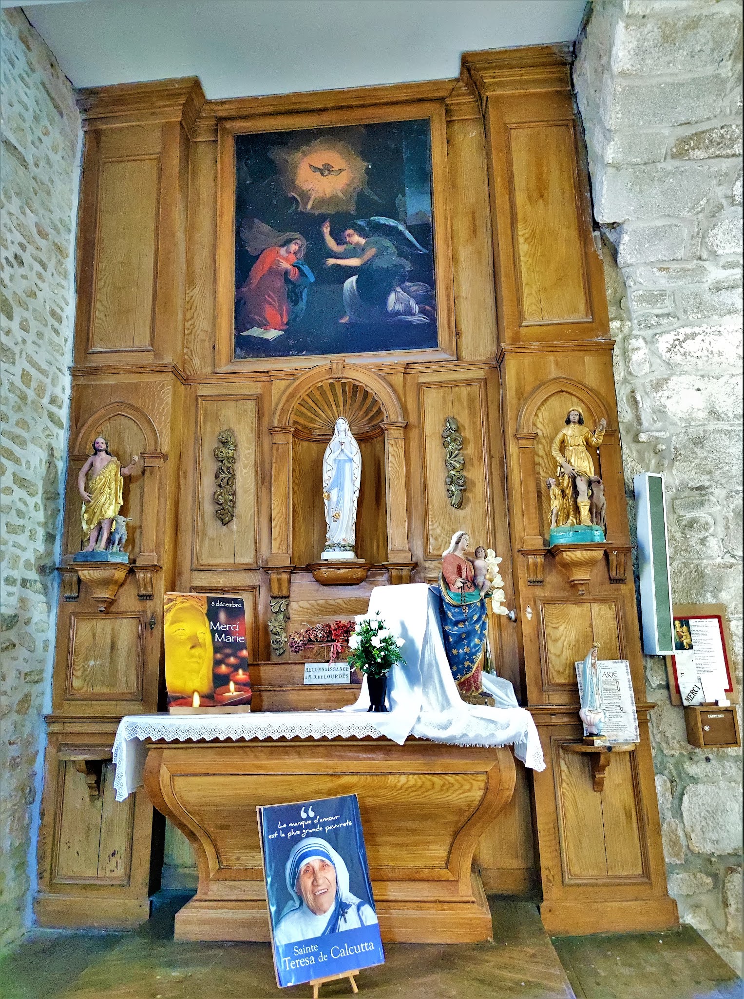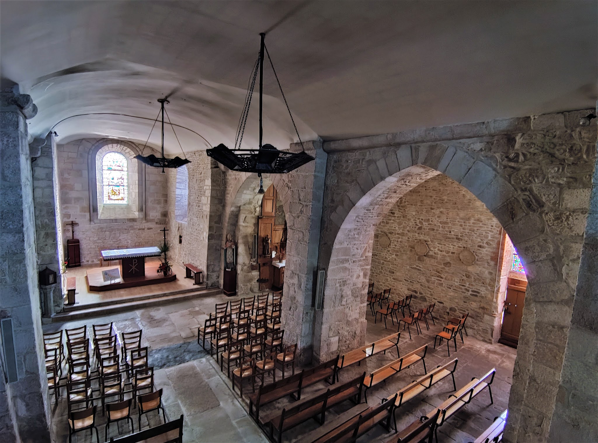Ouverte et accueillante, un fascicule pour une visite commentée serait le bienvenu. Cette église aux origines romanes, modifiée aux 15ème et 17ème siècles, vous accueille par un clocher-donjon carré imposant, dont la façade, puissamment contrefortée, est bordée au Nord et au Sud par l'amorce des 2 collatéraux. Si la flèche charpentée allège un peu cette façade Ouest, la sensation de puissance réapparait lorsque l'on pénètre dans la nef, à la vue des massifs piliers et arcades séparant les 3 vaisseaux. L'ensemble est plafonné. De belles choses sont à découvrir, statuaire, retables et leurs toiles peintes, en très bon état. Les vitraux sont intéressants, L'église elle-même est ouverte et accueillante. Un fascicule pour une visite commentée serait le bienvenu.