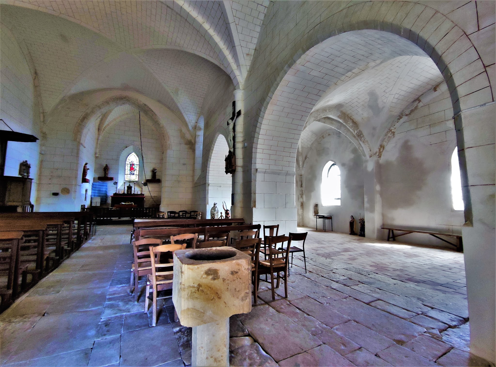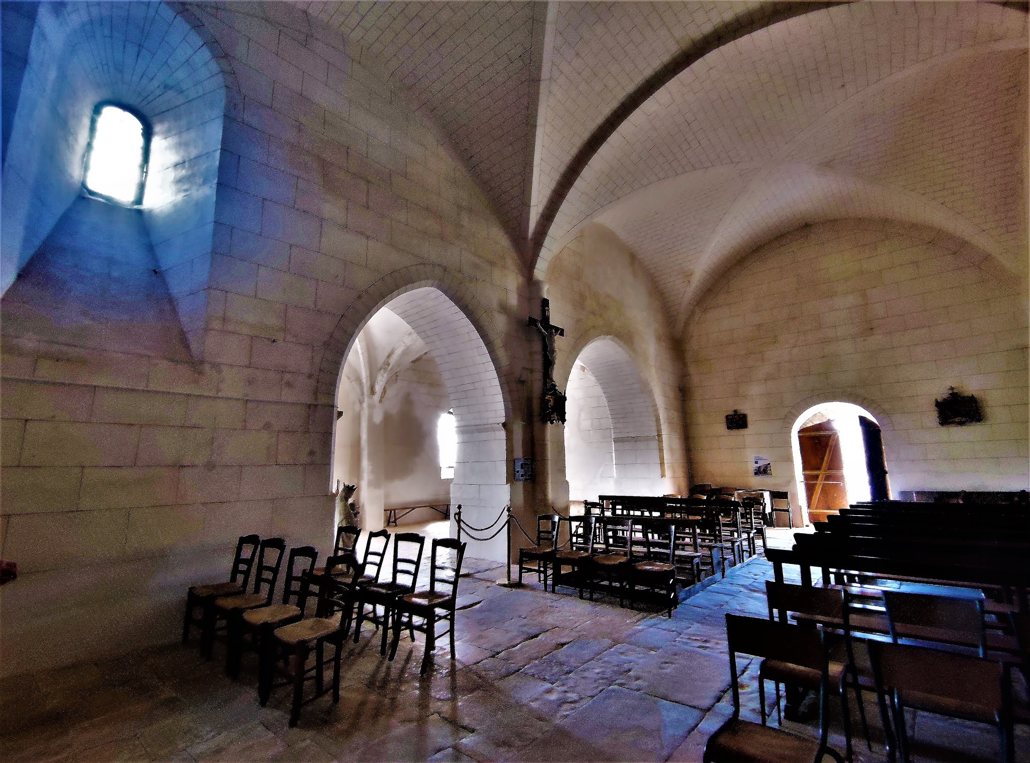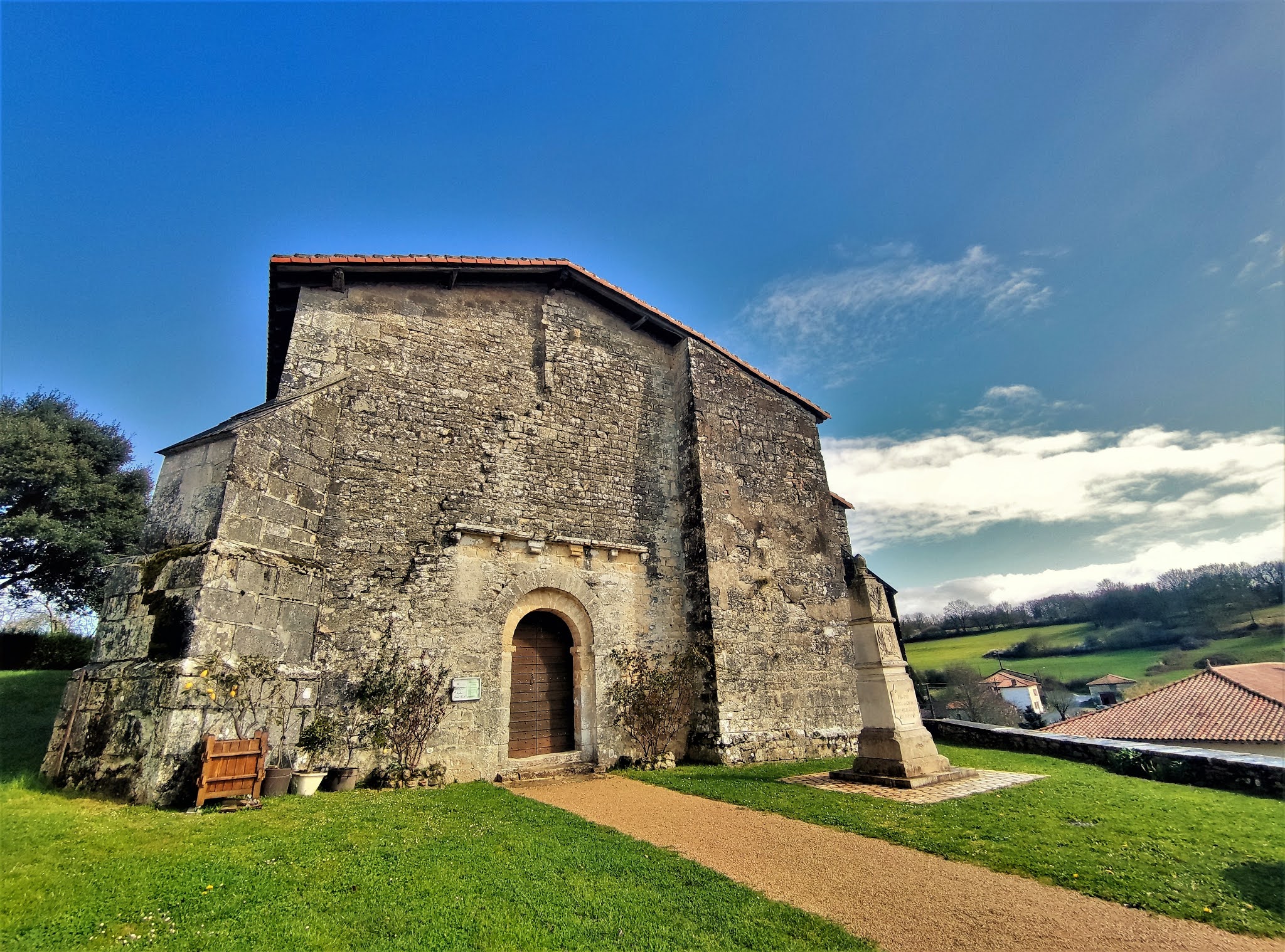 Par la volonté d'un bourg de 150 habitants et d'une association, une église retrouve un avenir. Modeste église d'origine romane, placée sur un petite surélévation, au bord de la D15, au milieu du bourg de Parzac, c'est la curiosité qui m'a incité à m'arrêter. Par chance, une dame m'a dirigé vers sa voisine, détentrice des clés. Cette voisine, participante active de l'association Patrimoine de Parzac, m'a gratifié d'une visite et d'une présentation de l'édifice. Cette église Saint-Roch a été modifiée et agrandie d'une chapelle au Sud à la fin du 15ème siècle. Au 19ème siècle, elle reçoit des voûtes en briques et le vitrail du chœur célébrant le Patron de l'église. Puis il faudra attendre 2013 pour une réfection de la toiture, grâce à la mobilisation de la population (150 habitants), de l'association Patrimoine de Parzac et de la Fondation du Patrimoine. Evidemment, la toiture en mauvais état avant sa réfection a eu pour conséquence des infiltrations, la chapelle a beaucoup souffert. Mais l'action des habitants et de l'association Patrimoine de Parzac a offert un avenir à cette petite église. Des travaux de réfection, menés par l'association, sont en cours ou en voie d'achèvement : réfections des enduits de la chapelle, maître-autel, sacristie, valorisation de la sépulture de Catherine de Curzay, etc... Les travaux indispensables de remise en état étant avancés, un projet d'embellissement a vu le jour. Ce sera la pause de vitraux dans les ouvertures de la chapelle, qui devrait s'effectuer durant l'année 2021. Les maîtres verriers de l'Atelier Pinto, à Bordeaux, assemblent actuellement les quatre vitraux de la chapelle Notre-Dame.