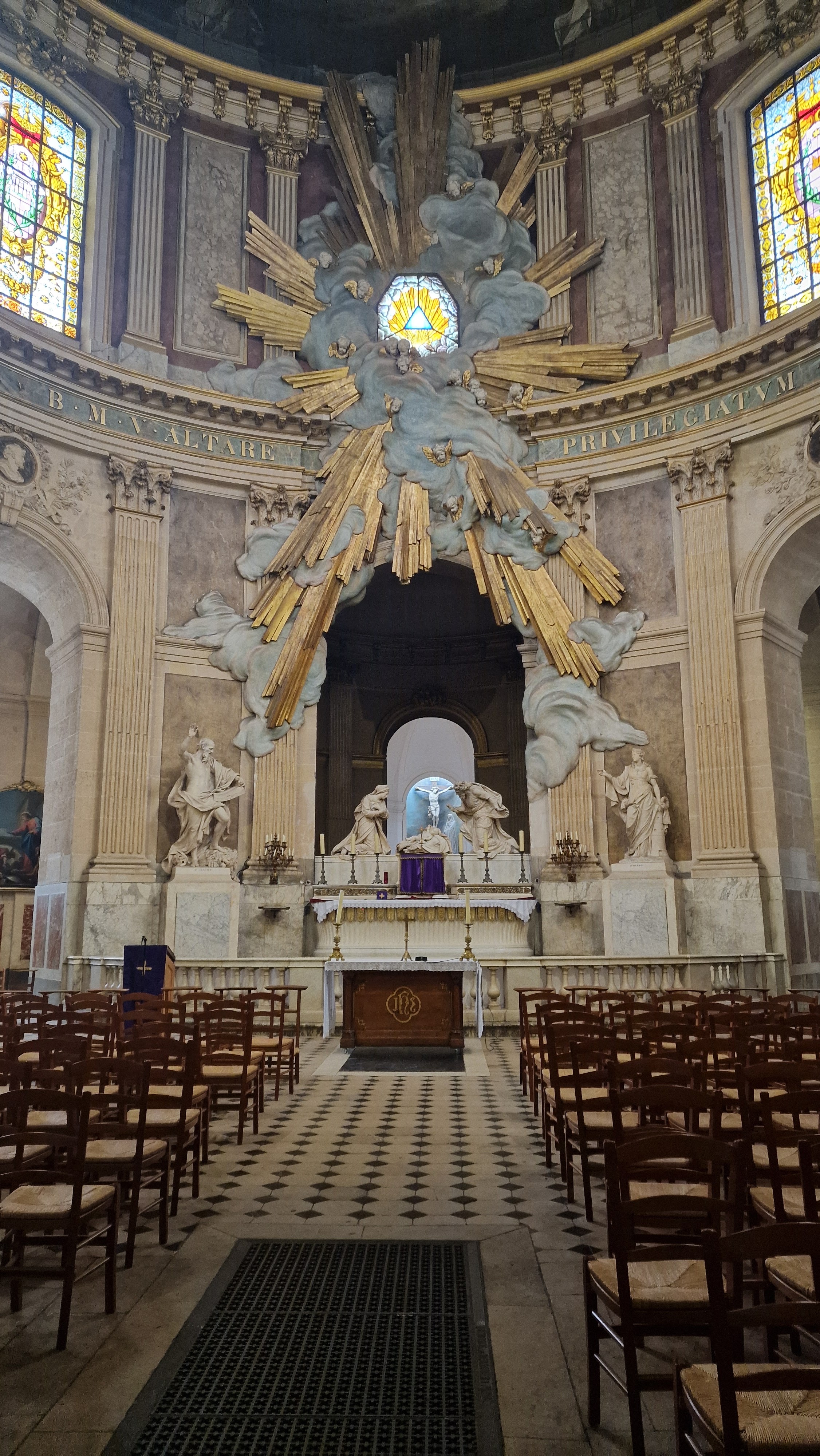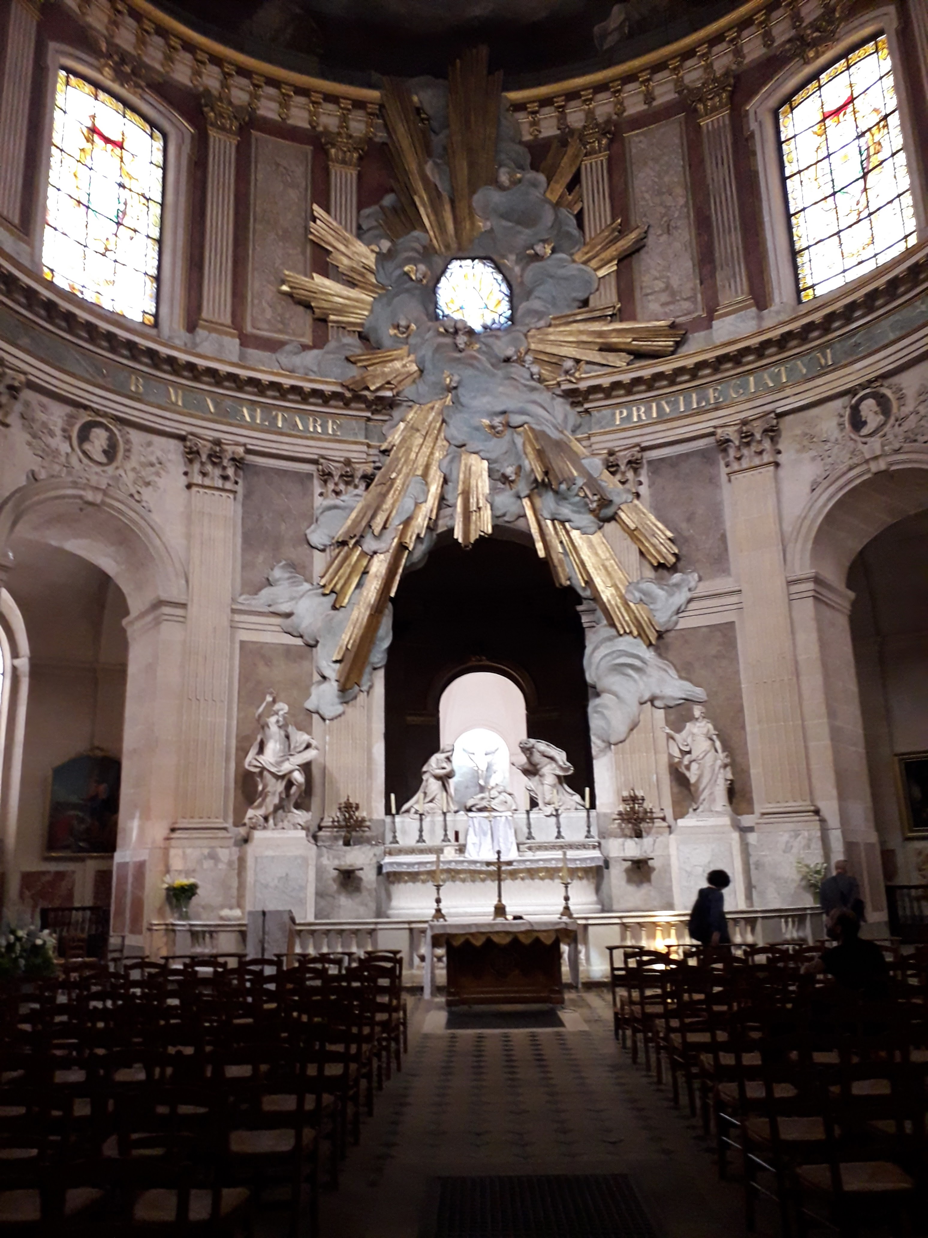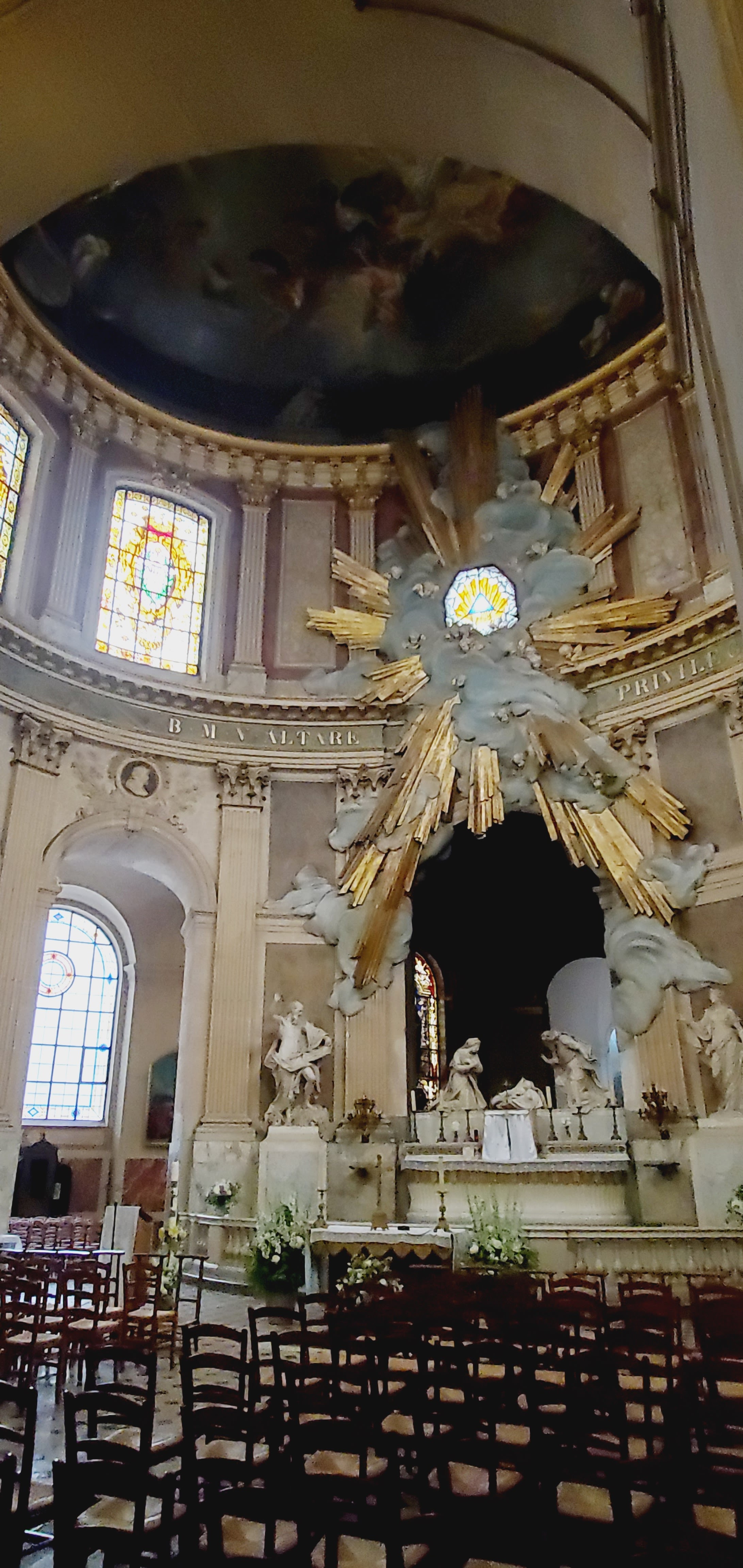 Belle chapelle en cercle au fond de l'église pour la messe des artistes
