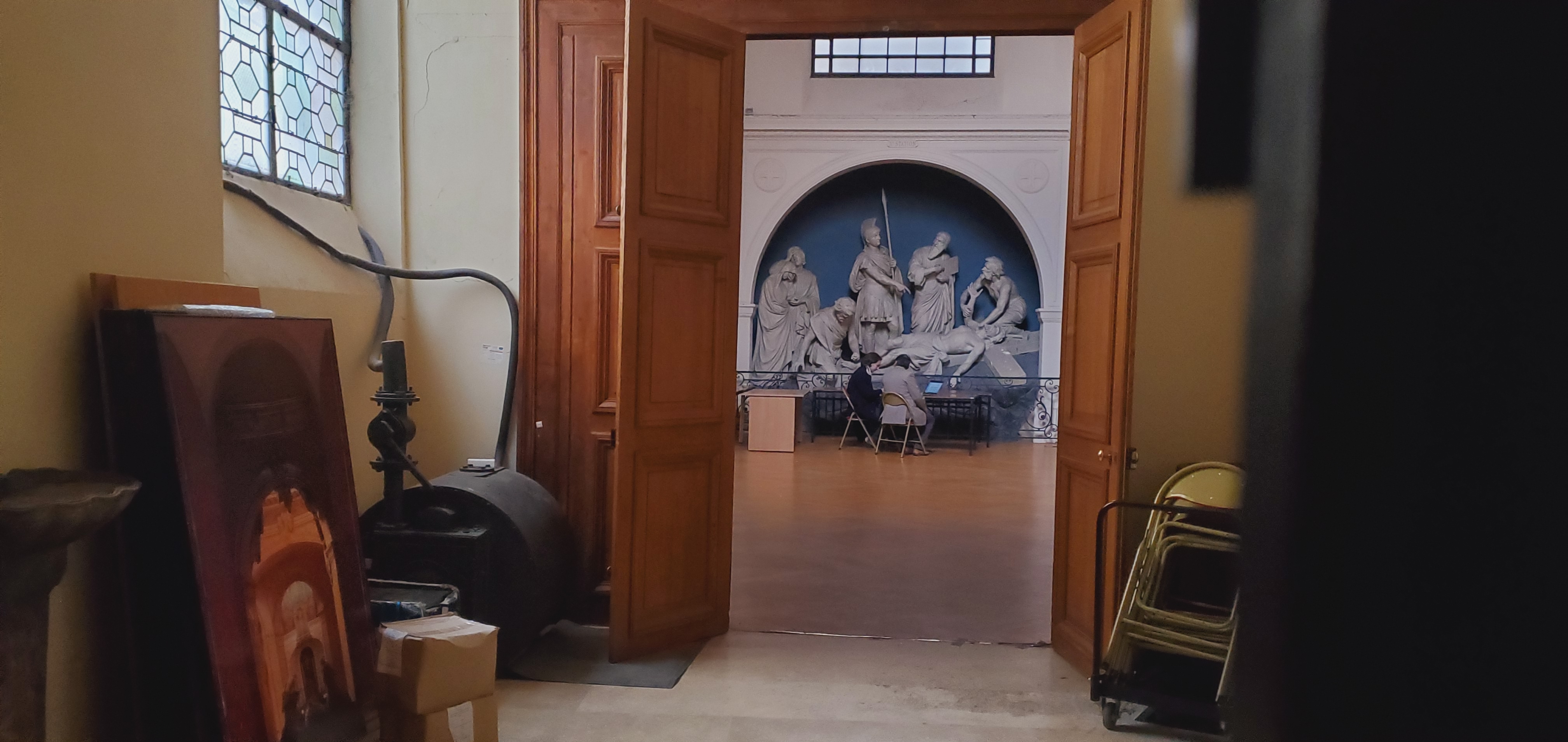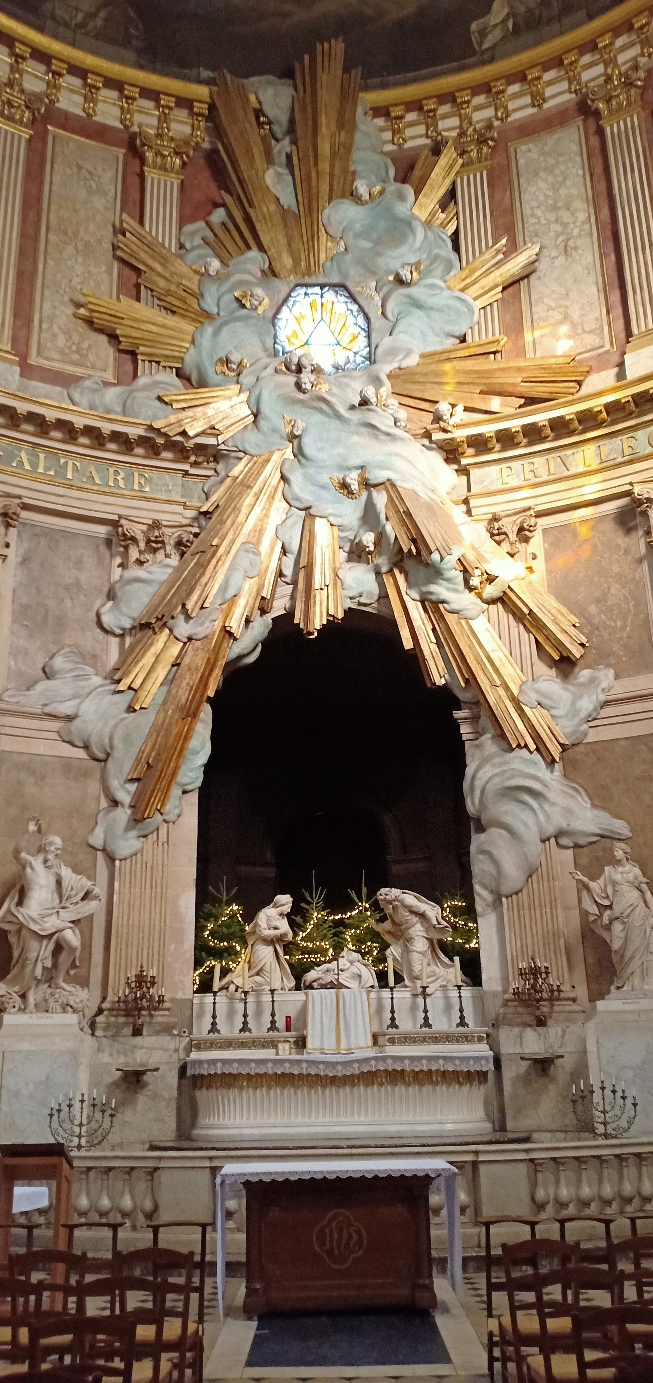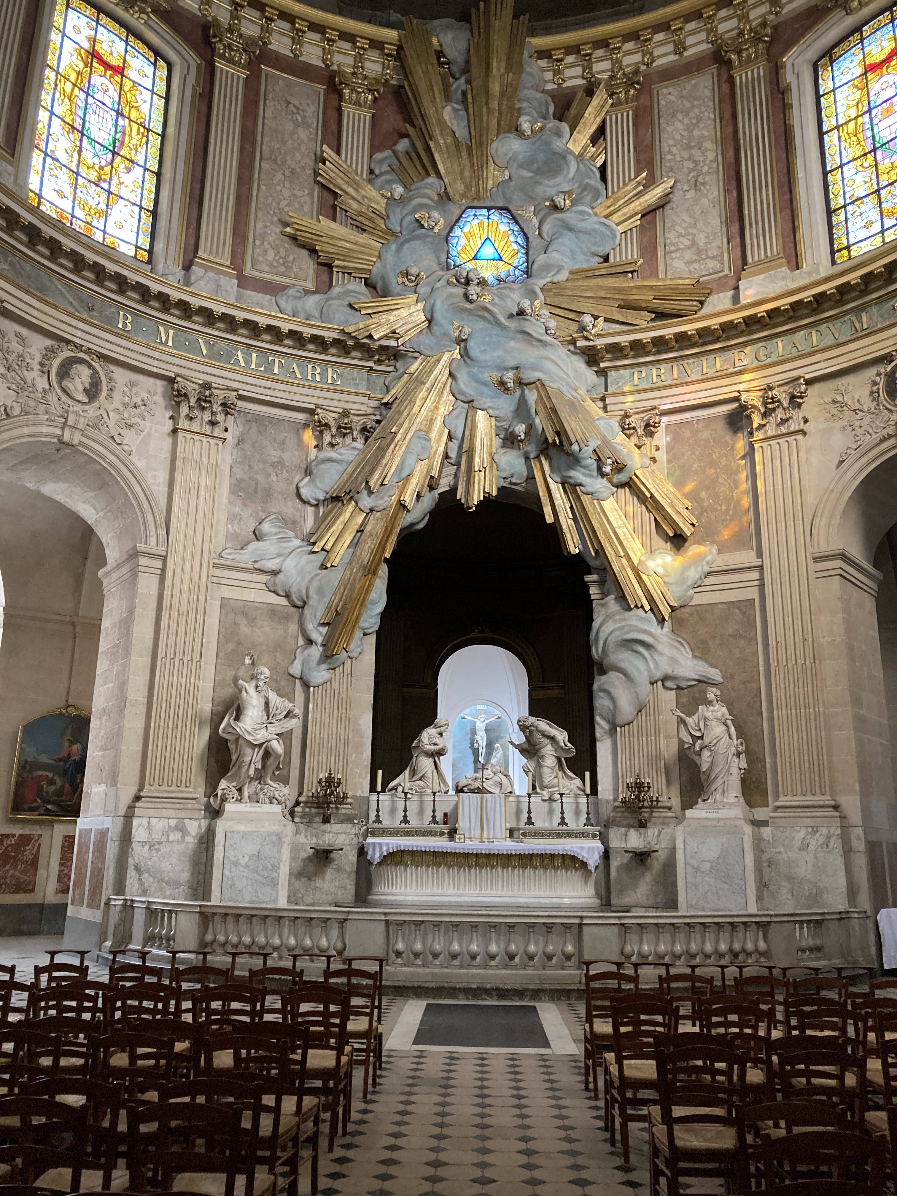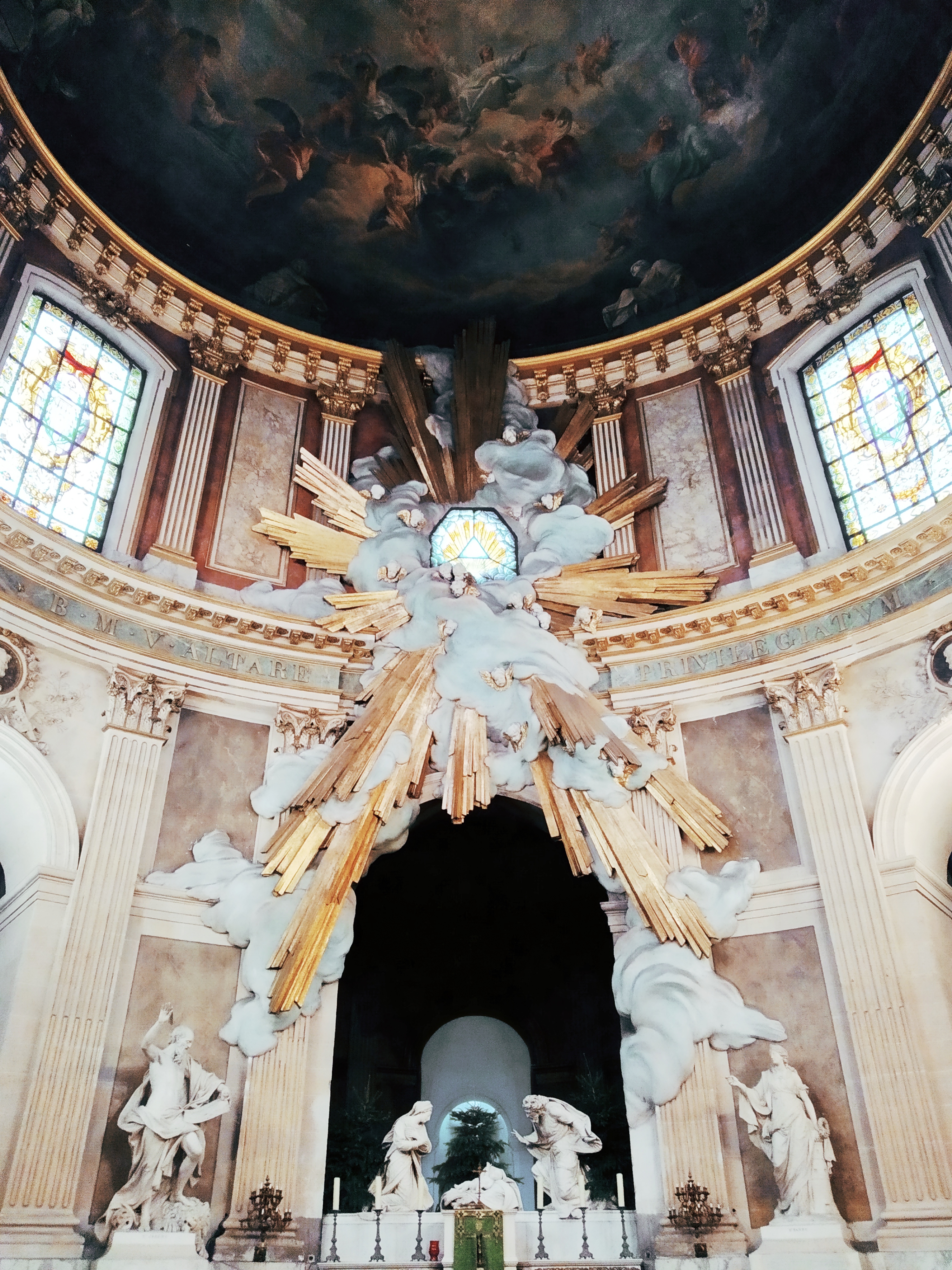 Belle chapelle en cercle au fond de l'église pour la messe des artistes