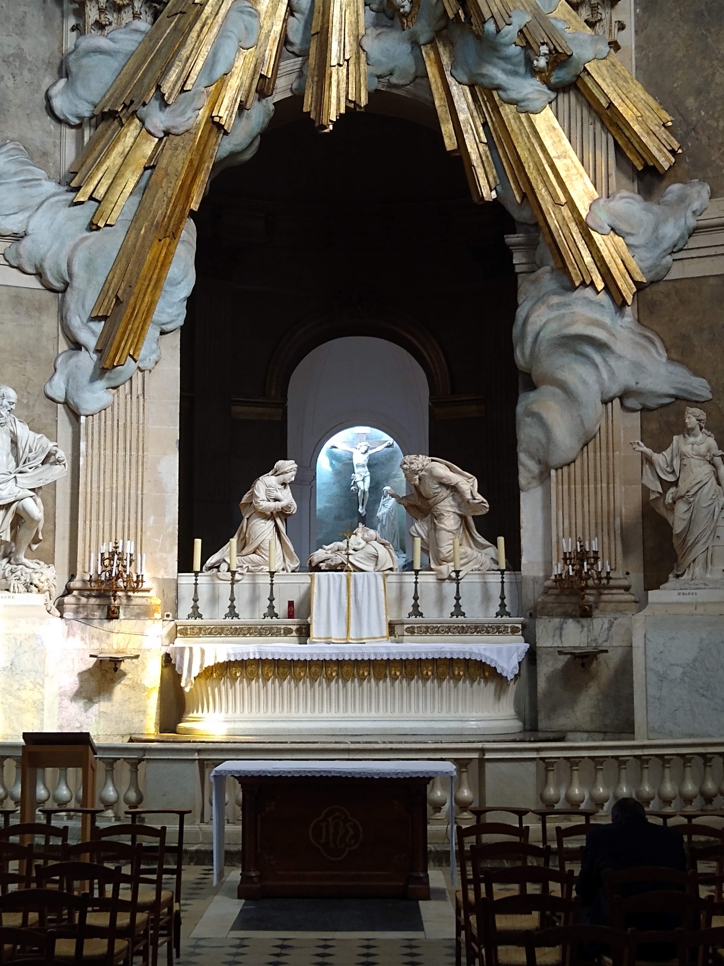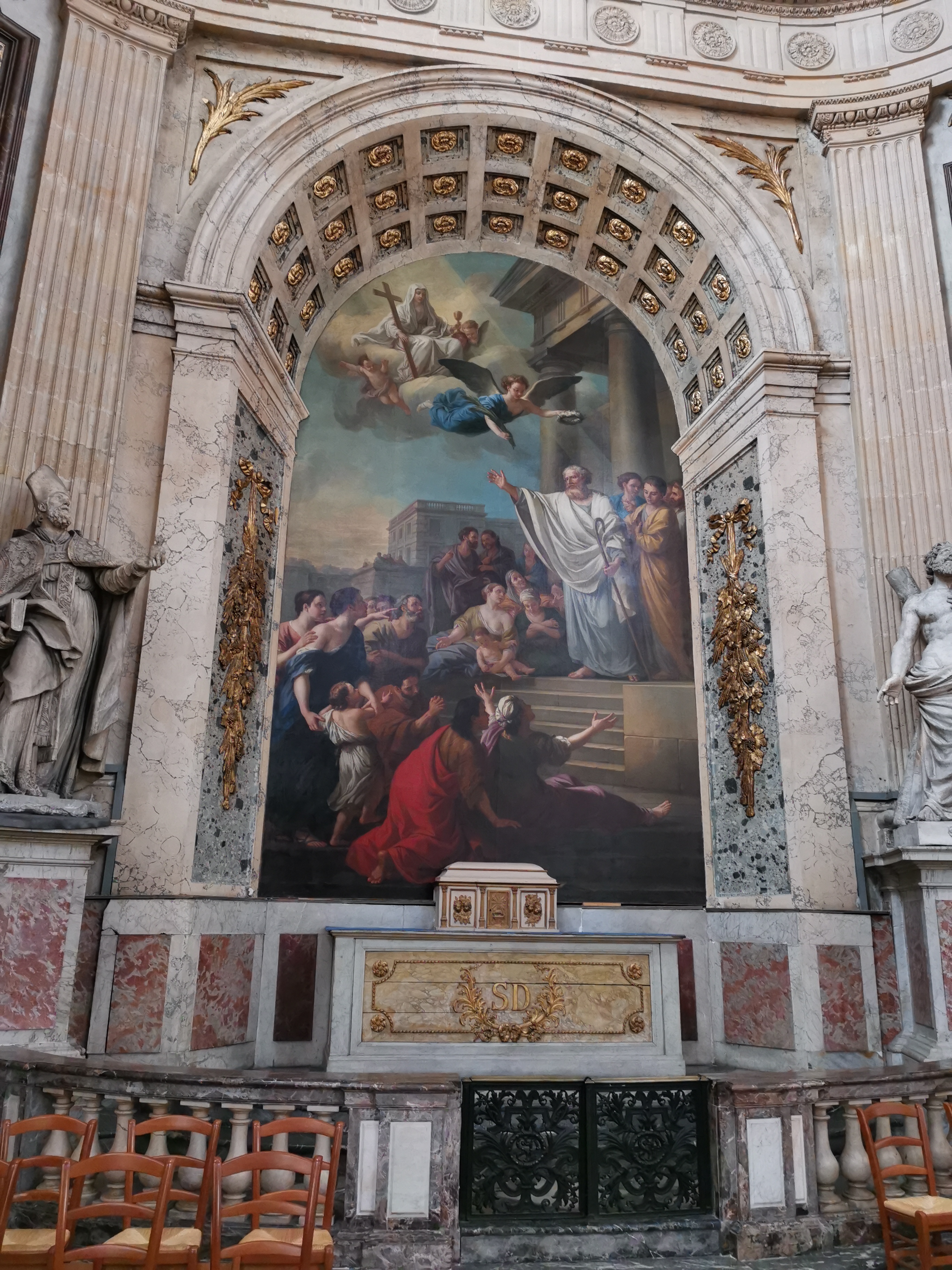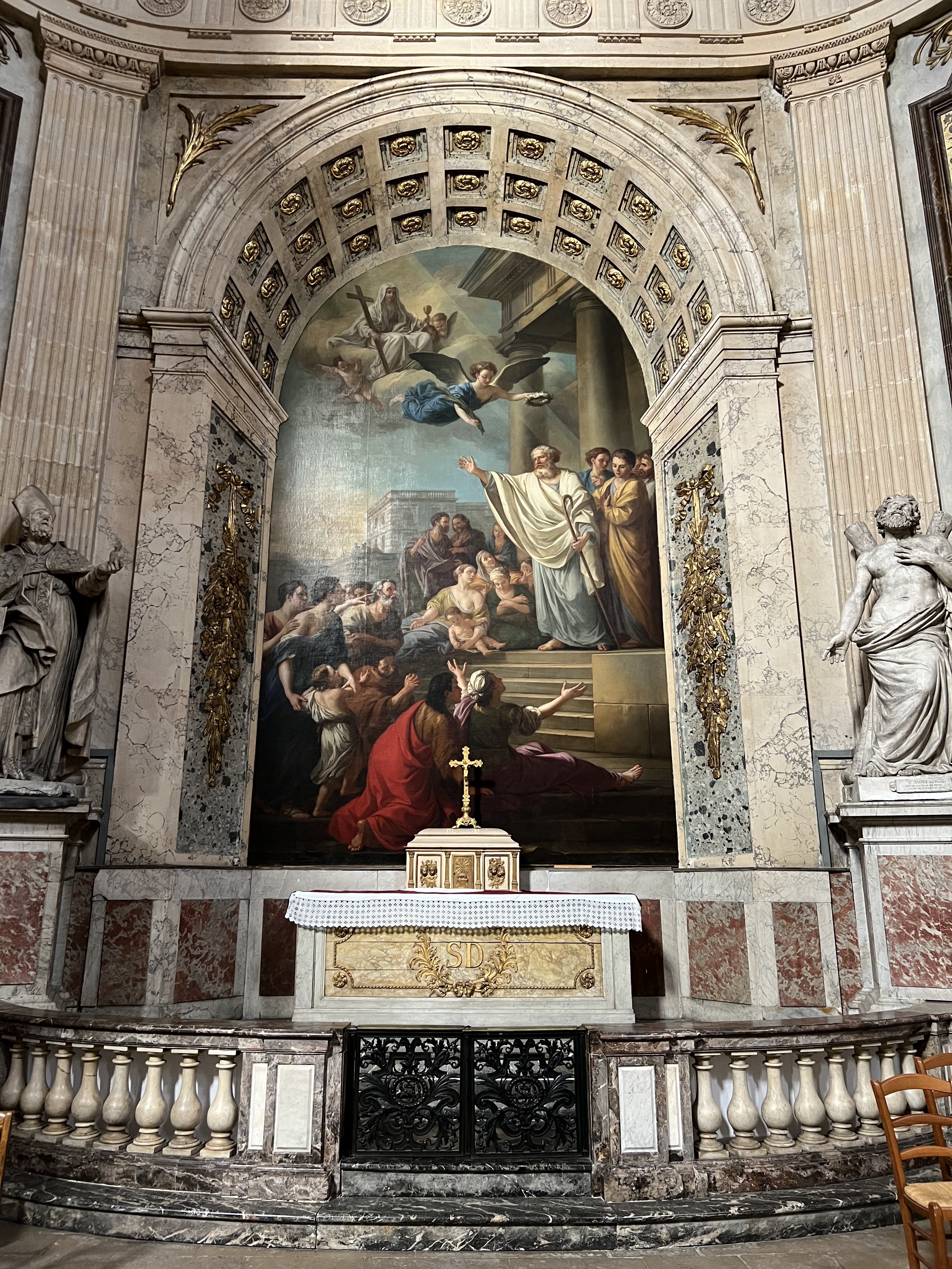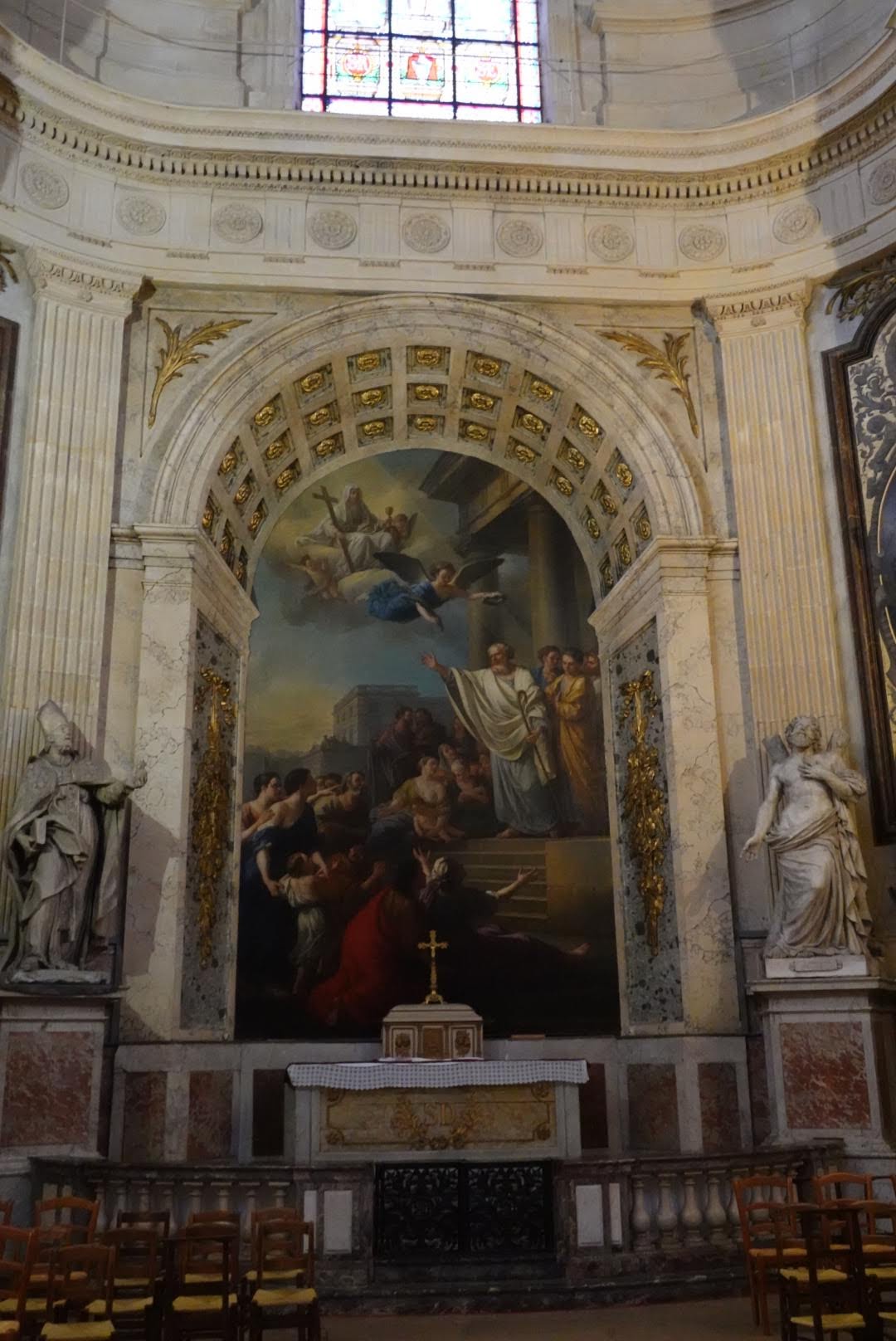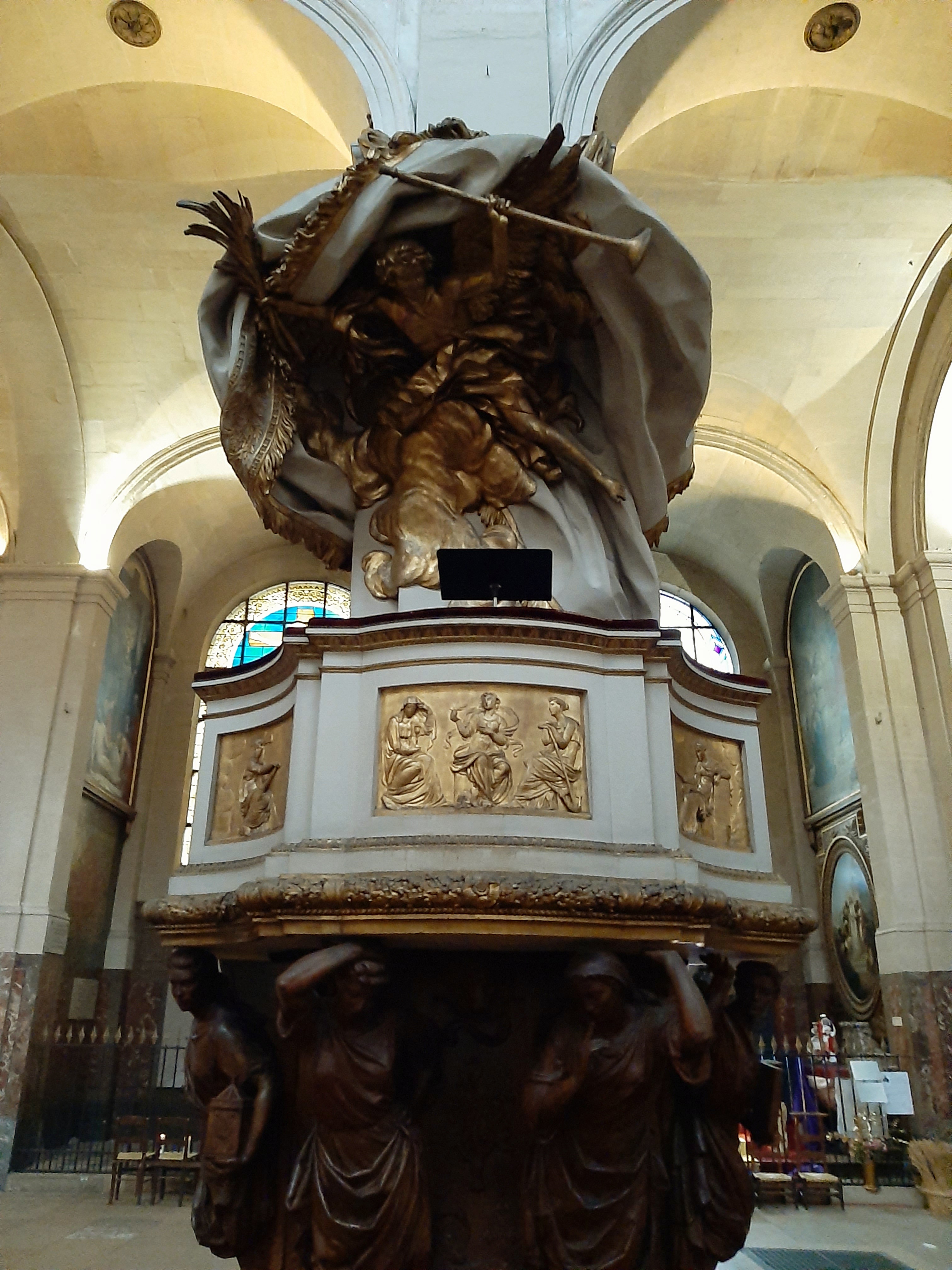 Magnifique paroisse aux innombrables trésors d'art et de spiritualité. Incroyable perspective baroque ou la crèche conduit au crucifiement. Fabuleuse chaire où la trompette de la Vérité soulève le lourd voile du mensonge. Foule de morts célèbres ou inconnus, Le Nôtre, Diderot,... Foule de pêcheurs et de saints. Traces des boulets des canons de Buonaparte contre les derniers espoirs royalistes... Eglise témoin de la foi de nos ancêtres, de la foi vivante et résistante aujourd'hui. Le plus beau et le plus précieux des trésors de cette église, est la Présence réelle cachée dans le tabernacle.
