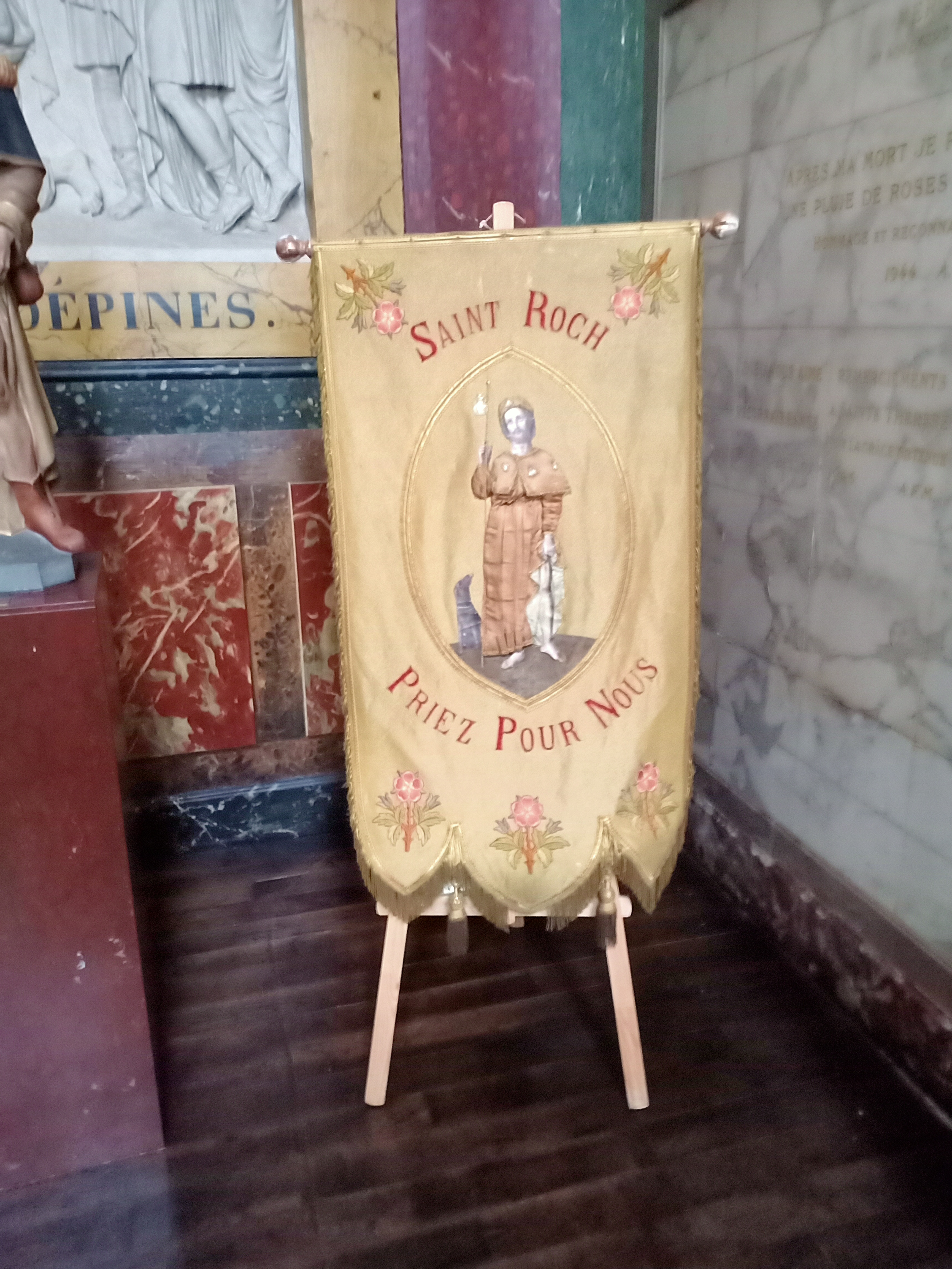 St Roch charmante statue avec sa belle histoire dans un lieu lumineux où après une longue marche on peut venir se ressourcer pour y retrouver un bien-être intérieur. Des concerts y sont fréquemment organisés. Une charmante dame nous accueille pour y acheter différents souvenirs de cette église .