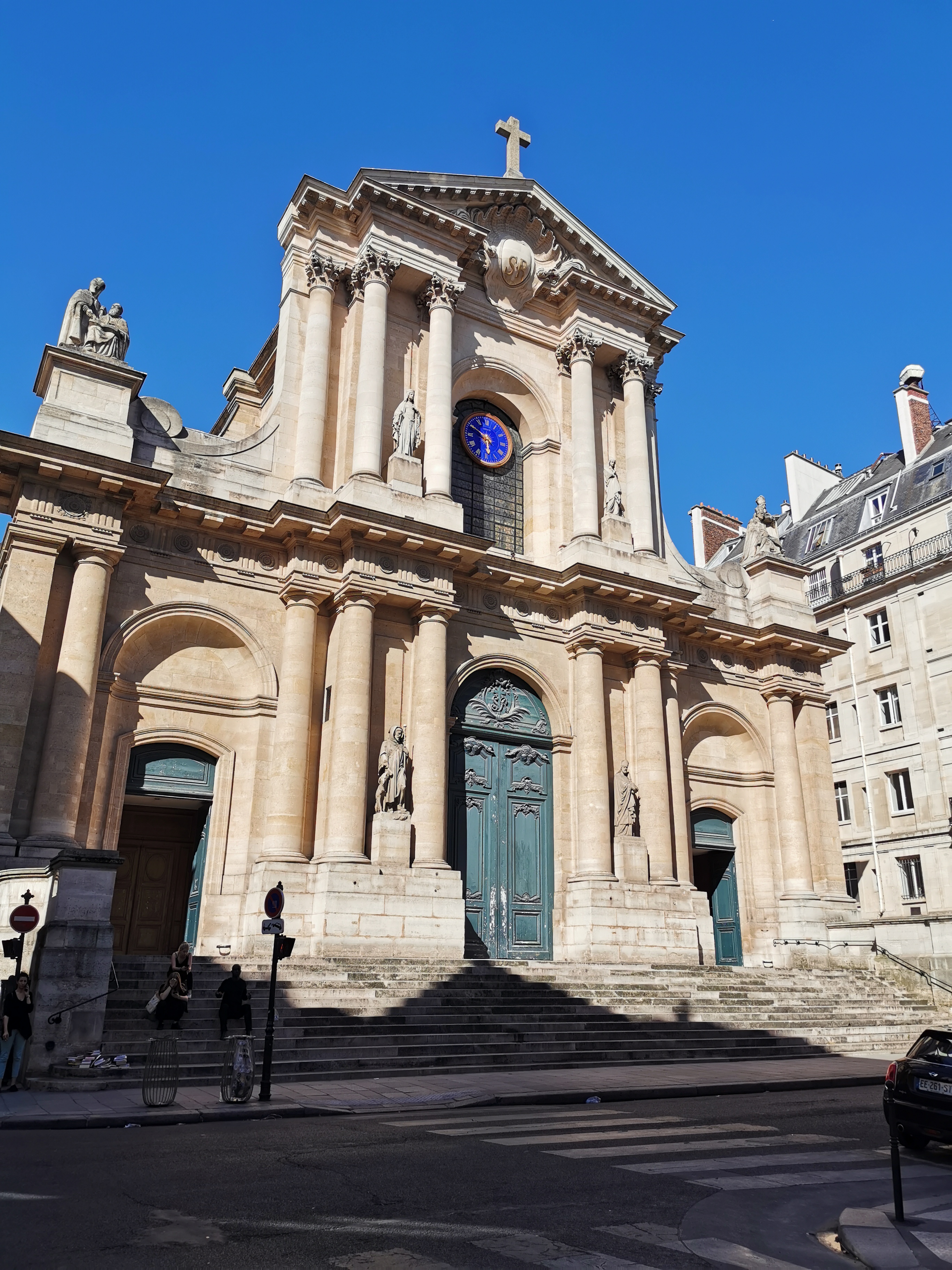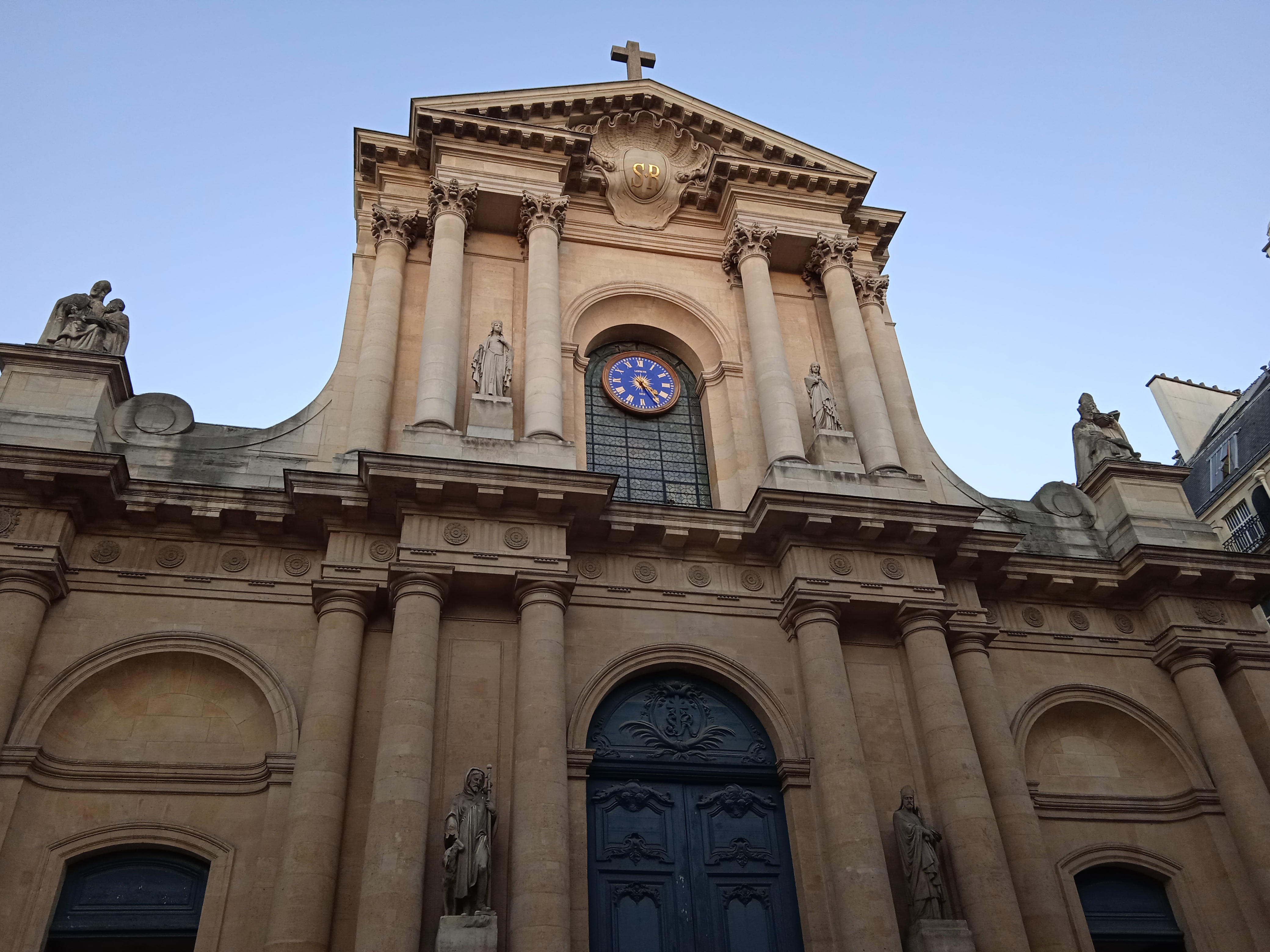 Construite sur une butte de 1653 à 1754, cette église où furent enterrés Corneille, Le Nôtre, Diderot, est conçue comme une succession de chapelles. Jacques Lemercier, l'architecte de la Sorbonne, est l'auteur du choeur et de la nef que la liberté d'un nouveau paroissien, John Law, permit de voûter sous la Régence. La façade a perdu son décor sculpté. Le curé de la paroisse, le père Marduel, fit appel au peintre Jean-Baptiste Pierre pour orner la coupole d'un Triomphe de la Vierge.