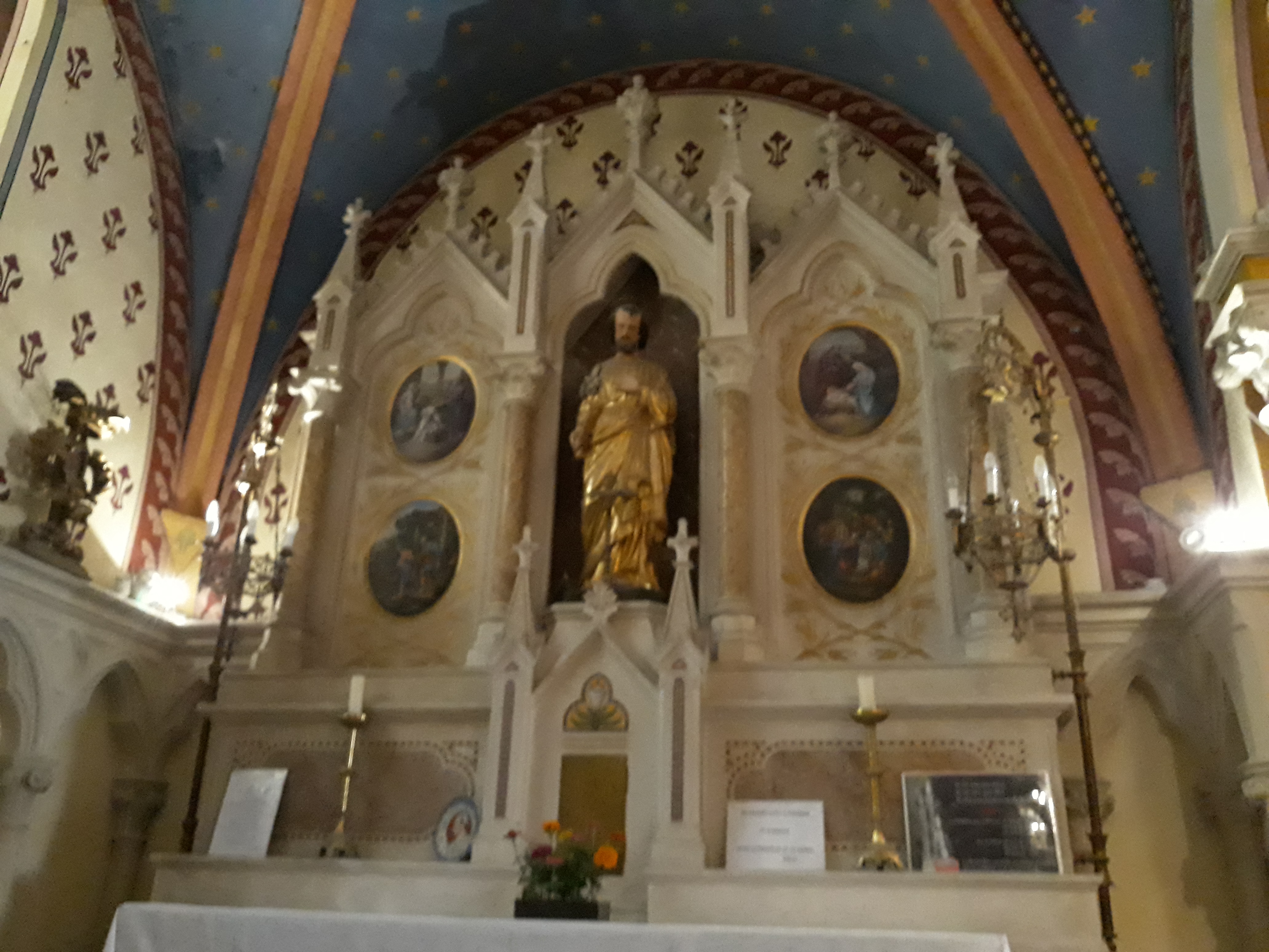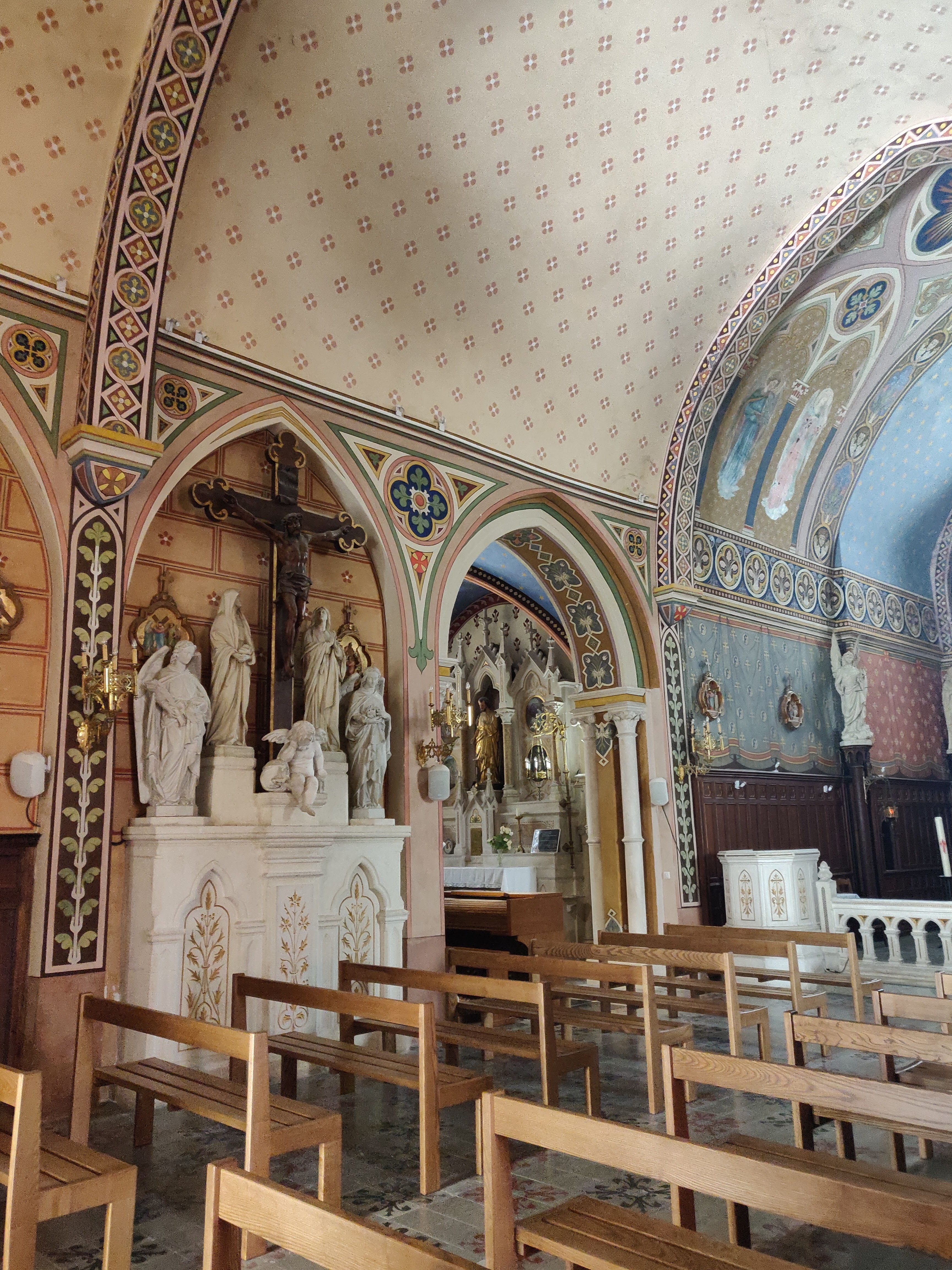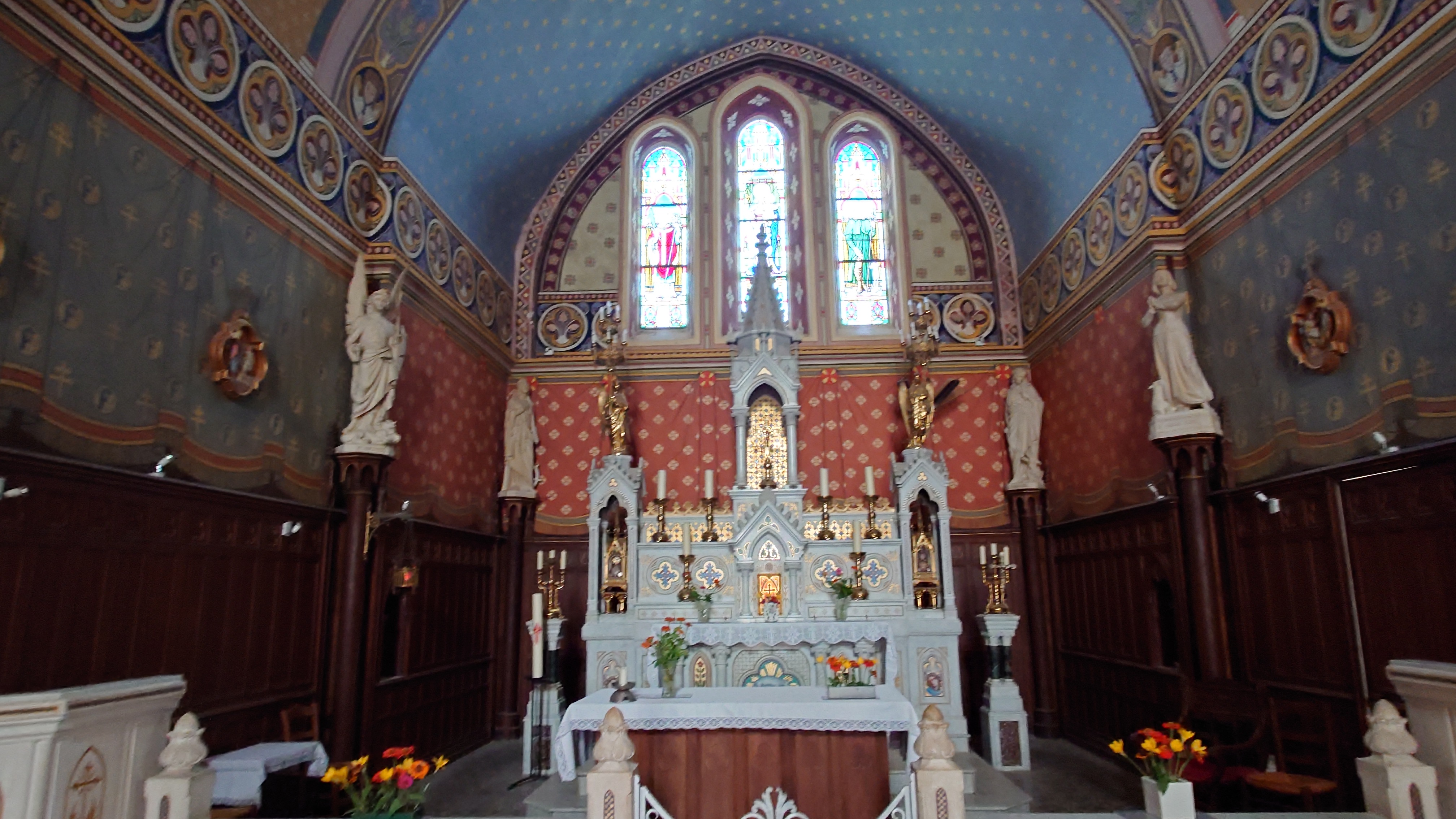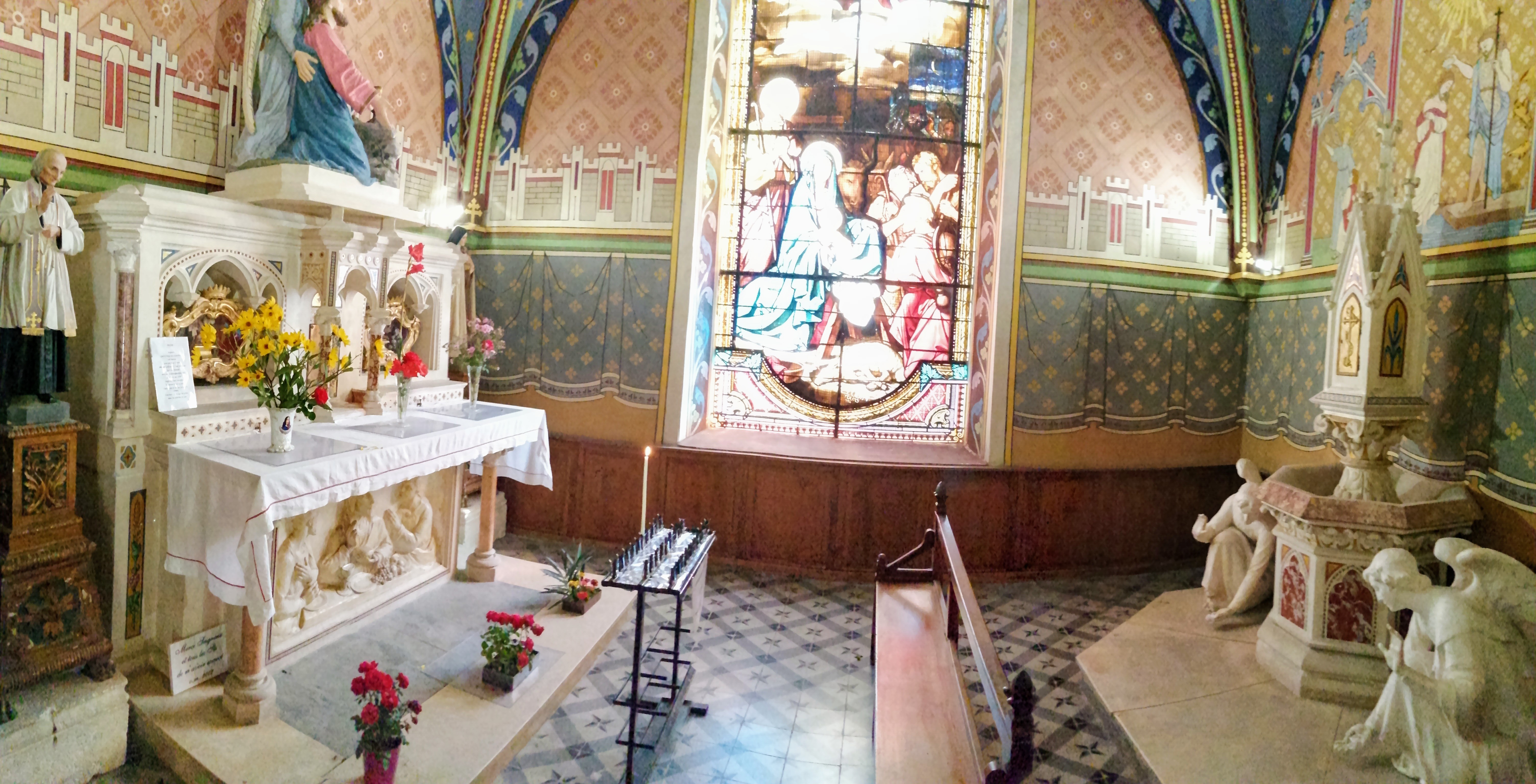 Une petite église qui a tout d'une grande. Des vitraux éclatants, des ornements, des statues majestueuses qu'on ne s'attendait pas à trouver dans un petit village. Un vrai voyage spirituel et intemporel.