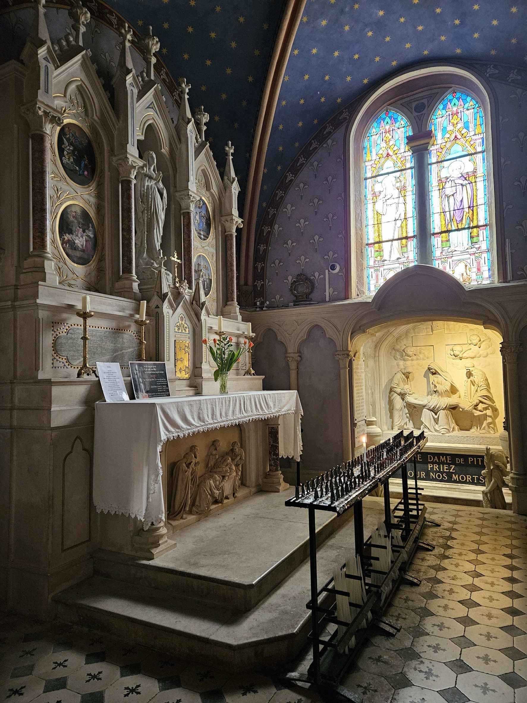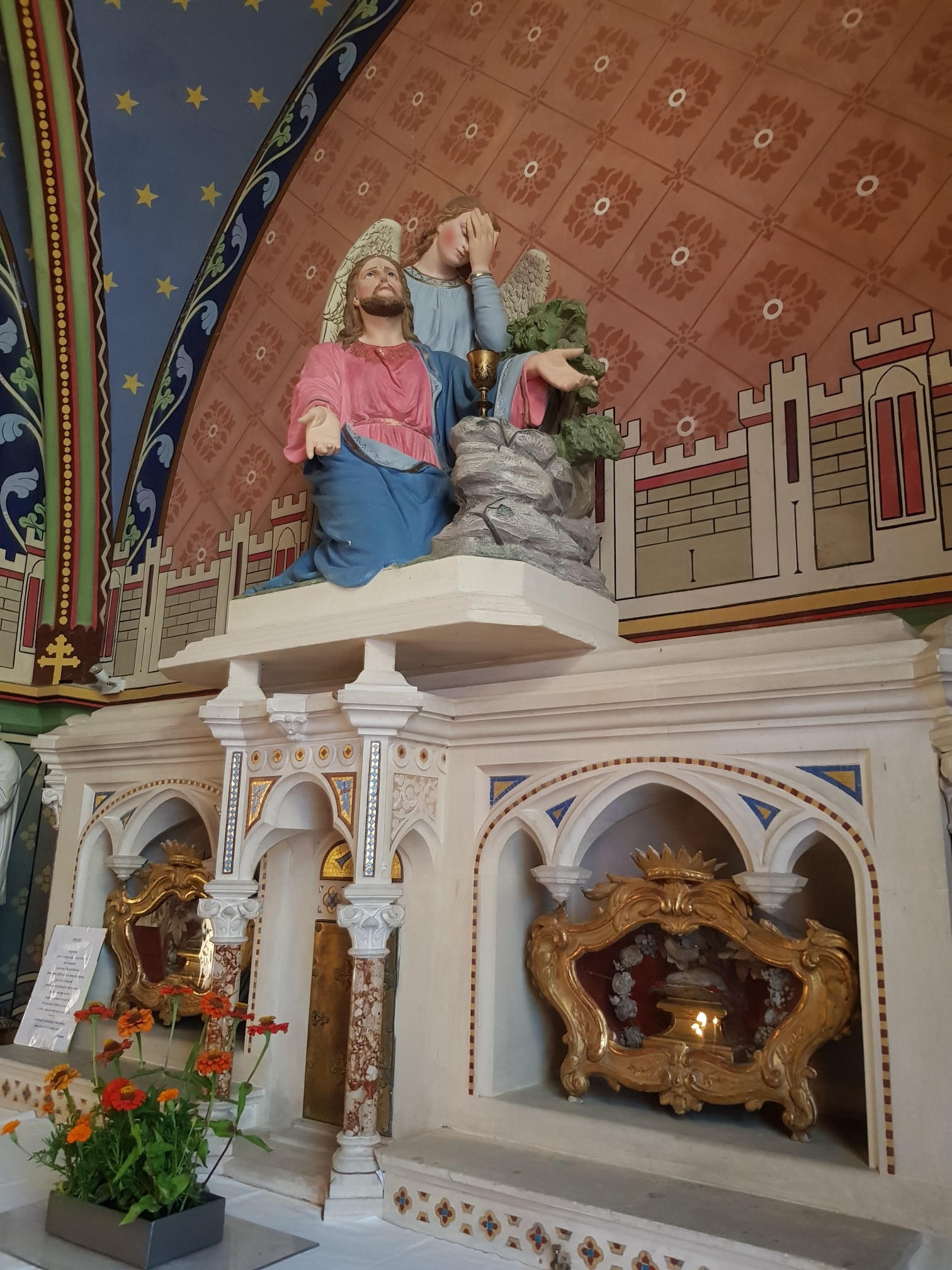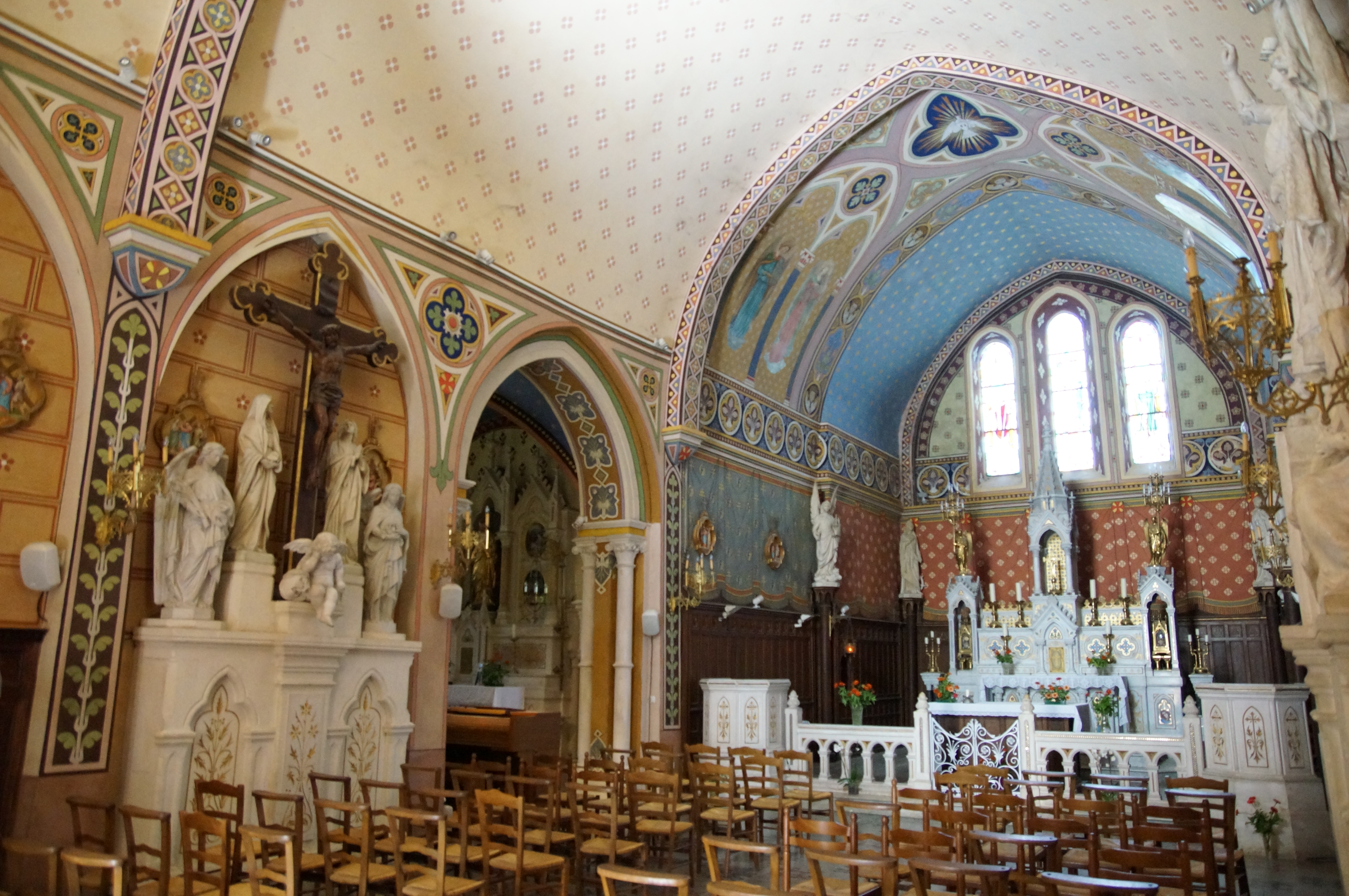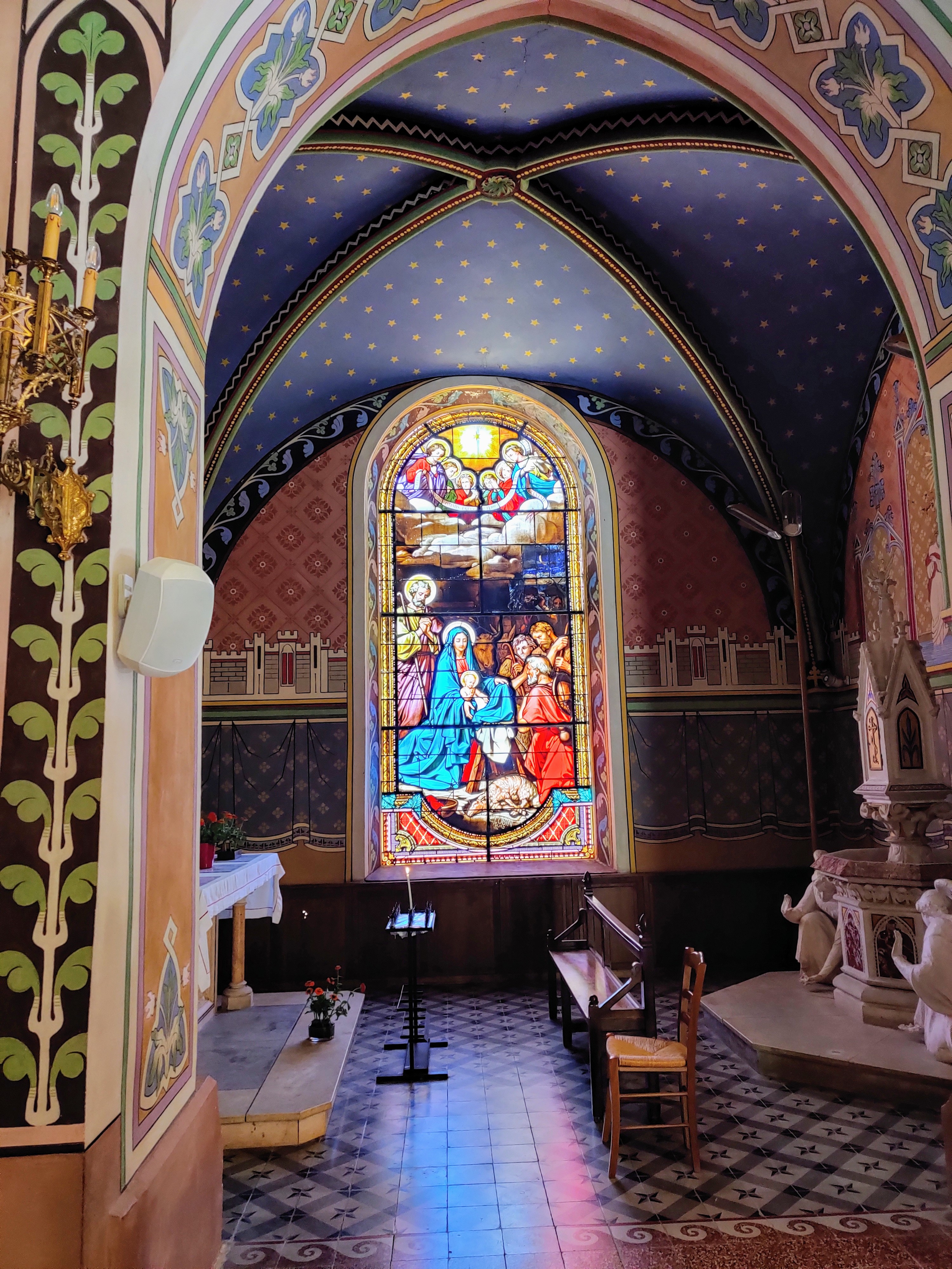 Une petite église qui a tout d'une grande. Des vitraux éclatants, des ornements, des statues majestueuses qu'on ne s'attendait pas à trouver dans un petit village. Un vrai voyage spirituel et intemporel.