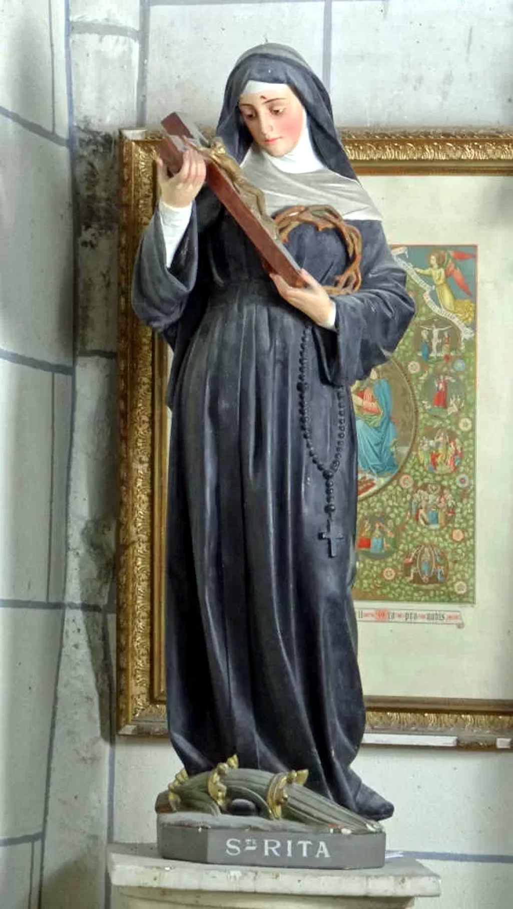 Il a été recensé beaucoup de Saint Romain et dans cette église, ils sont quelques-uns, dont : Saint Romain de Blaye, patron des mariniers, représenté dans un vitrail, invoqué pour la protection contre les tempêtes et les naufrages. Sous forme de statue, on trouve Saint Romain, évêque de Rouen (585-640), invoqué pour protéger contre les maladies, les accidents et les épreuves de la vie. D’autres saints sont également présents, tels que Saint Antoine de Padoue, invoqué pour retrouver des objets perdus, et Sainte Rita, invoquée pour les causes désespérées. Enfin, Saint Vincent est le patron des vignerons. 🙏