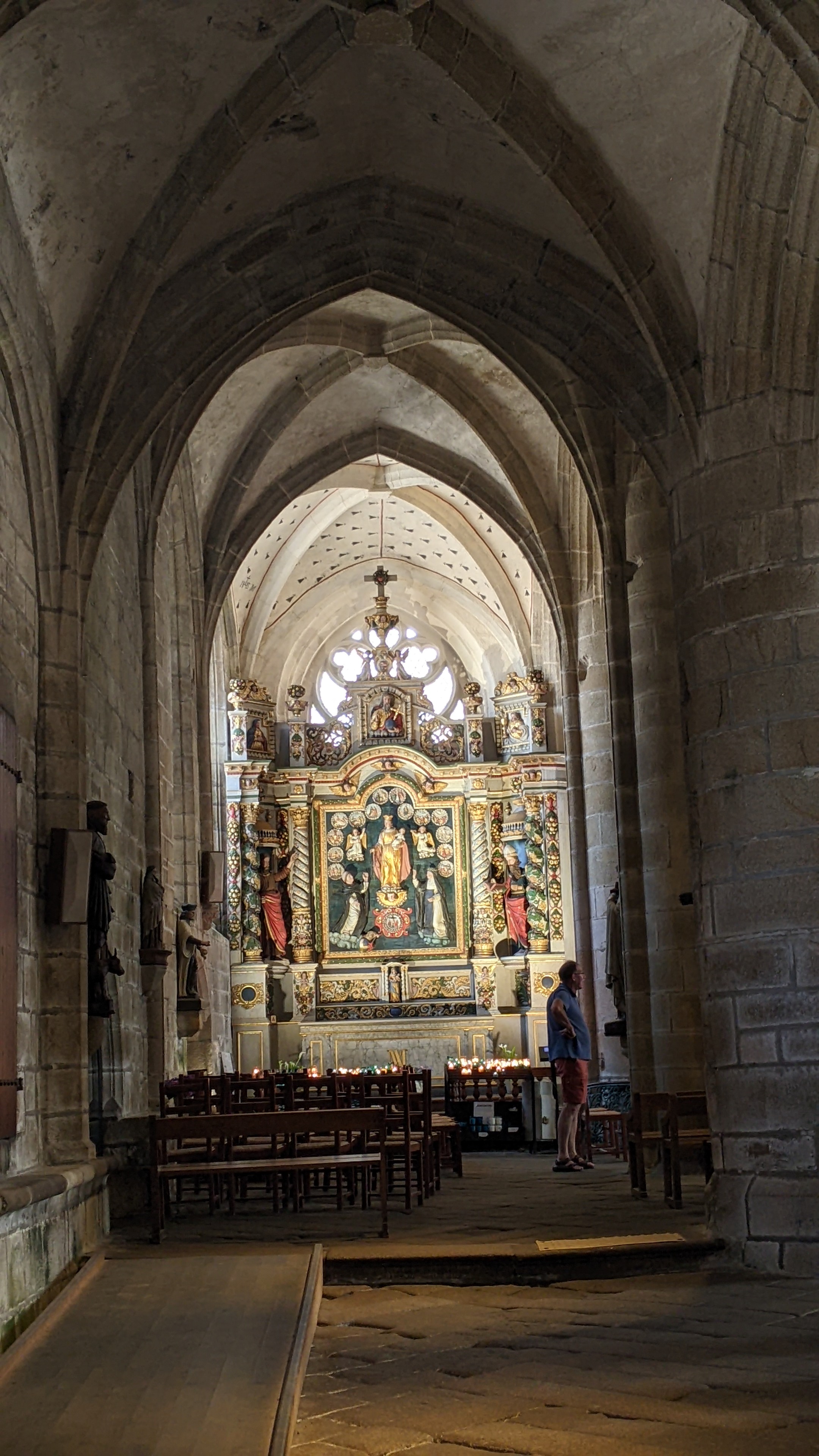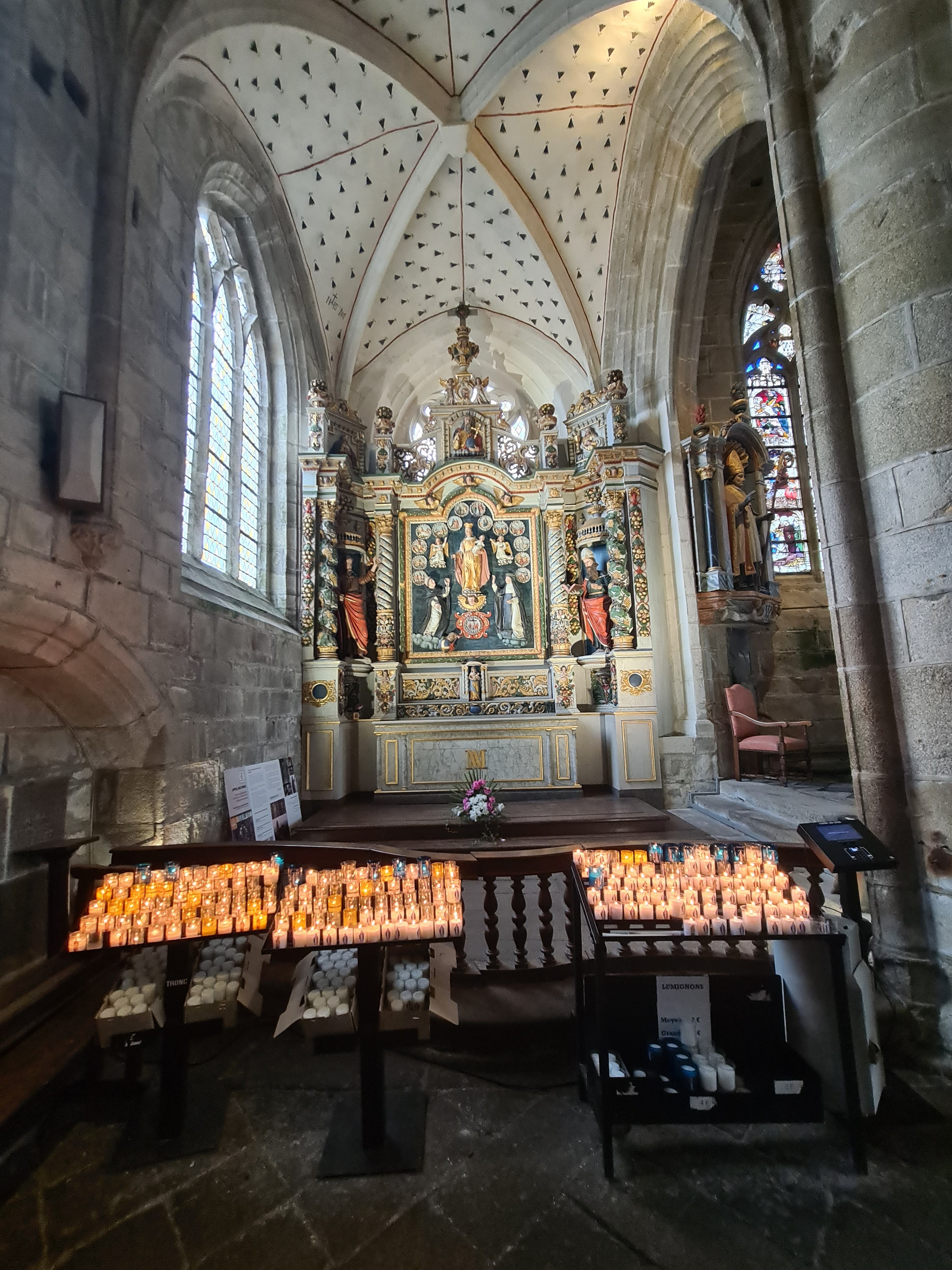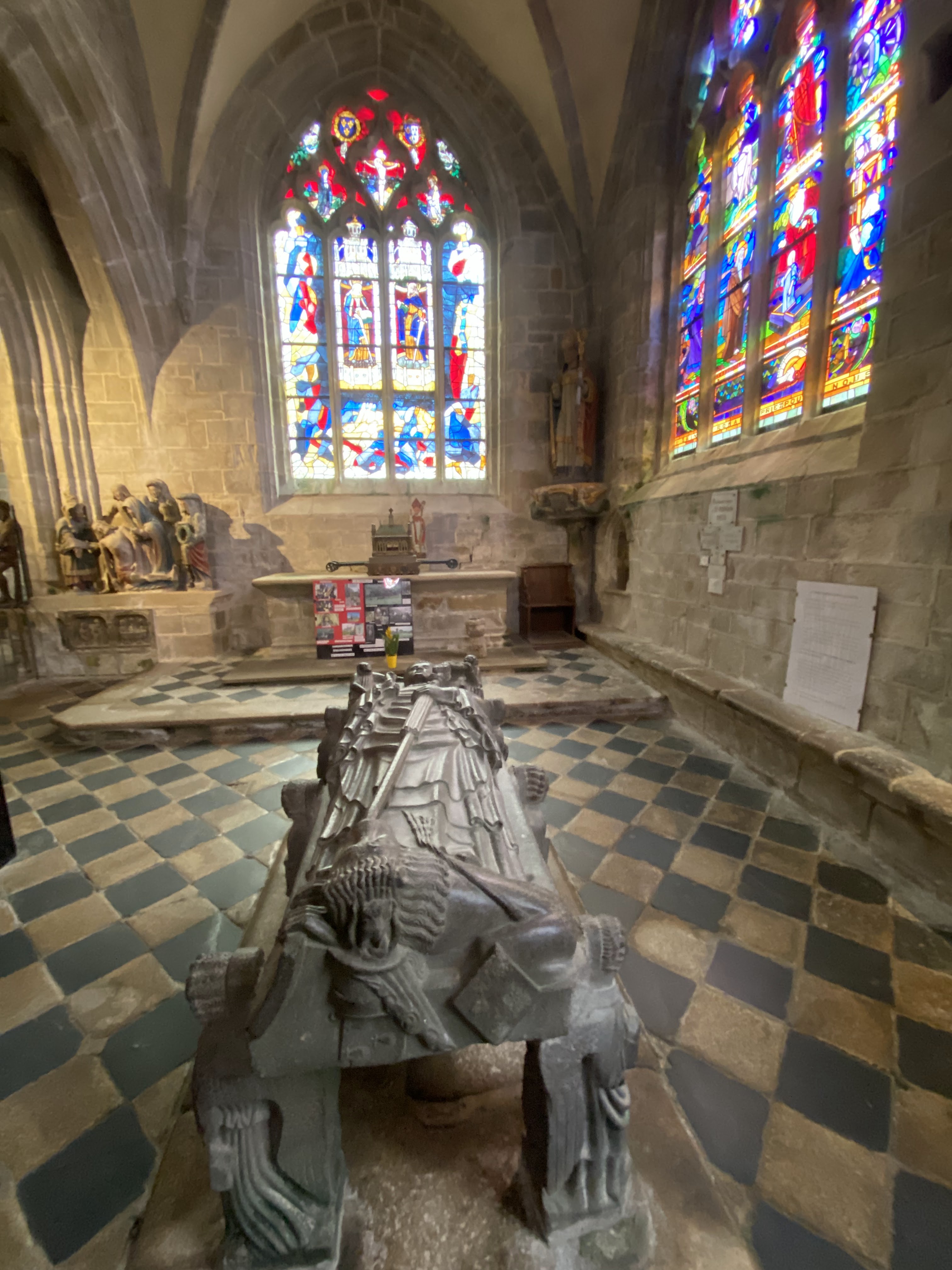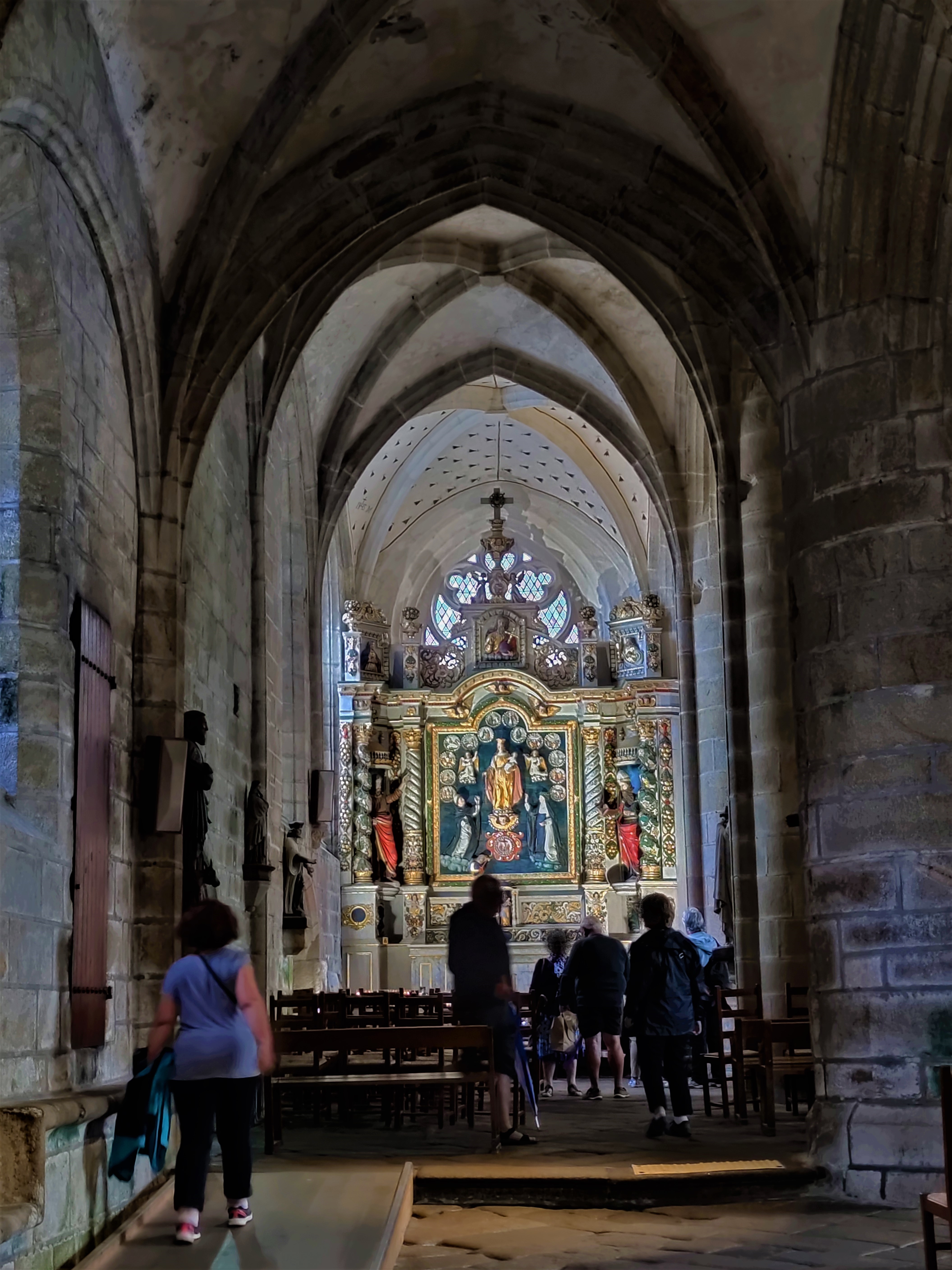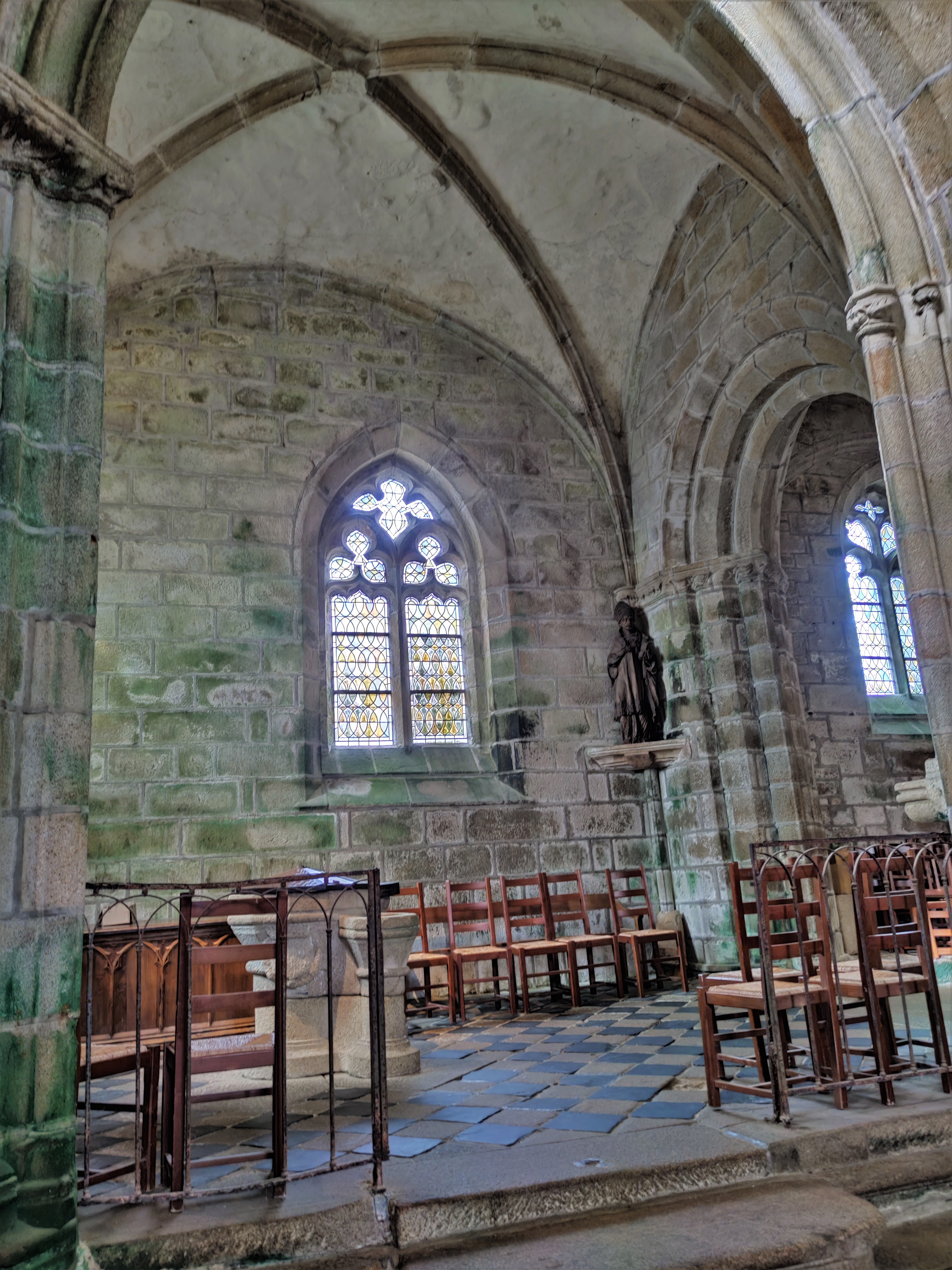 Époustouflante église dans le style typiquement breton avec des couleurs, des vitraux et des effigies tout à fait magnifique ! Je n'ai vu de pareil retable qu'en Italie ou en Alsace : il y a même le tombeau de Ronan ainsi que ces côtes dans un reliquaire ... Ouvrez bien les yeux, vous pourrez admirer des détails dans les peintures ou les vitraux qui sont incroyables ! Tout cela dans une ambiance musicale délicieuse !