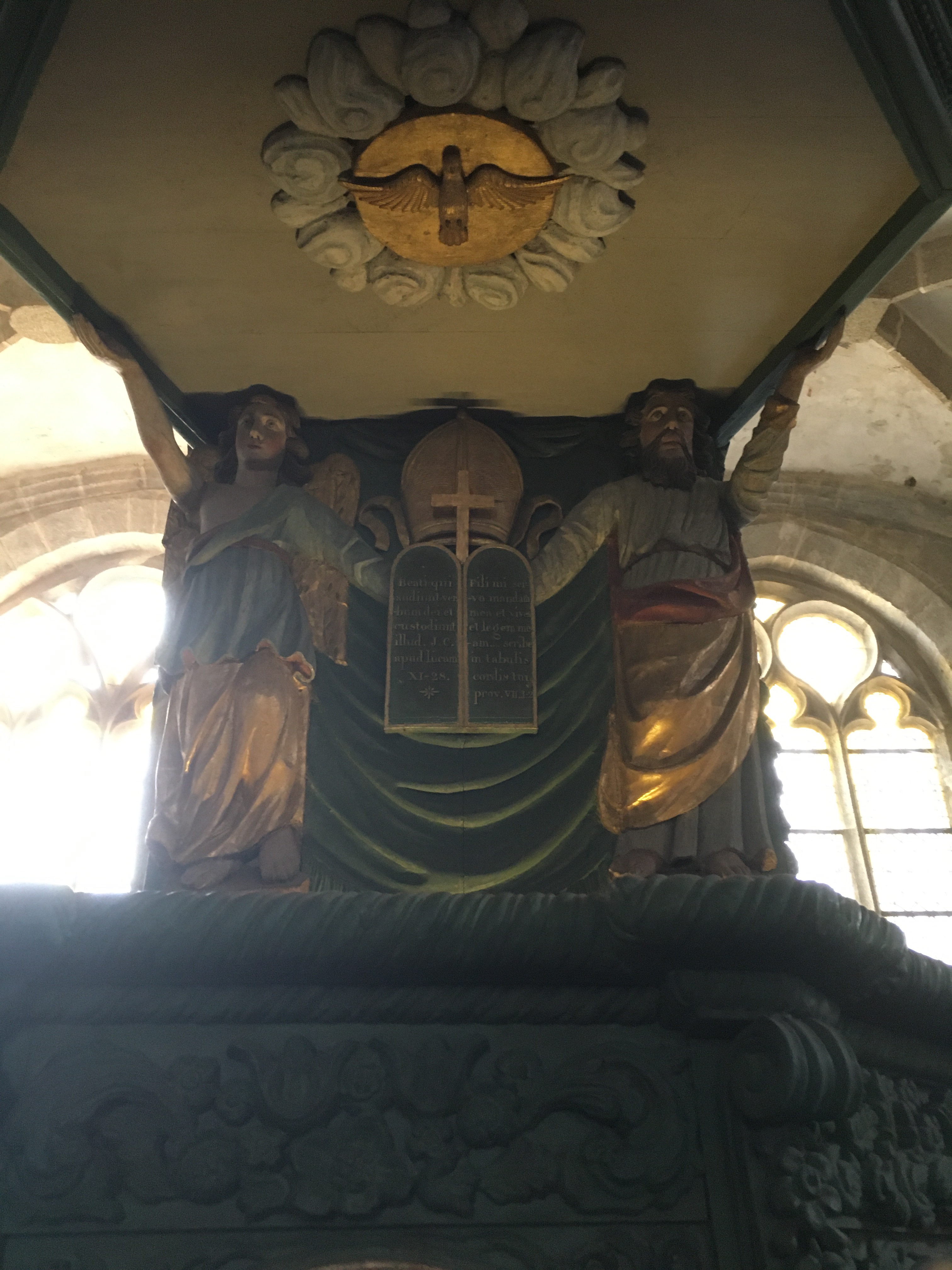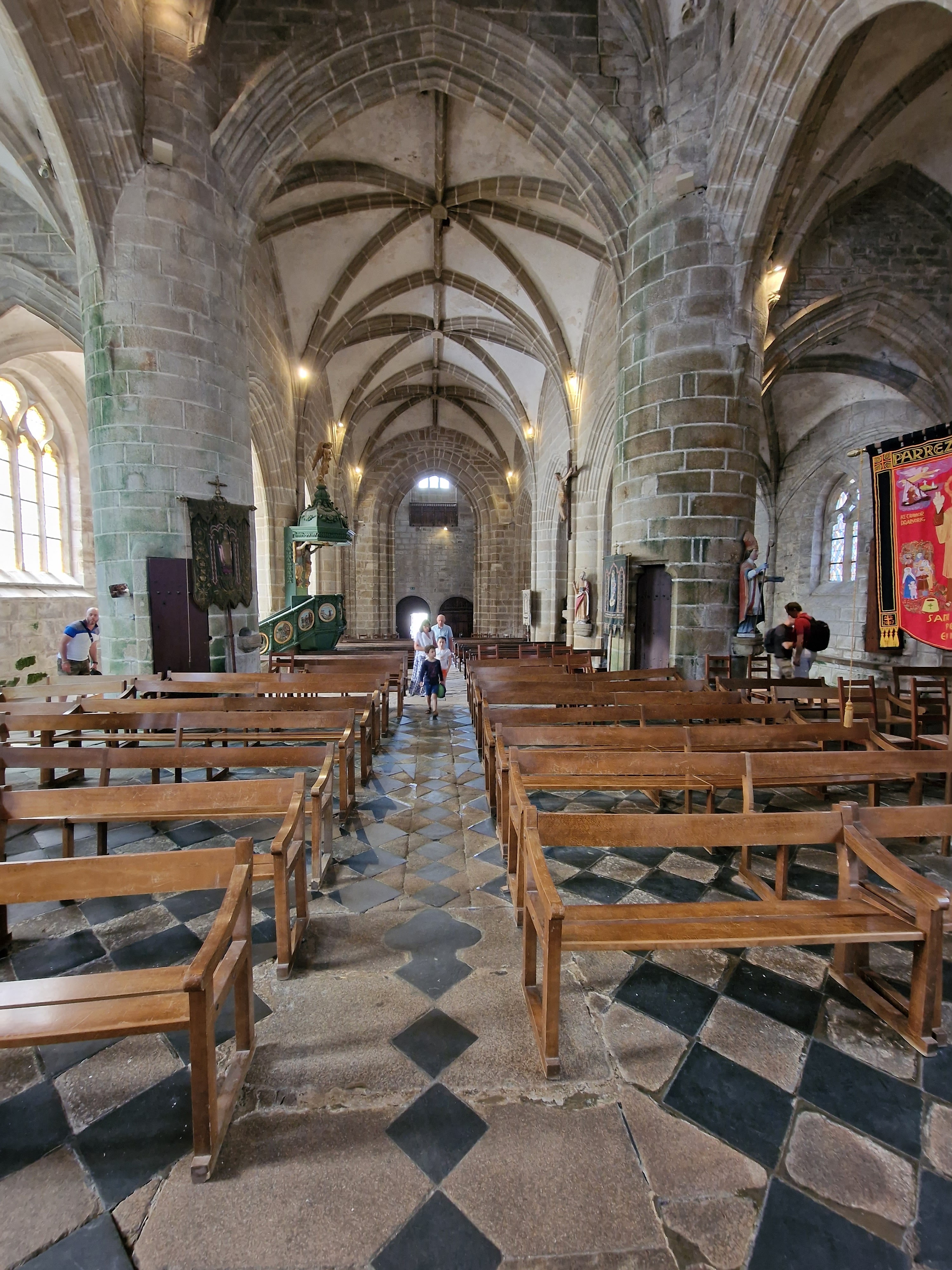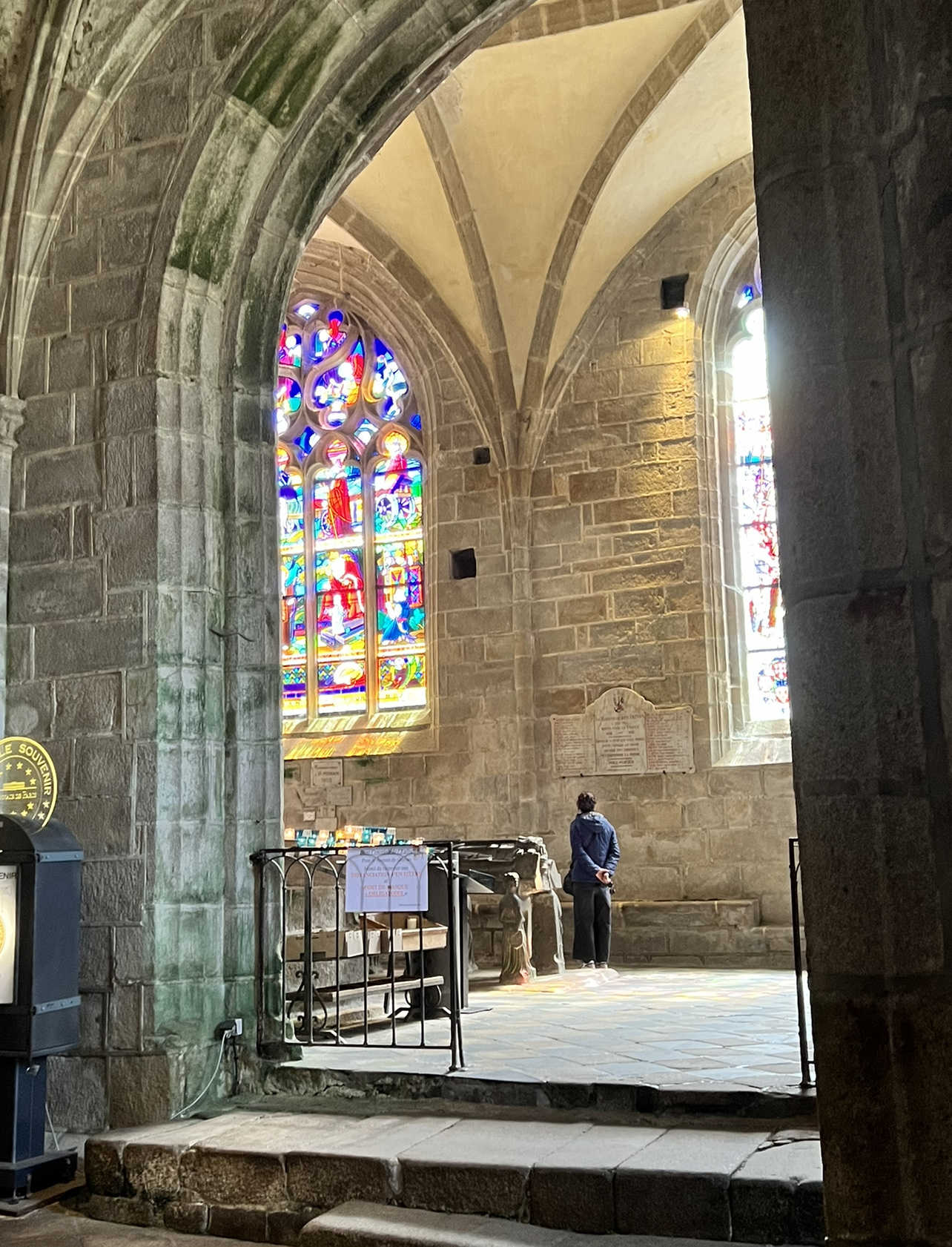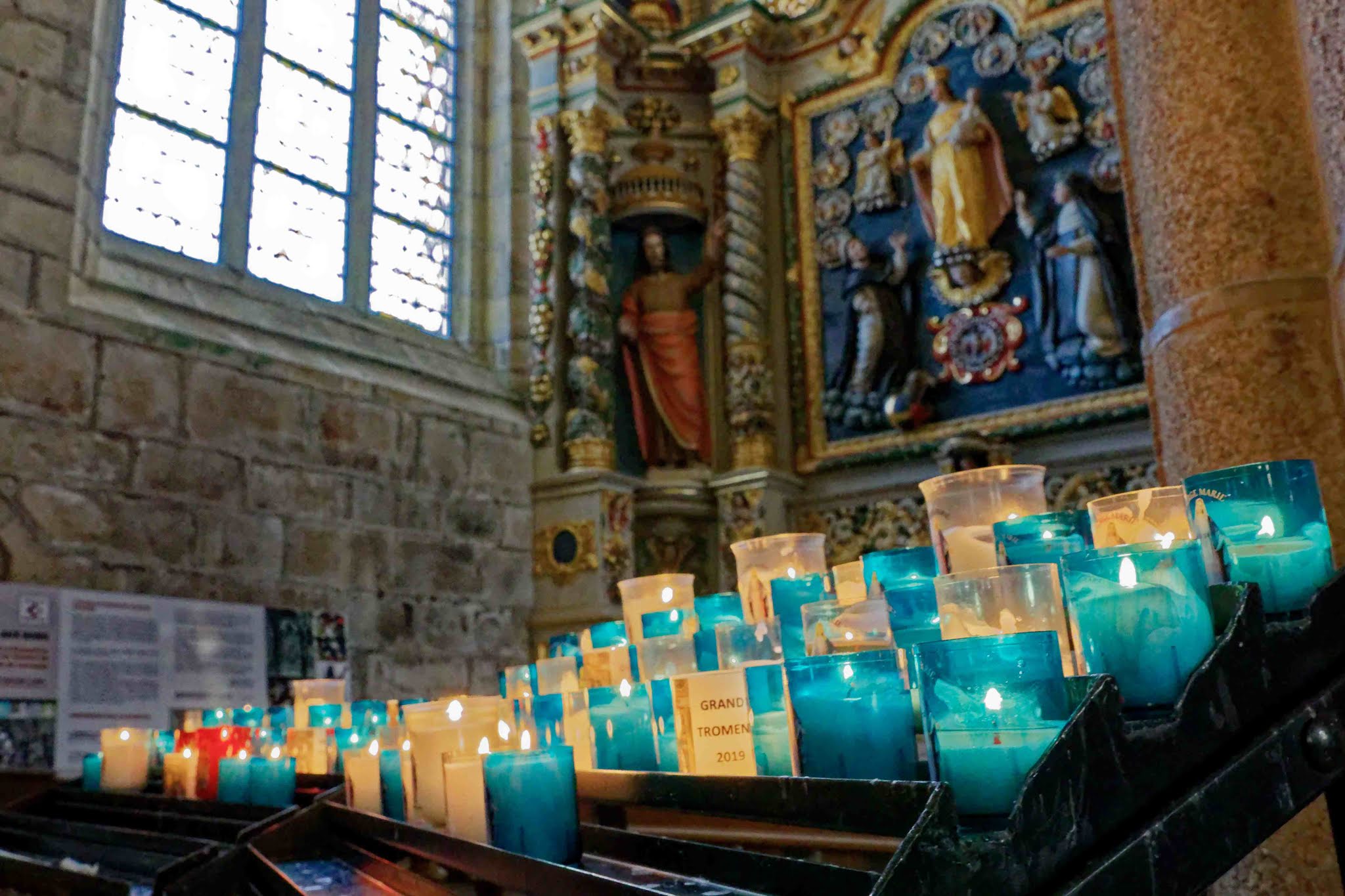 Époustouflante église dans le style typiquement breton avec des couleurs, des vitraux et des effigies tout à fait magnifique ! Je n'ai vu de pareil retable qu'en Italie ou en Alsace : il y a même le tombeau de Ronan ainsi que ces côtes dans un reliquaire ... Ouvrez bien les yeux, vous pourrez admirer des détails dans les peintures ou les vitraux qui sont incroyables ! Tout cela dans une ambiance musicale délicieuse !