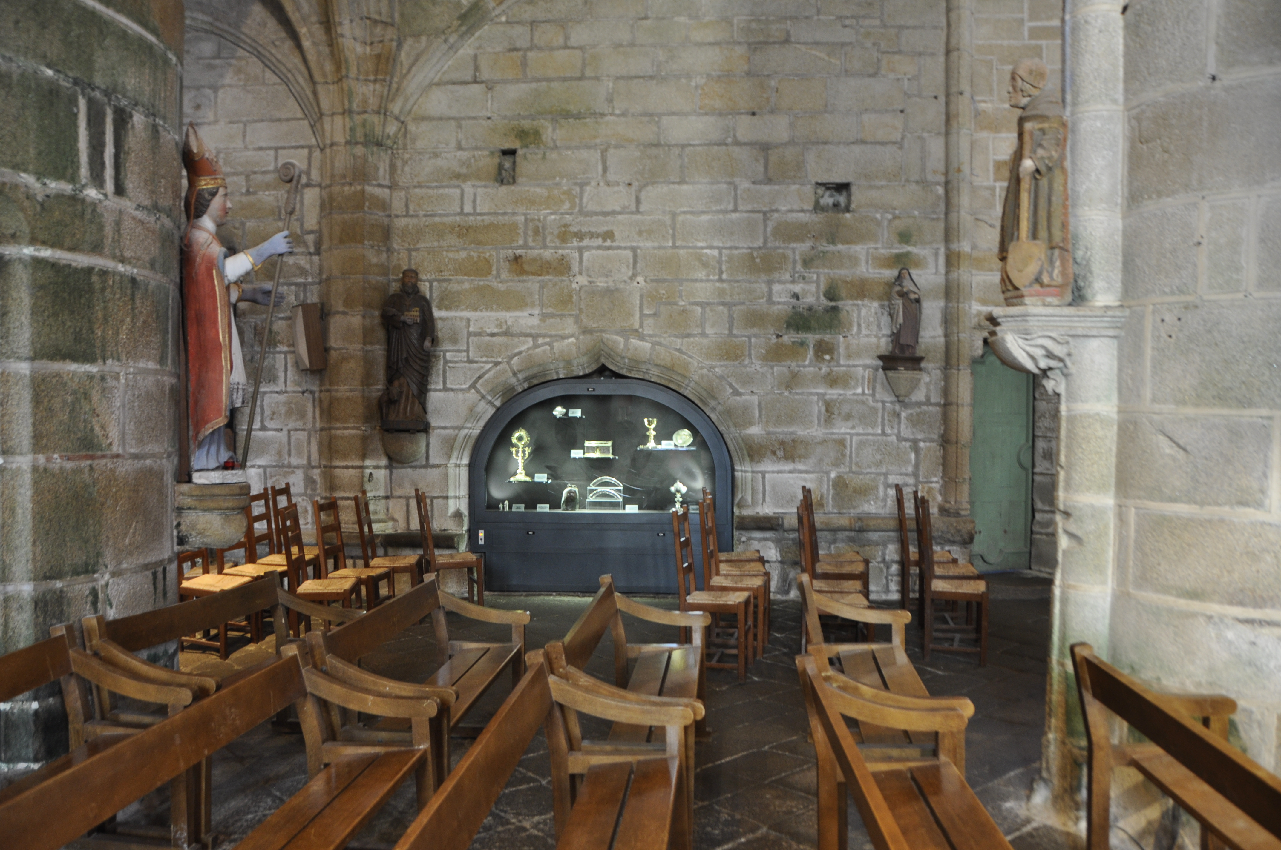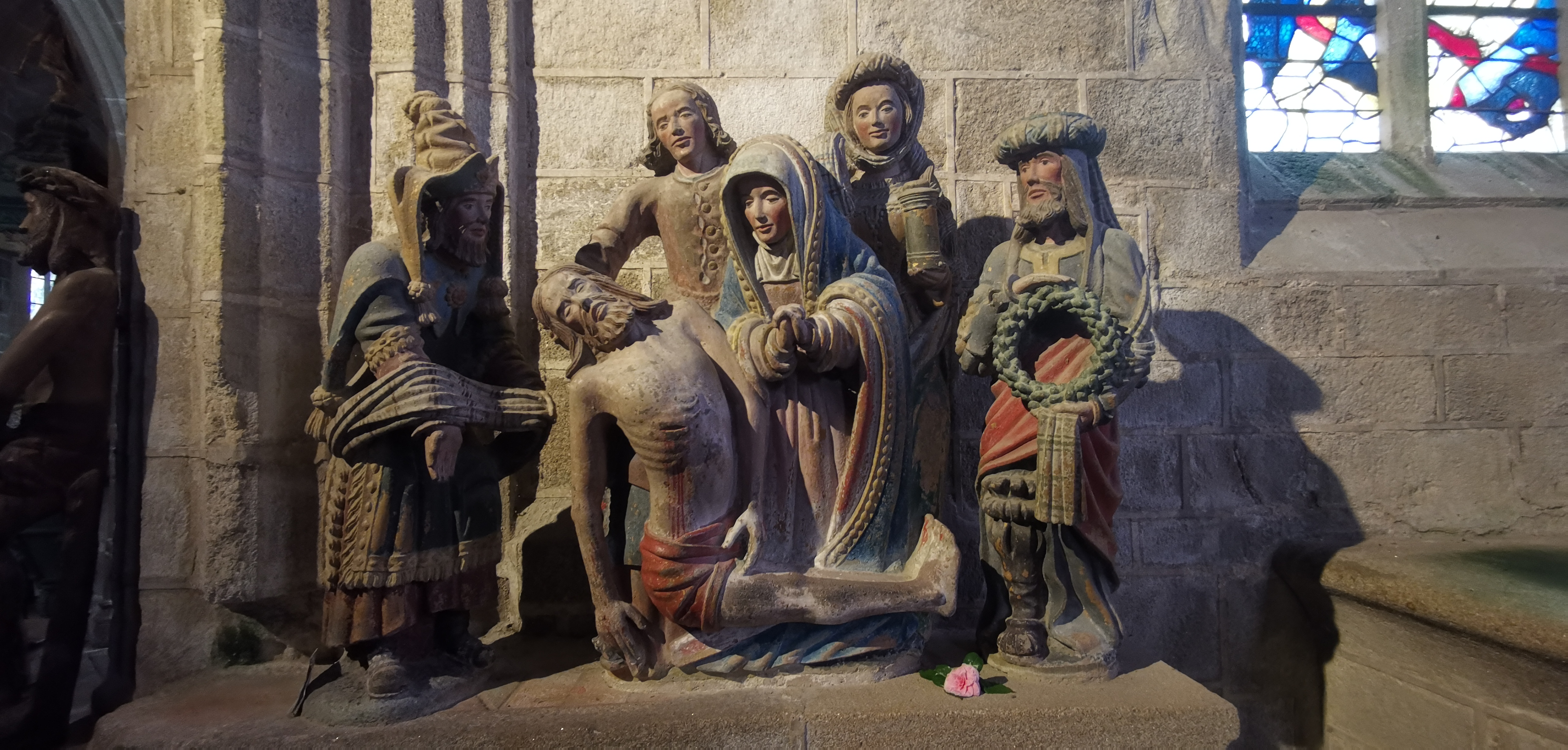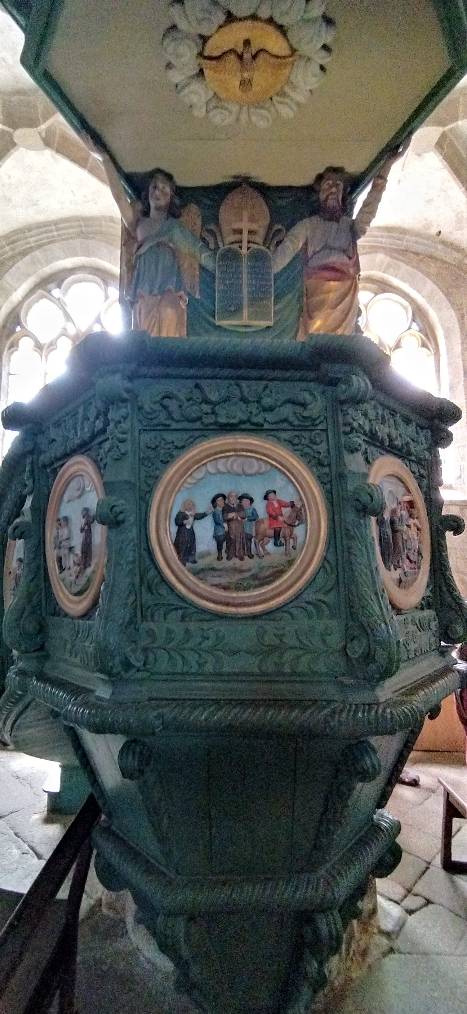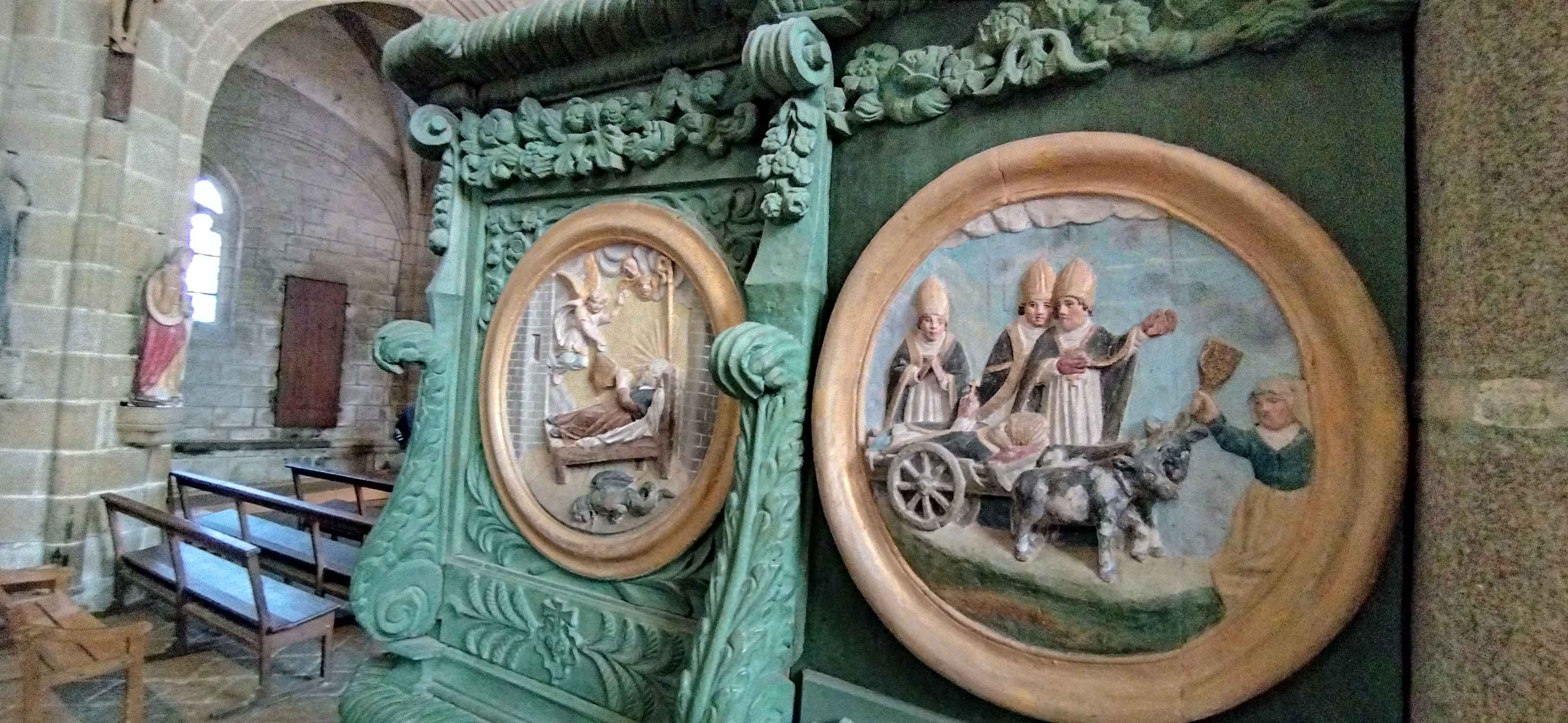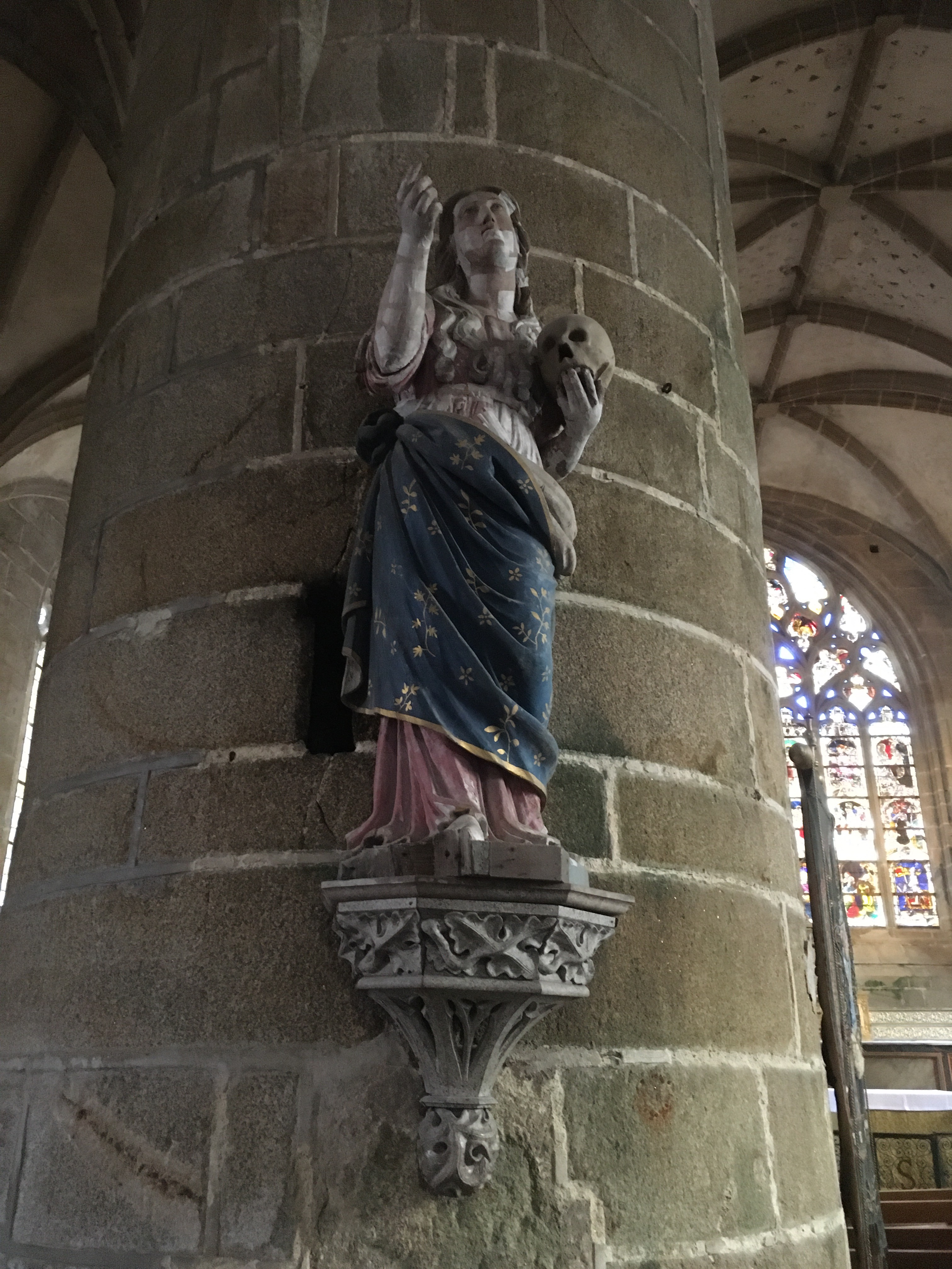 Époustouflante église dans le style typiquement breton avec des couleurs, des vitraux et des effigies tout à fait magnifique ! Je n'ai vu de pareil retable qu'en Italie ou en Alsace : il y a même le tombeau de Ronan ainsi que ces côtes dans un reliquaire ... Ouvrez bien les yeux, vous pourrez admirer des détails dans les peintures ou les vitraux qui sont incroyables ! Tout cela dans une ambiance musicale délicieuse !