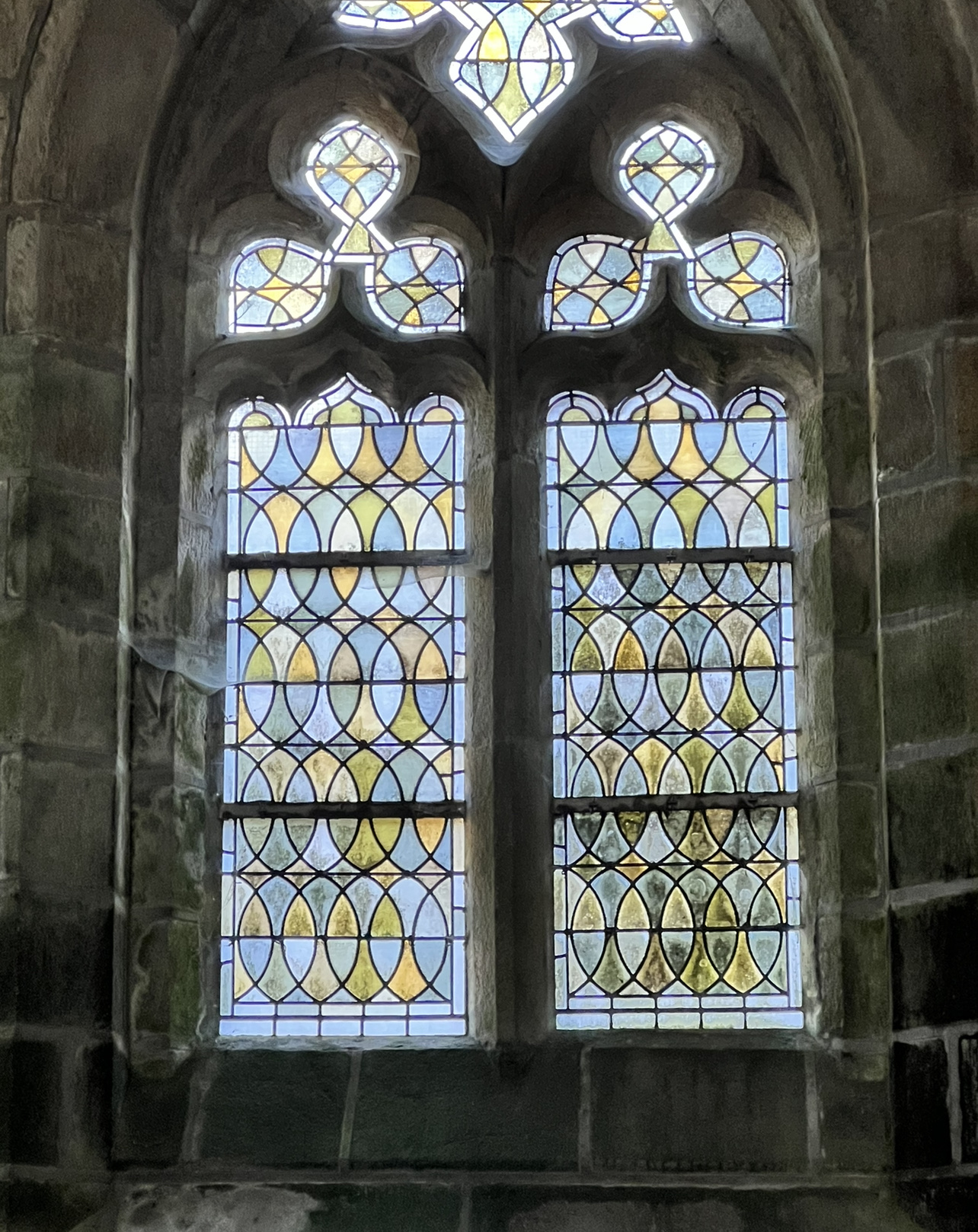 Une belle et ancienne église avec de beaux vitraux située dans un ancien village avec un incroyable cimetière derrière elle. Nous y étions pendant Halloween et le cimetière regorgeait de fleurs de toutes sortes. C'était à couper le souffle.