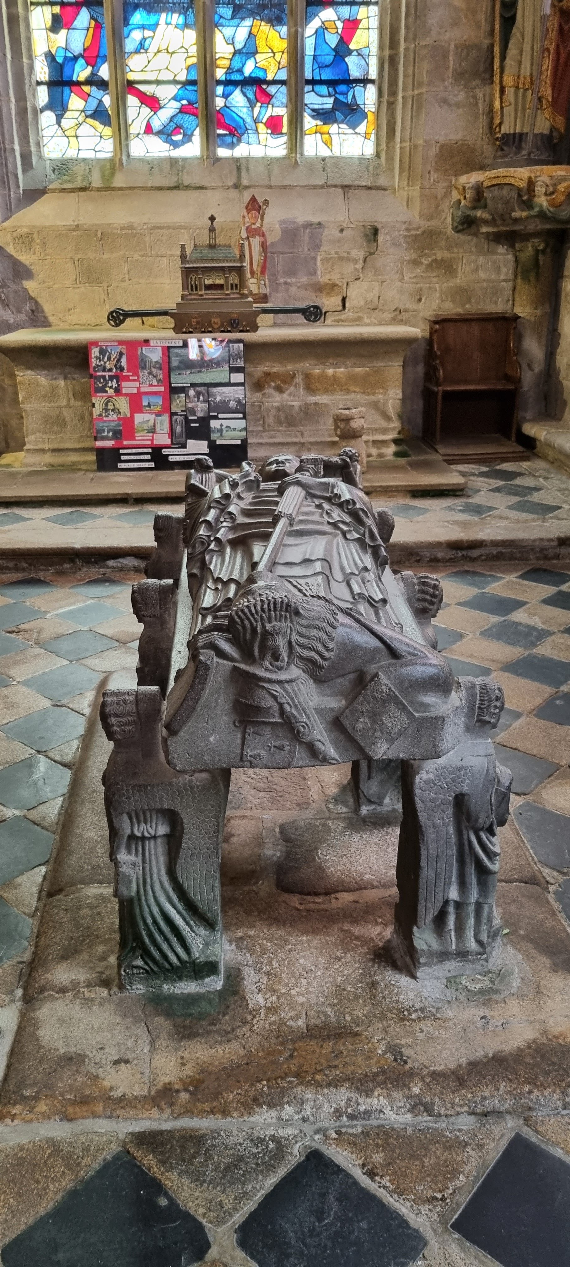 Très belle église avec un magnifique gisant de St Ronan en pierre sculptée.