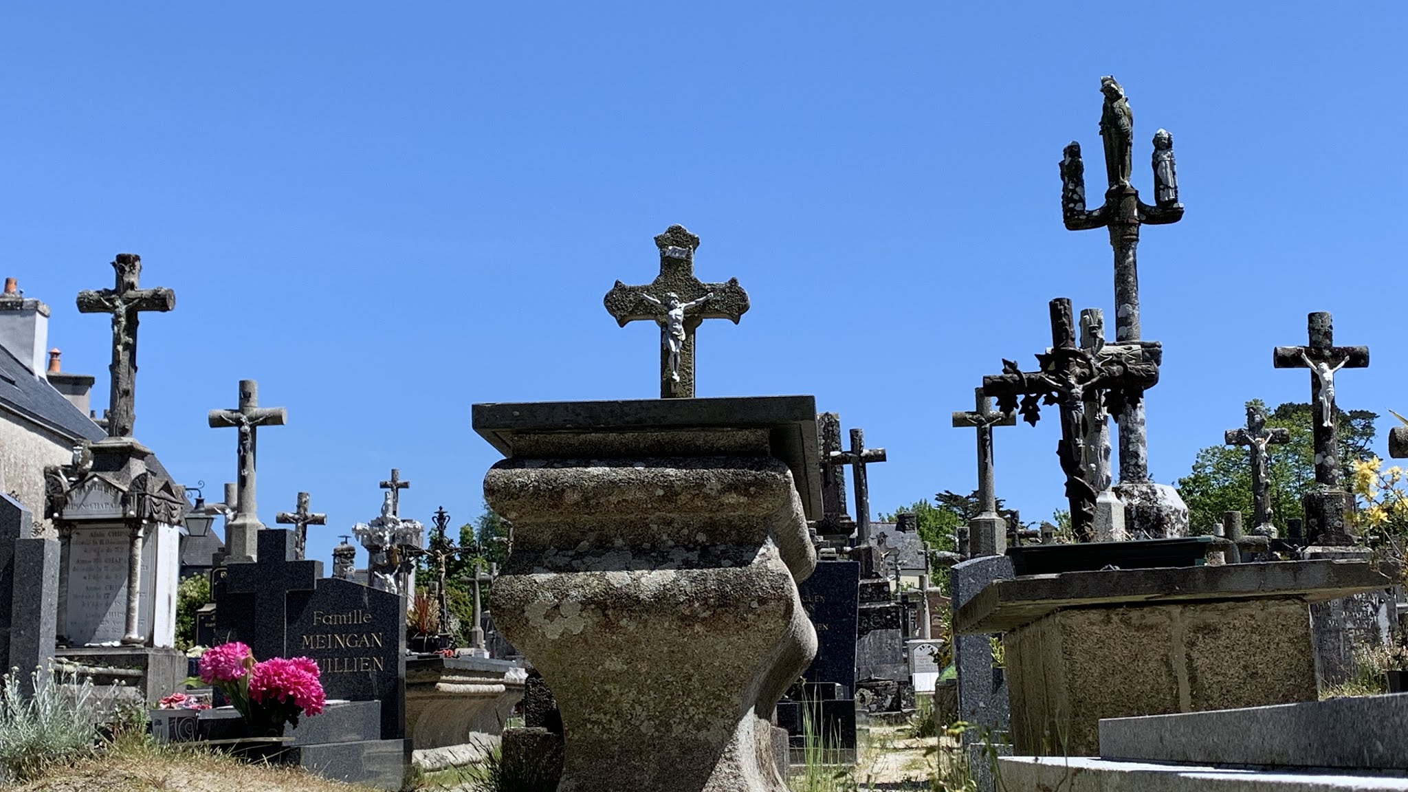 Belle église en pierres au cœur du village. Découvrez le rosaire magnifiquement restauré Le gisant de saint ronan.