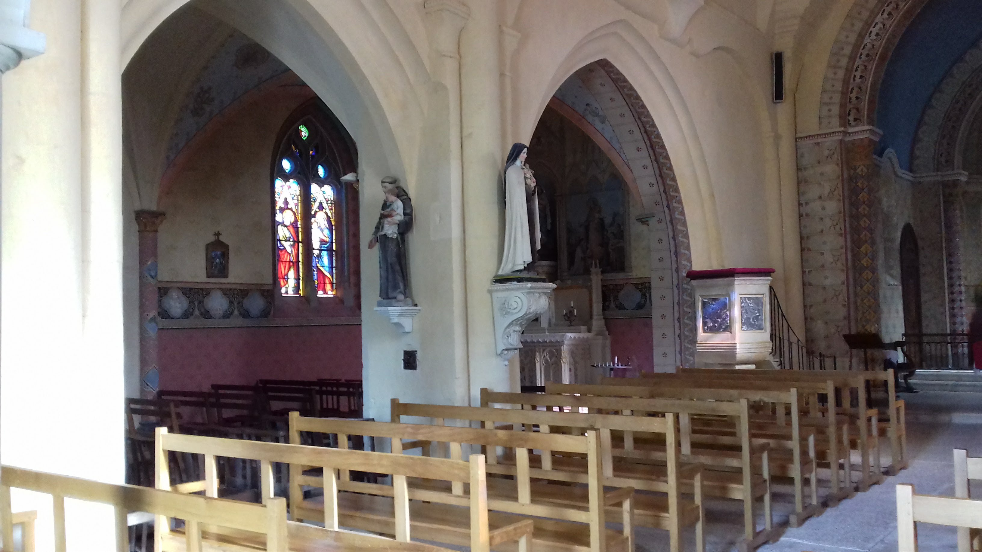 Une magnifique église du XII ème Siècle. Magnifique surtout à l'intérieur richement décoré de peintures anciennes pour le choeur. Extérieur simple pour la façade avec l'abside portant de superbes modillons représentant visages, animaux et autres motifs. Couverture de tuiles plates pour la nef, le clocher et l'abside, Un clocher carré massif.