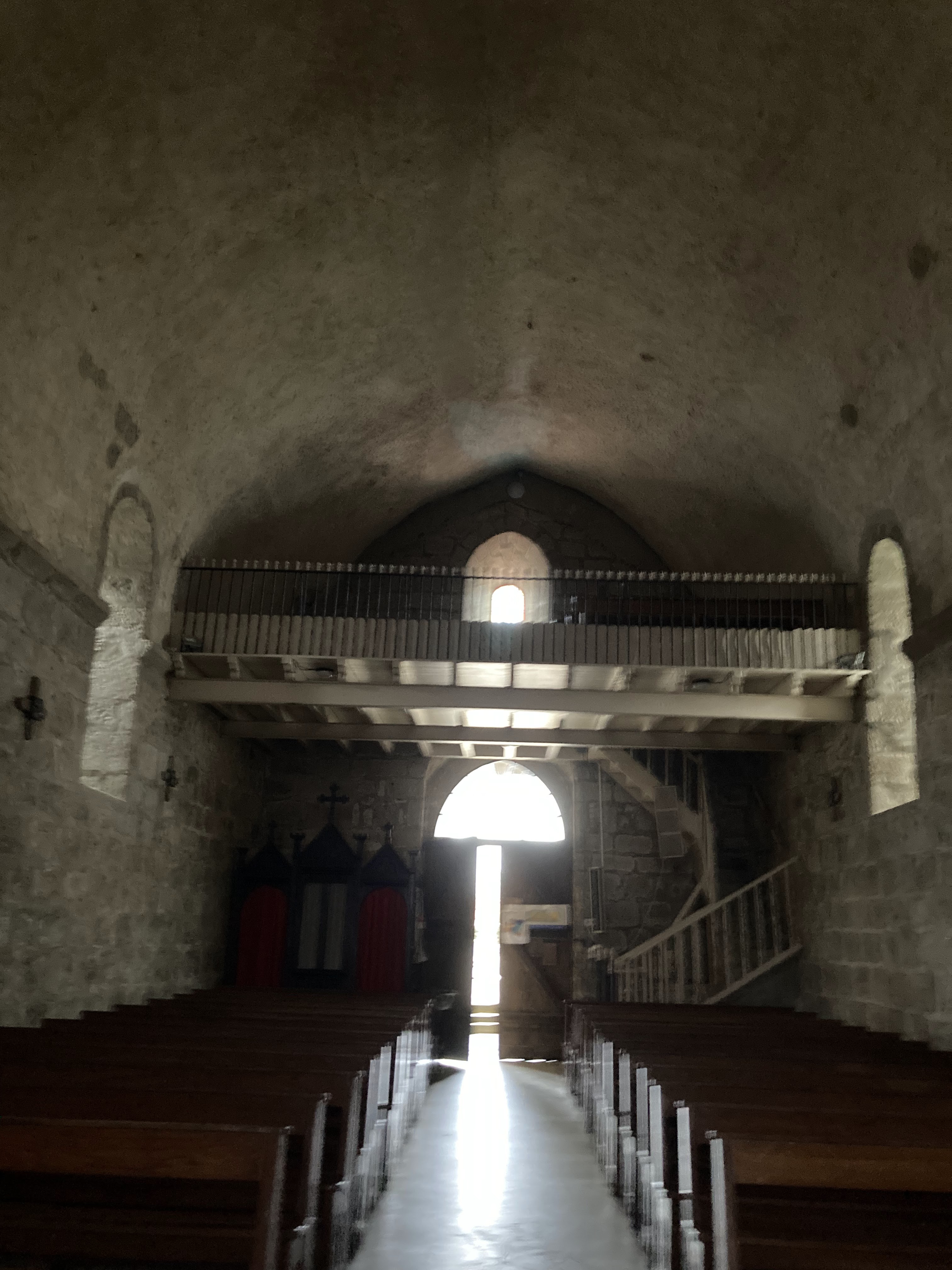 Petite église, sobre en ornement. Très bonne accoustique.escalier sécurisé.porche d'accueil agréable
