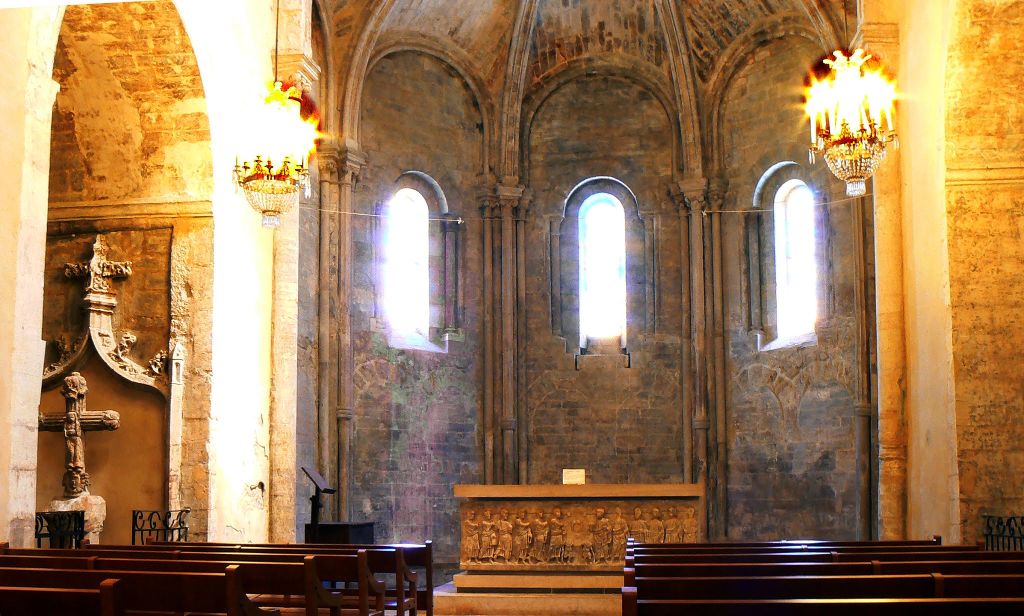 Belle église combinant les styles roman et gothique, construite du XIIᵉ siècle au XIVᵉ siècle.