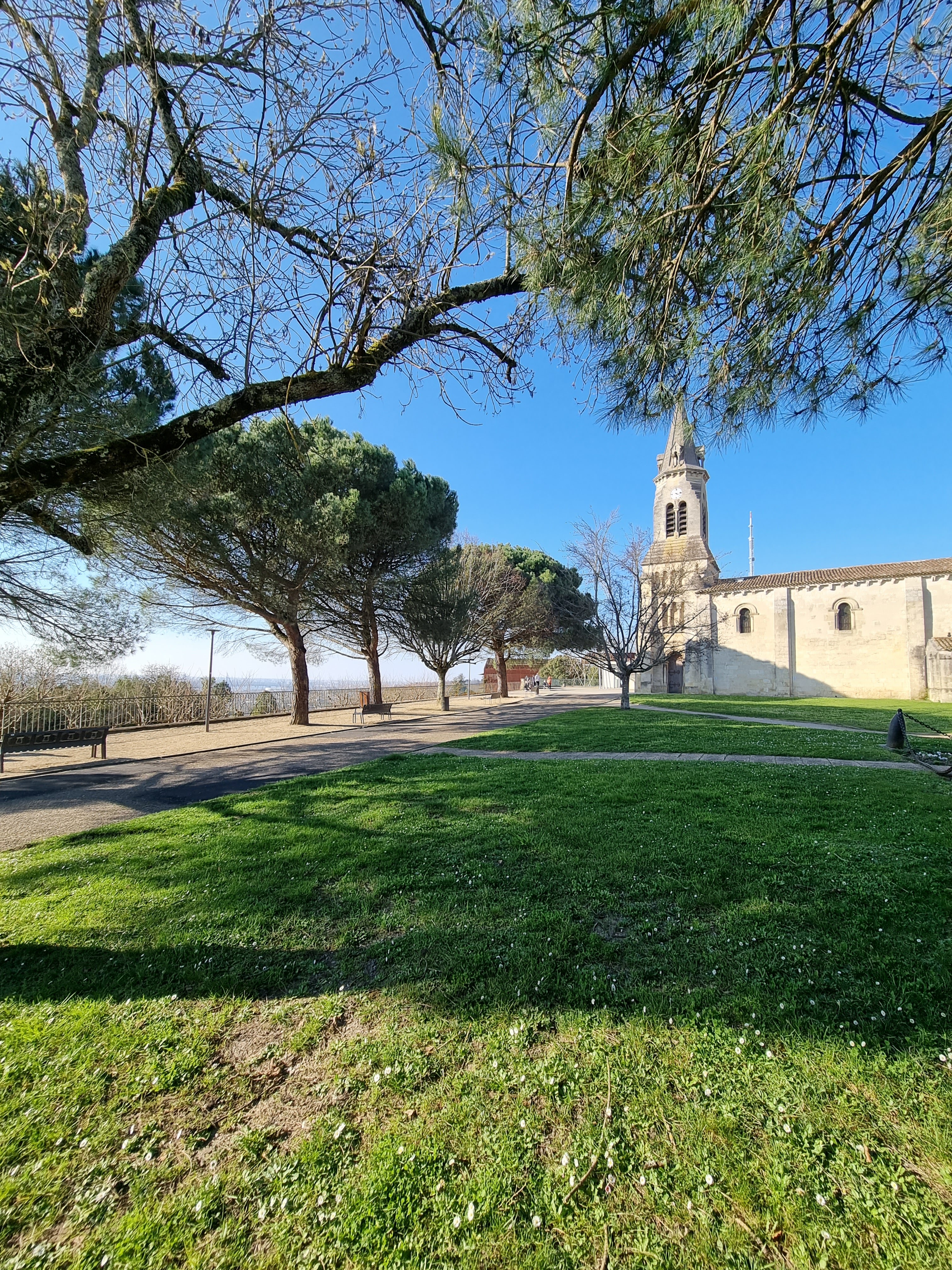 Église qui renferme en ces pierres selon la légende une épine de la couronne du christ et il y a la vue sur Bordeaux ...
