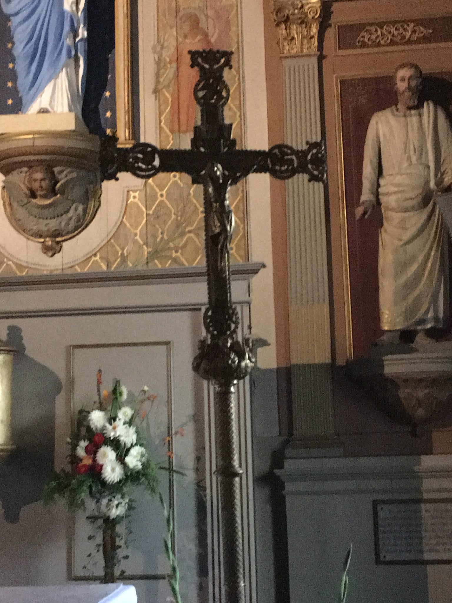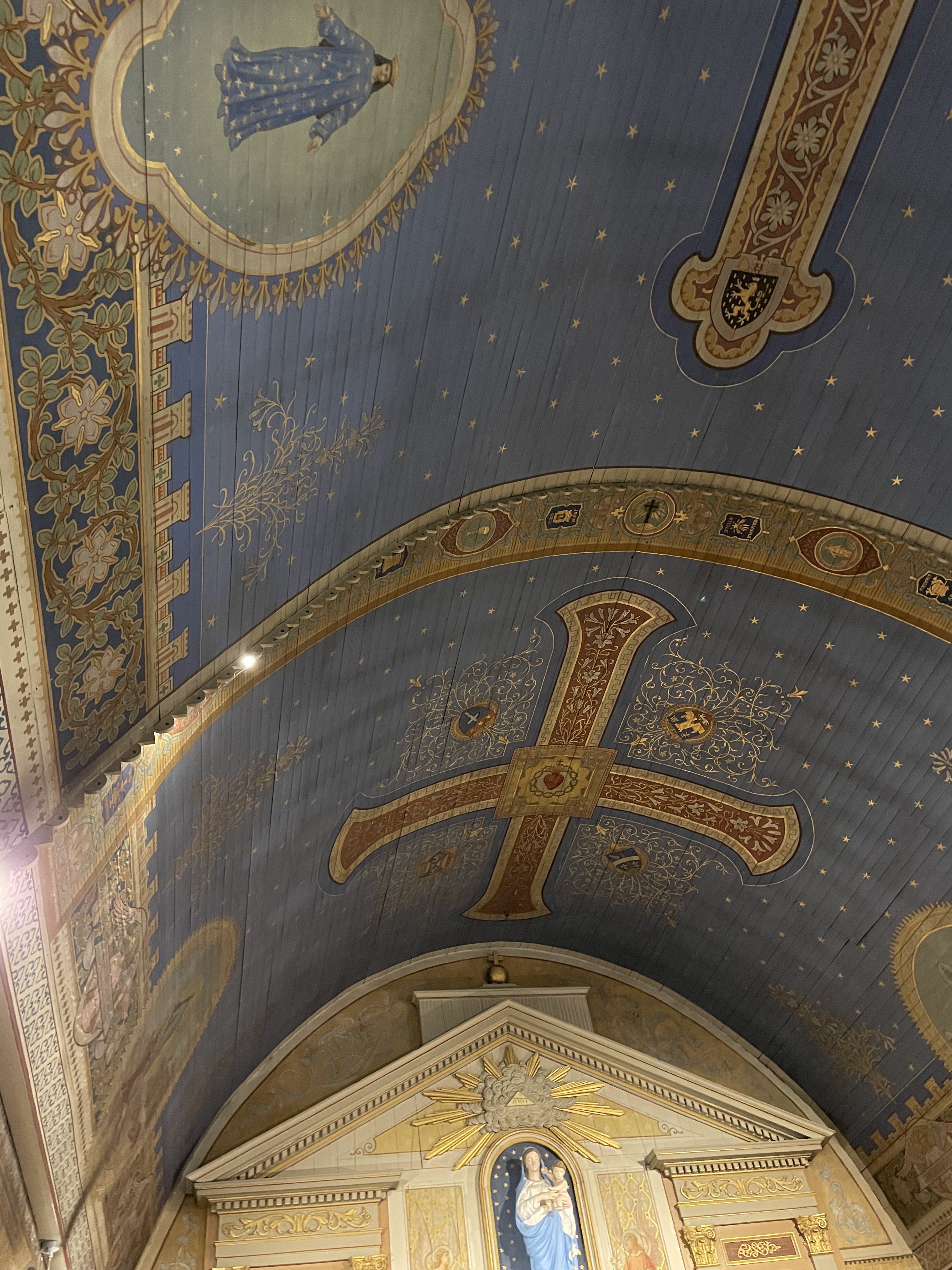 Belle petite église paroissiale avec une grande histoire ! Les murs et plafond sont magnifiquement décorés.