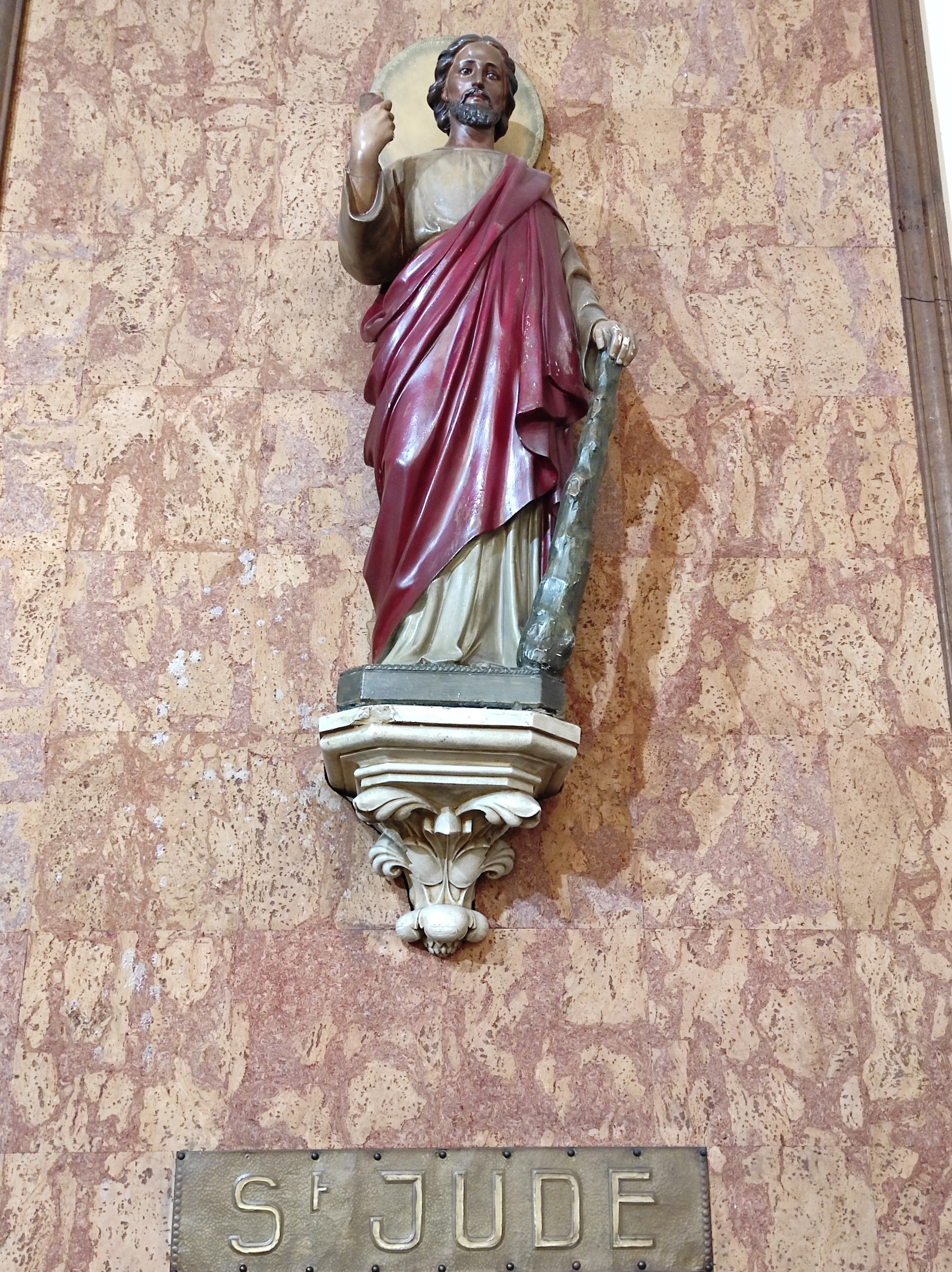 Une belle Eglise, une atmosphère de paix. Saint Jude est l'un des douze apôtres; il est invoqué pour les causes désespérées. Objet d'un véritable culte aux États-Unis, il est peu connu en France. Horaires des messes : - tous les mardis à 18h30 dans la petite salle à gauche du chœur - le dernier mercredi du mois est consacré au Pèlerinage à Saint Jude, messe à 9h45 - tous les samedis à 18h
