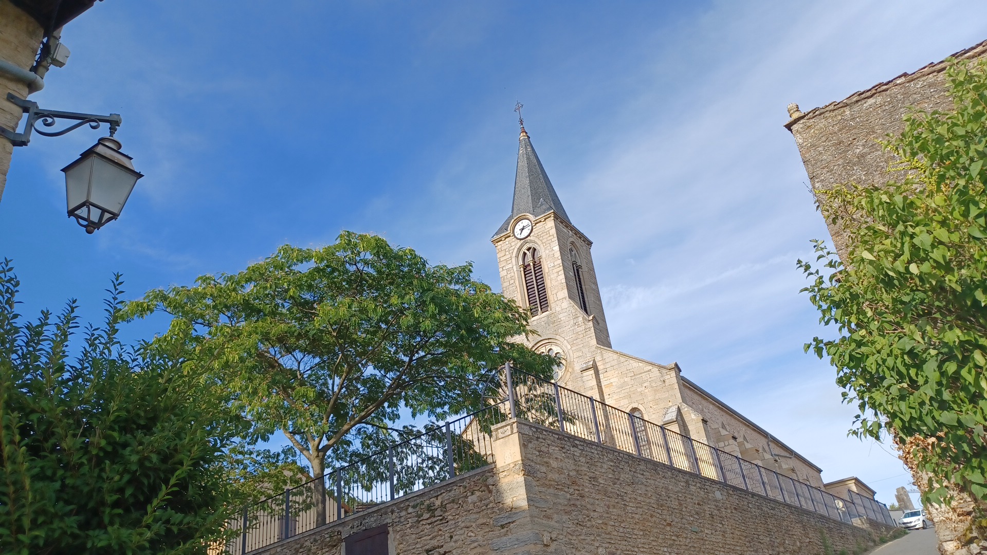 Eglise très jolie. En hauteur du village. Quelques places pour se garer à côté du cimetière.