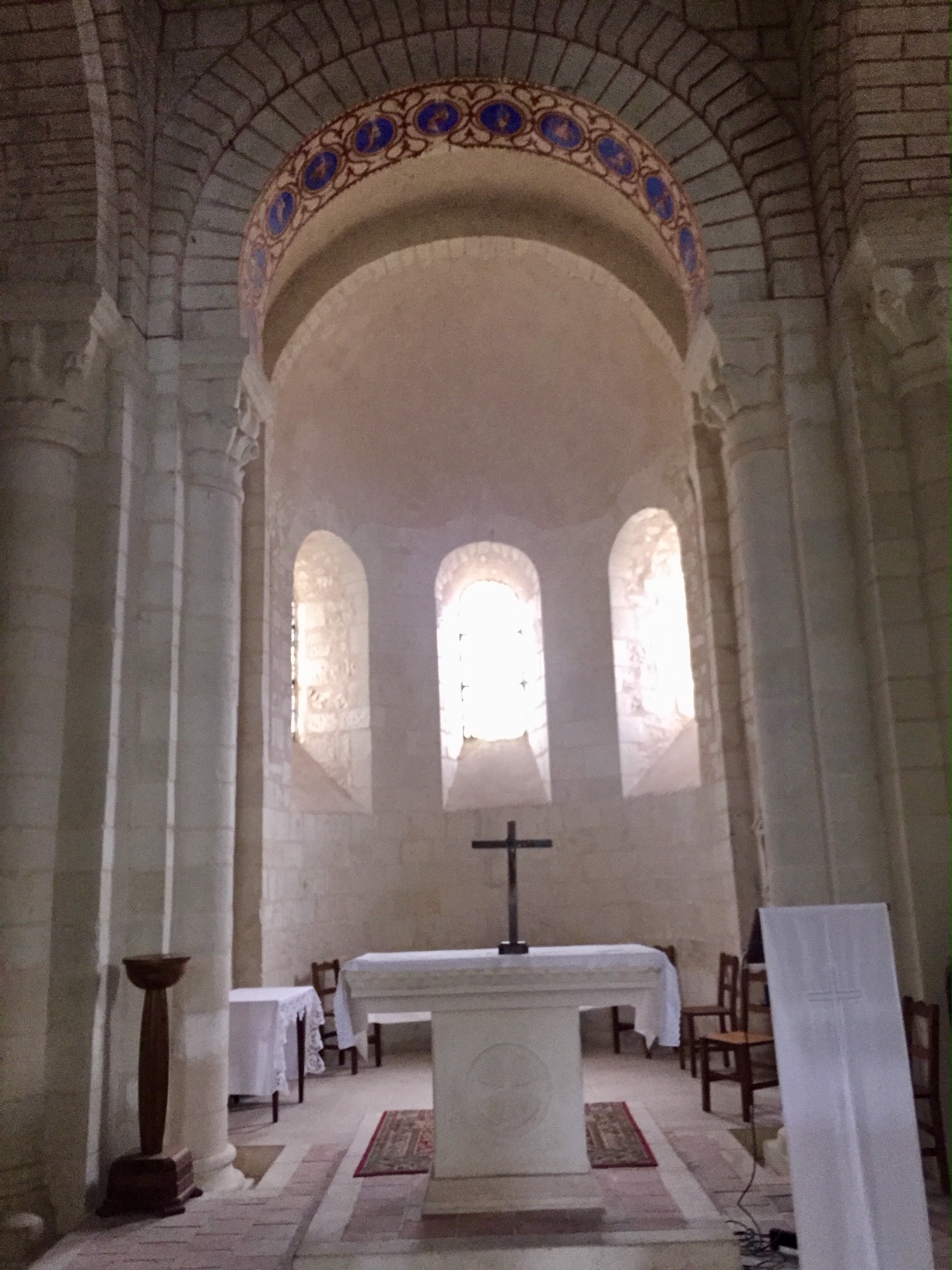 Une remarquable petite église romane qui mérite le détour. Construite au début du 12ème siècle et classée en 1914, son architecture originale transporte le visiteur en Espagne. En effet, sa façade et une partie du côté sud sont enveloppés par une galerie ouverte sur l'extérieur, avec colonnes et arcature. Cet élément architectural unique dans la Vienne, on le trouve fréquemment en Espagne, un peu en Bourgogne et en Iles de France. L'ensemble est vraiment très harmonieux, et l'intérieur l'est tout autant. Des fresques, des peintures, 20 chapitraux sculptés, des statues et des vitraux modernes très intéressants.