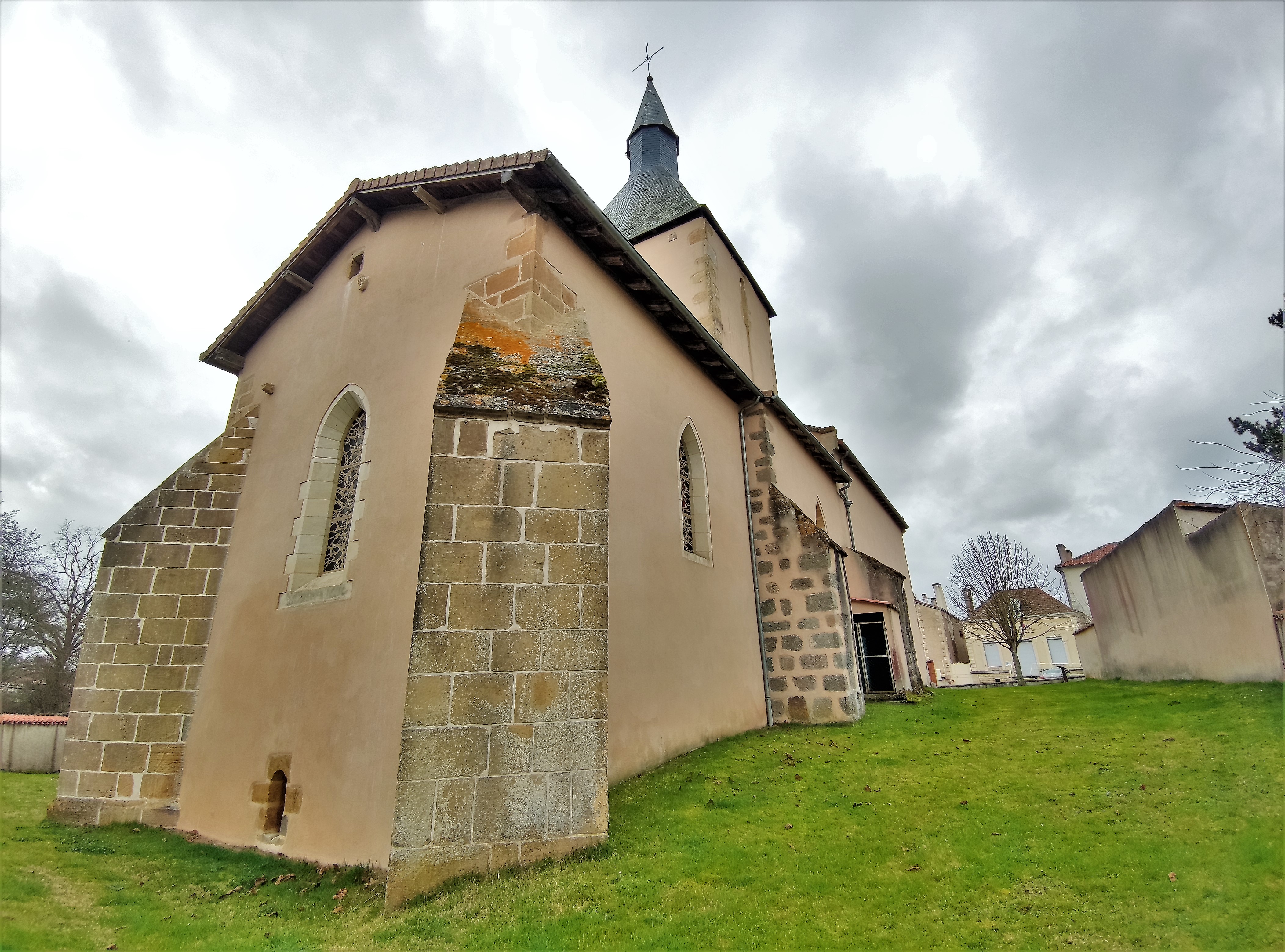 Je n'ai pu voir que l'extérieur, l'église était fermée, comme la mairie située juste en face. Une église du 11ème, modifiée au 14ème, puis au 18ème et 19ème, une signalétique intéressante permet de découvrir l'histoire de cette église et de mieux comprendre son architecture actuelle. La façade est dissimulée pour moitié par une chapelle et une cavité sous le chœur peut laisser penser à l'existence d'une crypte.