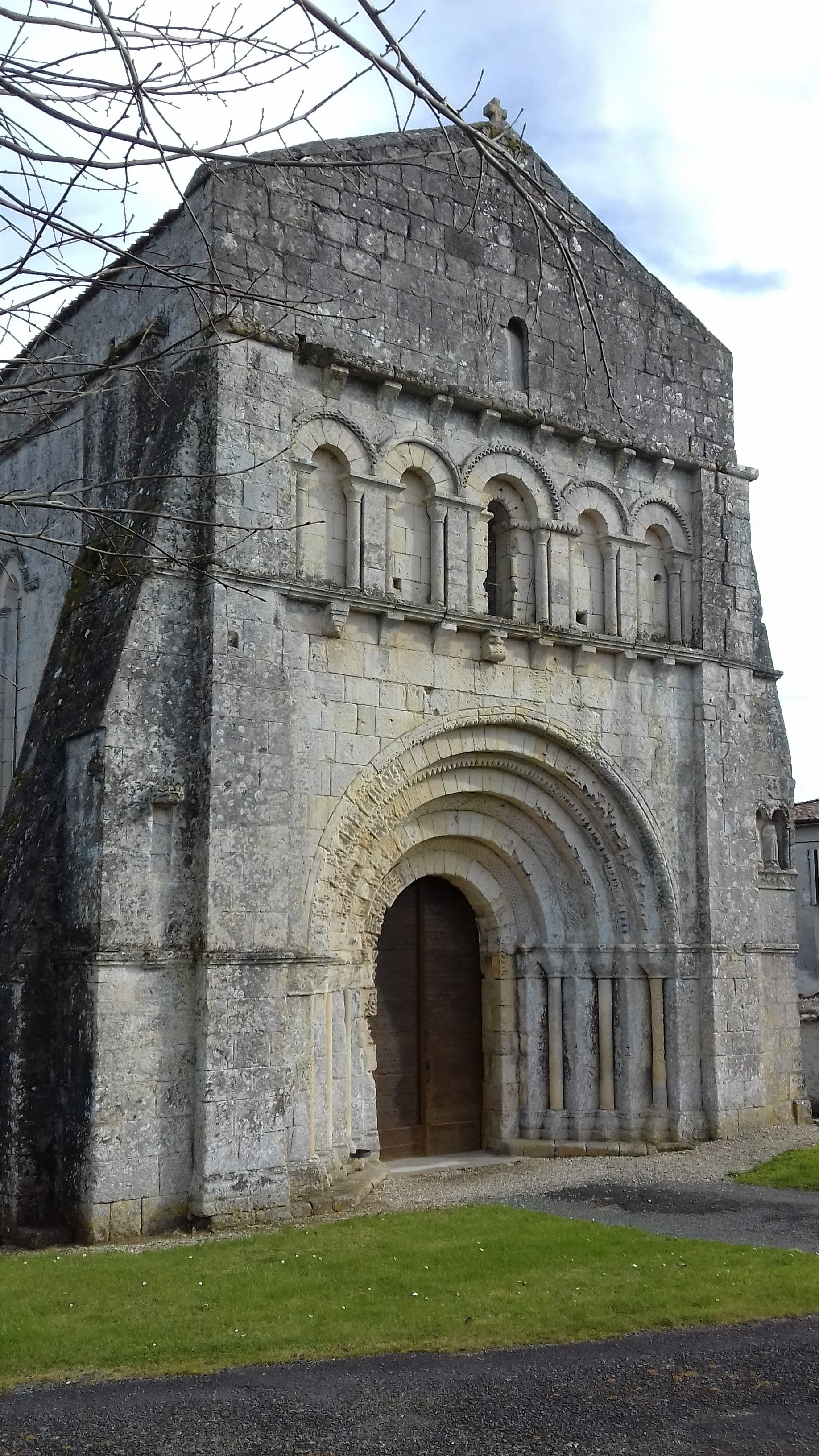 Belle église de style roman Saintongeais avec un transept avec des bras en forme d'absides, ce qui donne un plan en forme de trèfle dit aussi triconque , rare en Saintonge. Construite au XII ème Siècle. Une façade assez simple comme les voussures, Chapiteaux et colonnes cylindriques. Église fermée donc pas de visite intérieure.