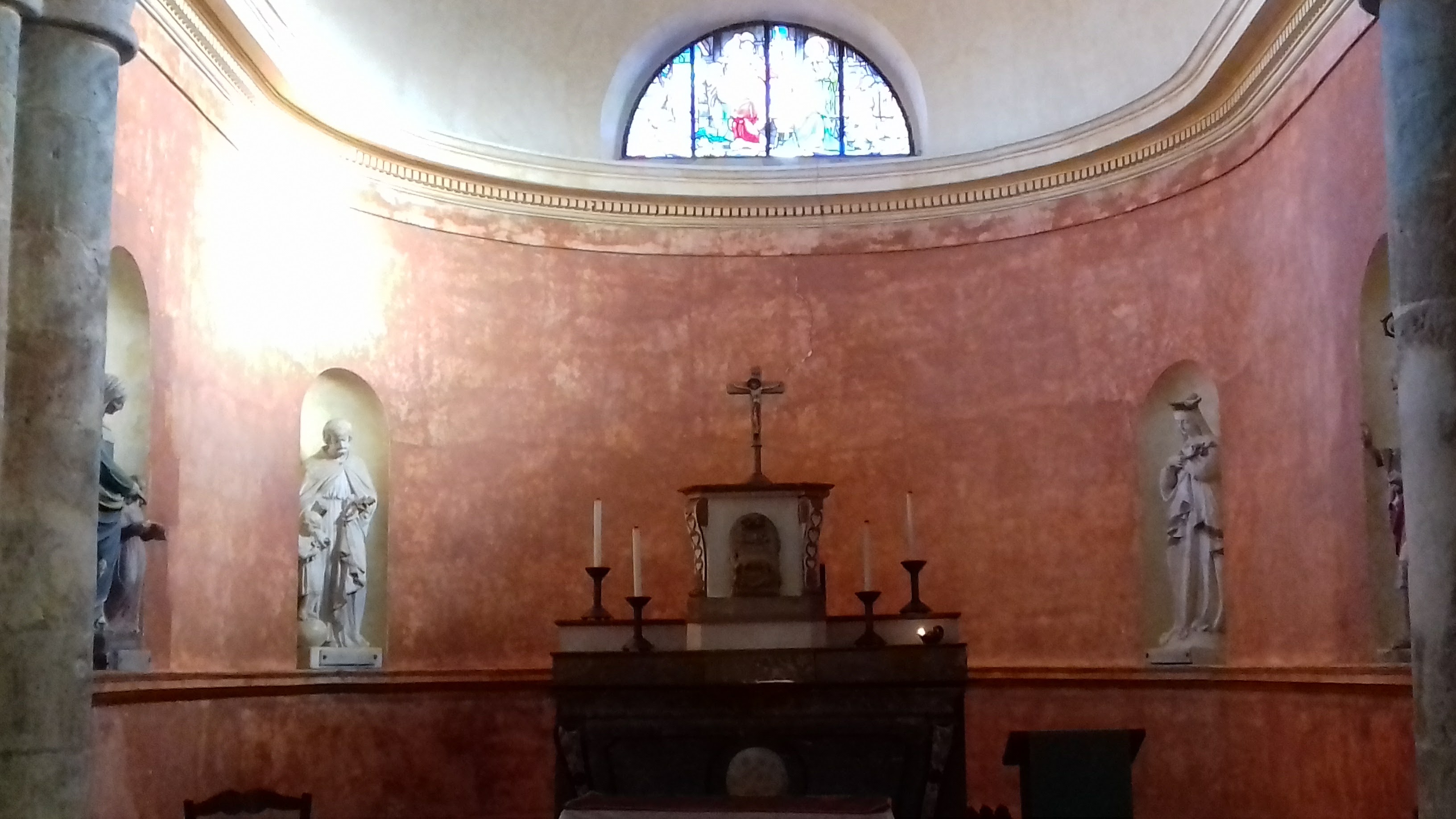 Belle église de village avec son clocher tour carrée. Jolie façade et intérieur avec encore quelques peintures décor sur les murs.
