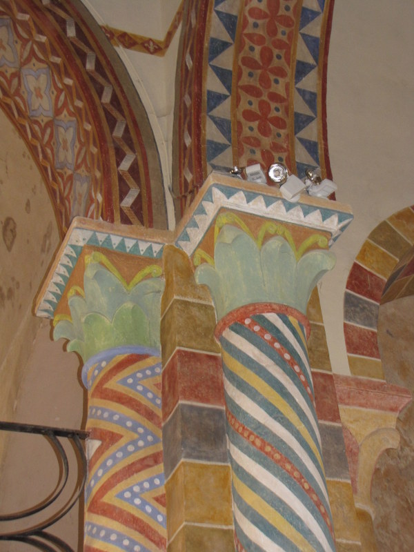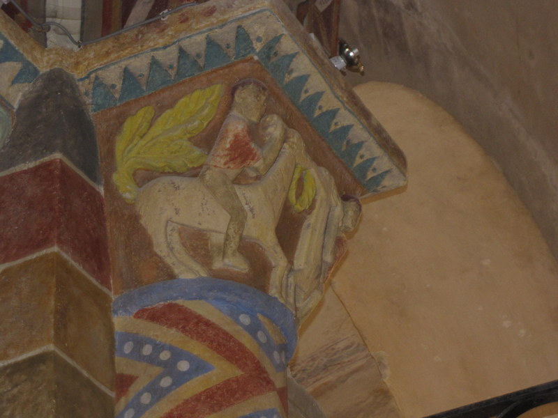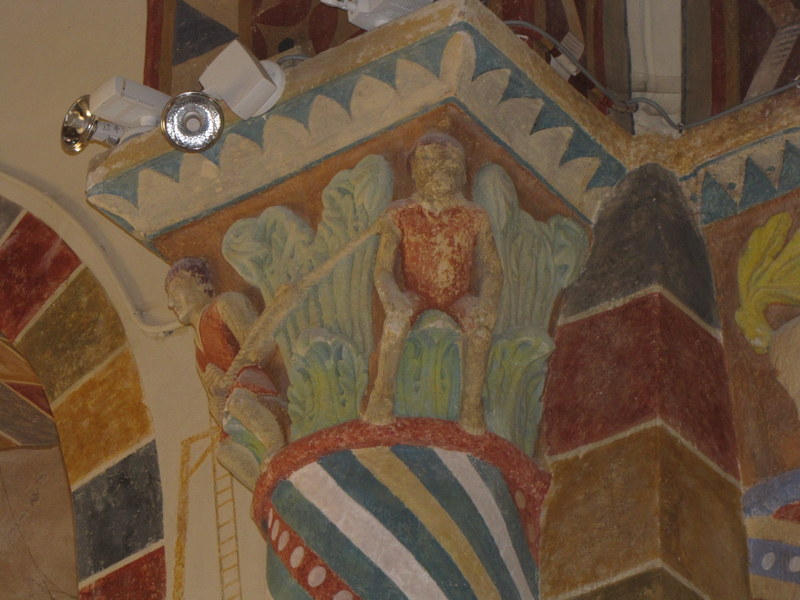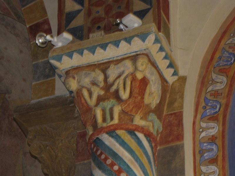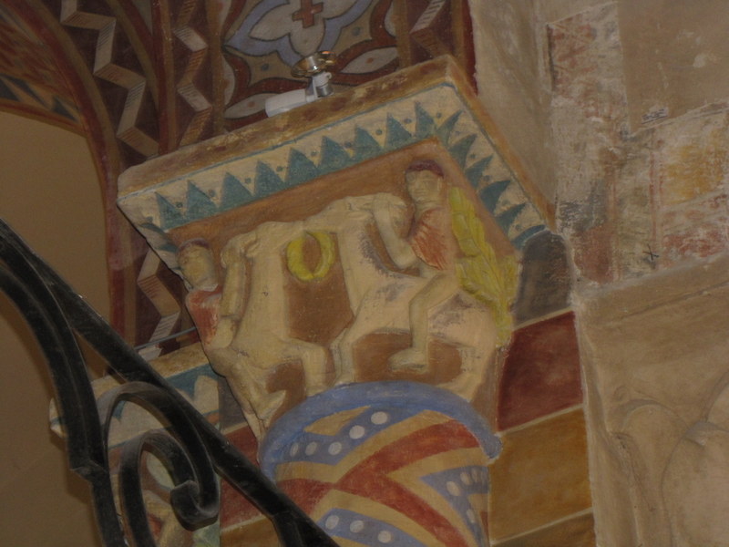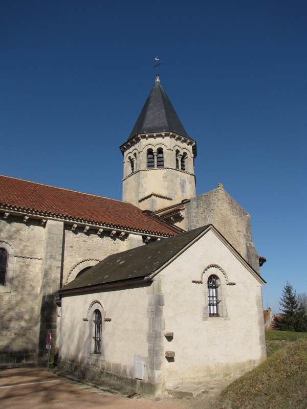 Église Saint-Symphorien Cette église a été construite vers 1140 au sommet d'une motte, dans l'enceinte du château incendié en 1369. Les seigneurs de ce château furent les premiers vassaux des ducs de Montpensier. Des fouilles archéologiques du XIXème siècle montrent que l'église était construite contre le château. L'édifice a été construit dans un pur style roman. Les murs de la nef furent rehaussés ultérieurement. Le transept ne s'étend que légèrement en dehors des lignes de la nef. Cette église possède une abside, des absidioles semi-circulaires et une tour octogonale. Au XIXème siècle, des peintures murales de saints (Saint Sébastien et Saint Etienne) du XIVème siècle ont été découvertes sous une couche de plâtre. Vous verrez également des groupes de statues en bois du XVIIème siècle représentant l'Annonciation et la Visitation de Notre-Dame, une statue de Saint-Symphorien du XVIème siècle ainsi qu'un bénitier du XVIème siècle. Cette église appartient aux Eglises peintes du Bourbonnais.