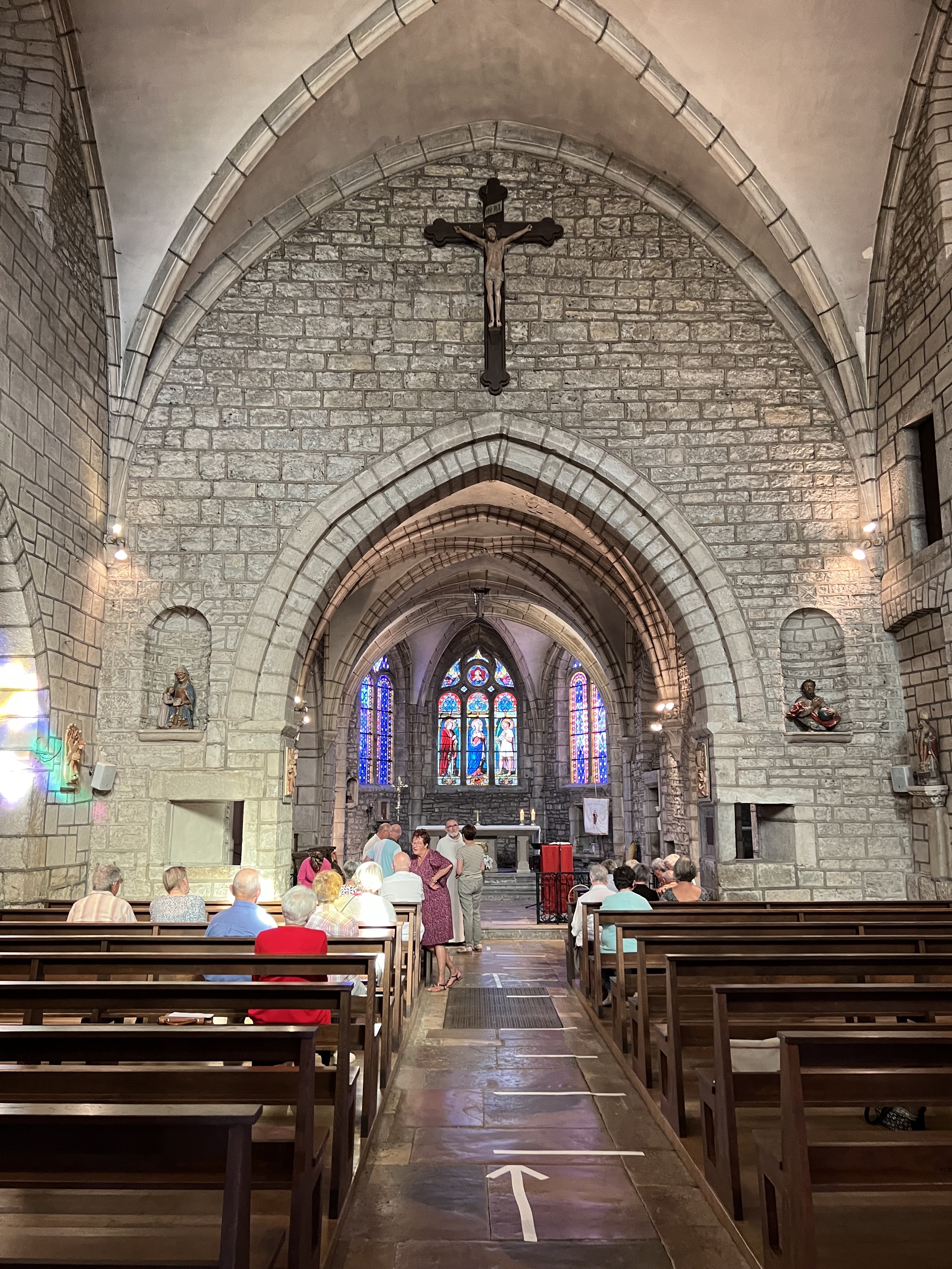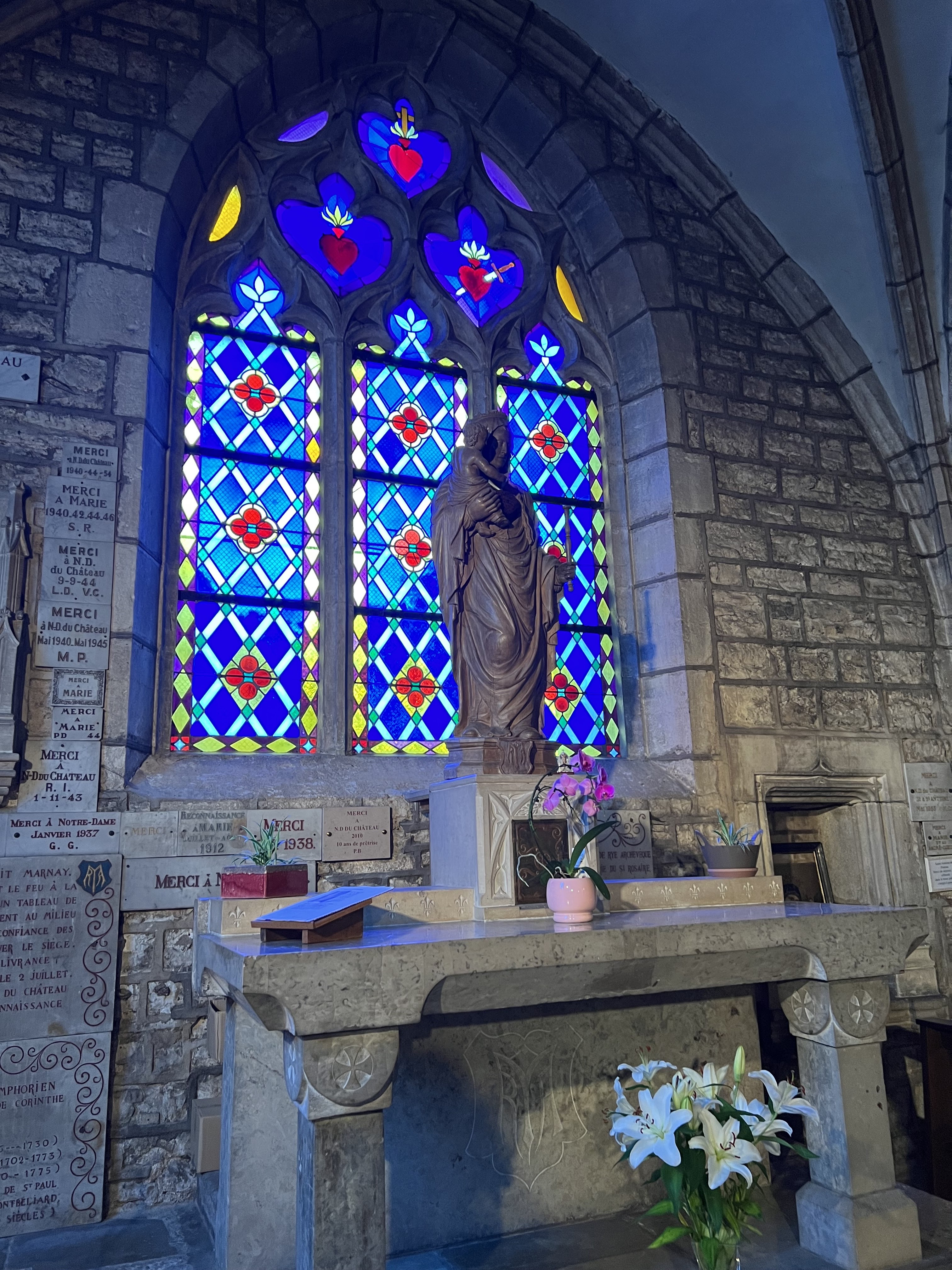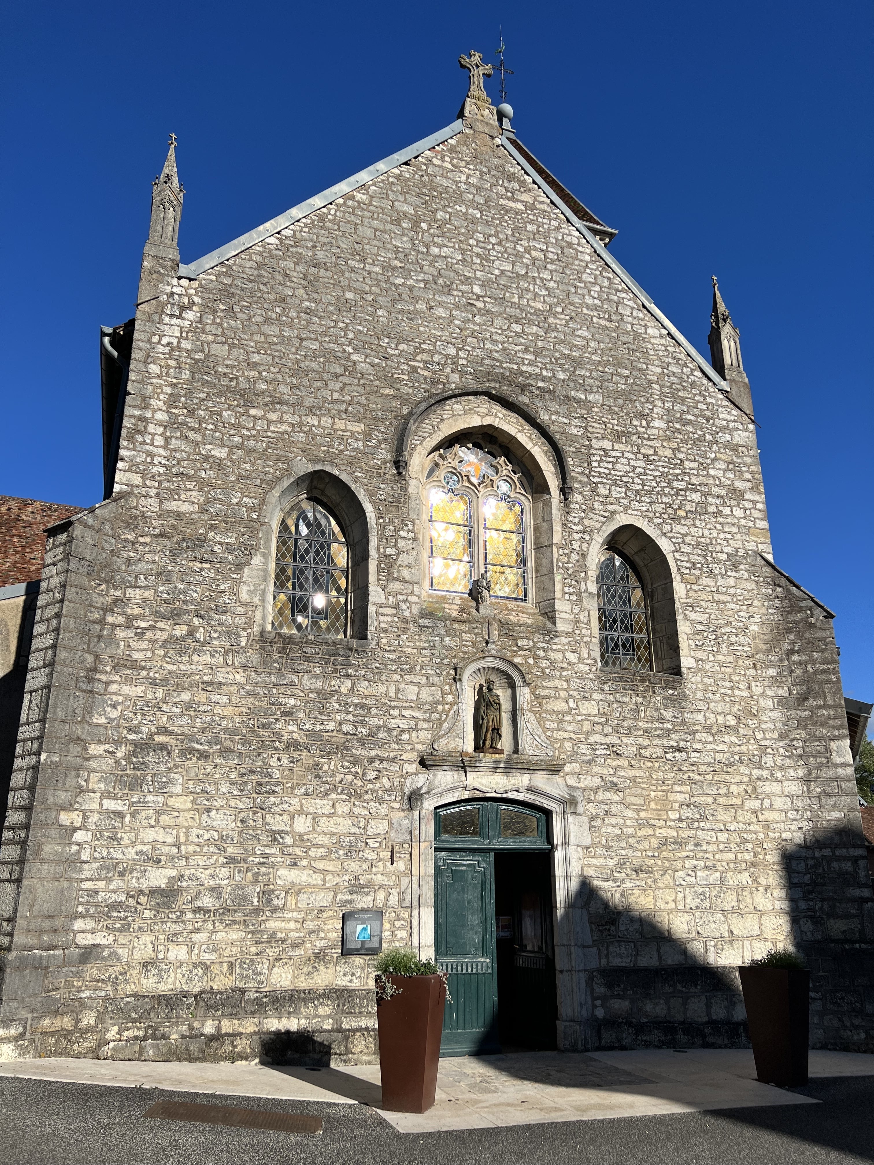 Marnay 70 à la chance d’avoir sur ses terres la superbe église Saint-Symphorien en hommage au martyr éponyme. Édifice du XII-XVIIe siècle dans lequel on s’est sentis particulièrement apaisés. Très originale, elle dispose de nombreuses niches sur les côtés et la lumière de ce magnifique samedi soir d’été traversait des vitraux somptueux durant l’eucharistie. À visiter sans tarder !