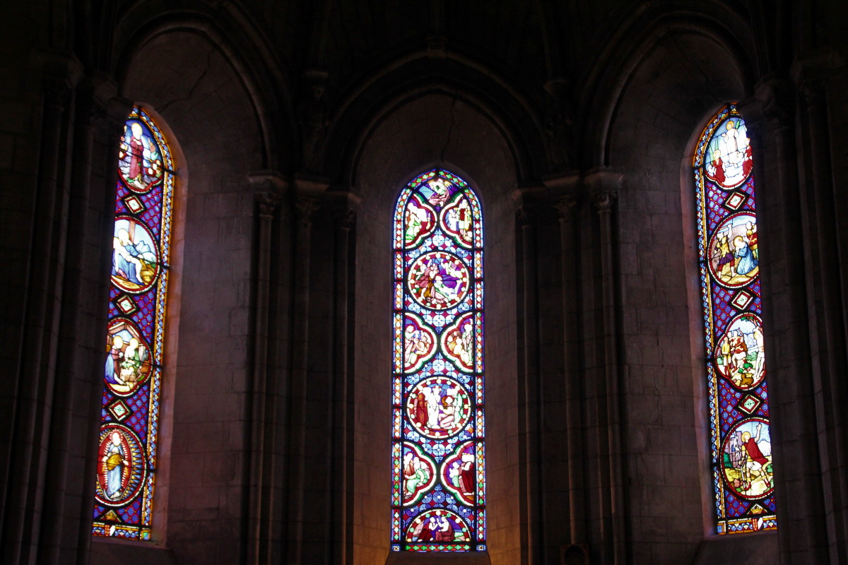 Belle église paroissiale avec de magnifiques vitraux, des couleurs très détaillées et étonnantes
