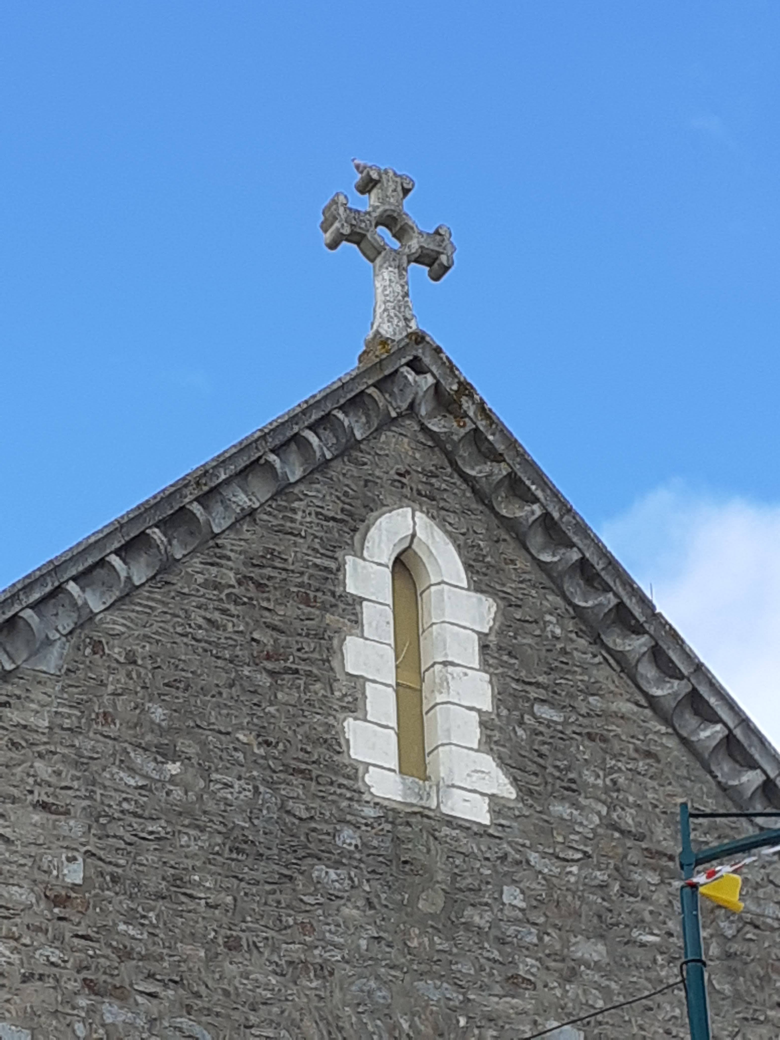 Belle église, je pense début XIX ème siècle. En ce moment l'intérieur en grande refection, dommage pour la vision des magnifiques vitraux. Murs en pierres jointes. Quelques statuettes de Saints.