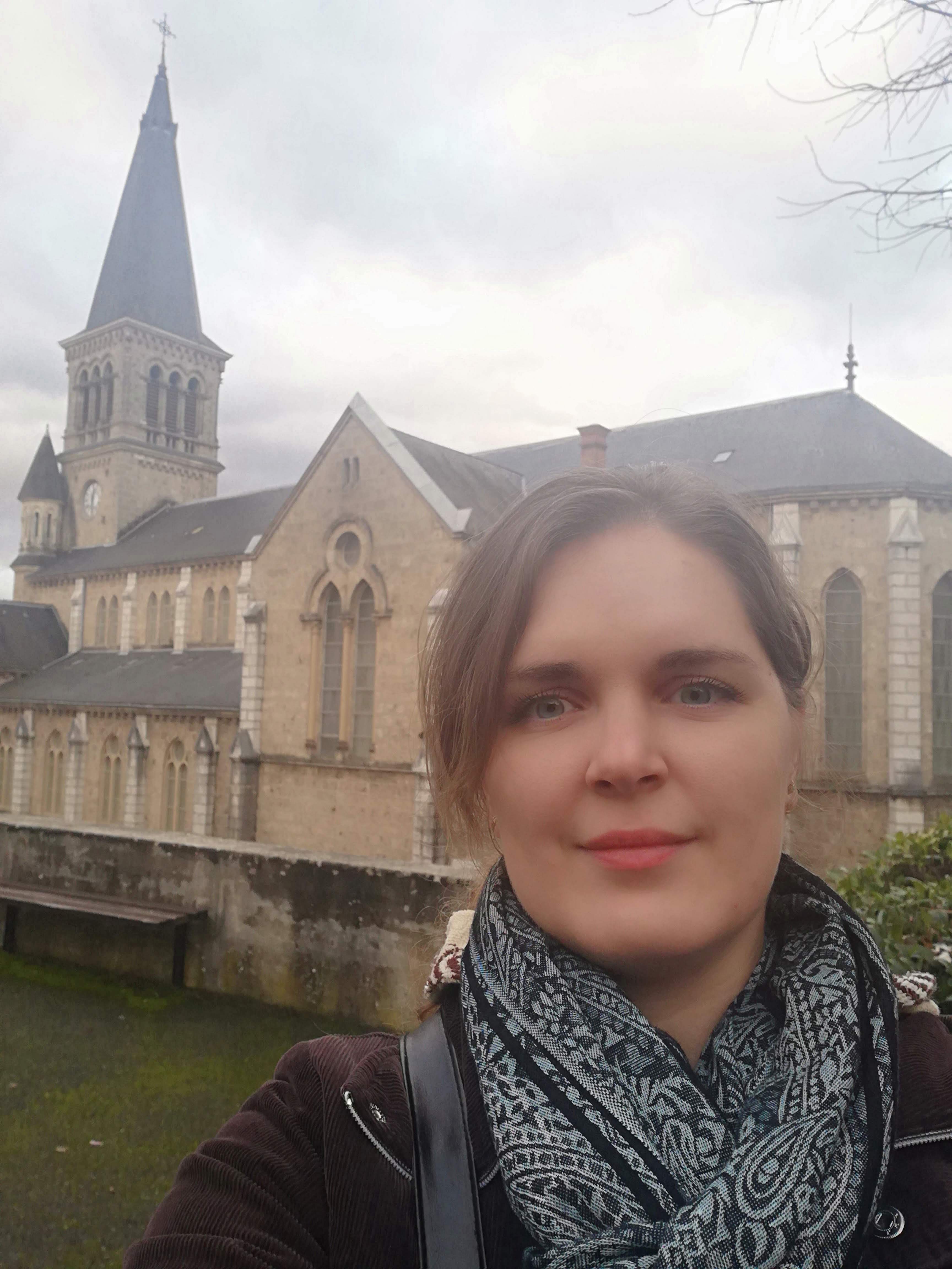 Nous sommes allés dans cette église que je trouve belle car elle possède de beaux vitraux qui racontent l'histoire de France jusqu'à la Première Guerre mondiale et un chemin de croix sur les murs constitué de vraies statues. Admirables également sont le baptistère et l'orgue situés au sommet de l'église à gauche de l'autel. Ce n'est pas une église très ancienne car avec les guerres et tout ce qu'elle a vu, mais, comme exemple du XXe siècle, elle est belle.