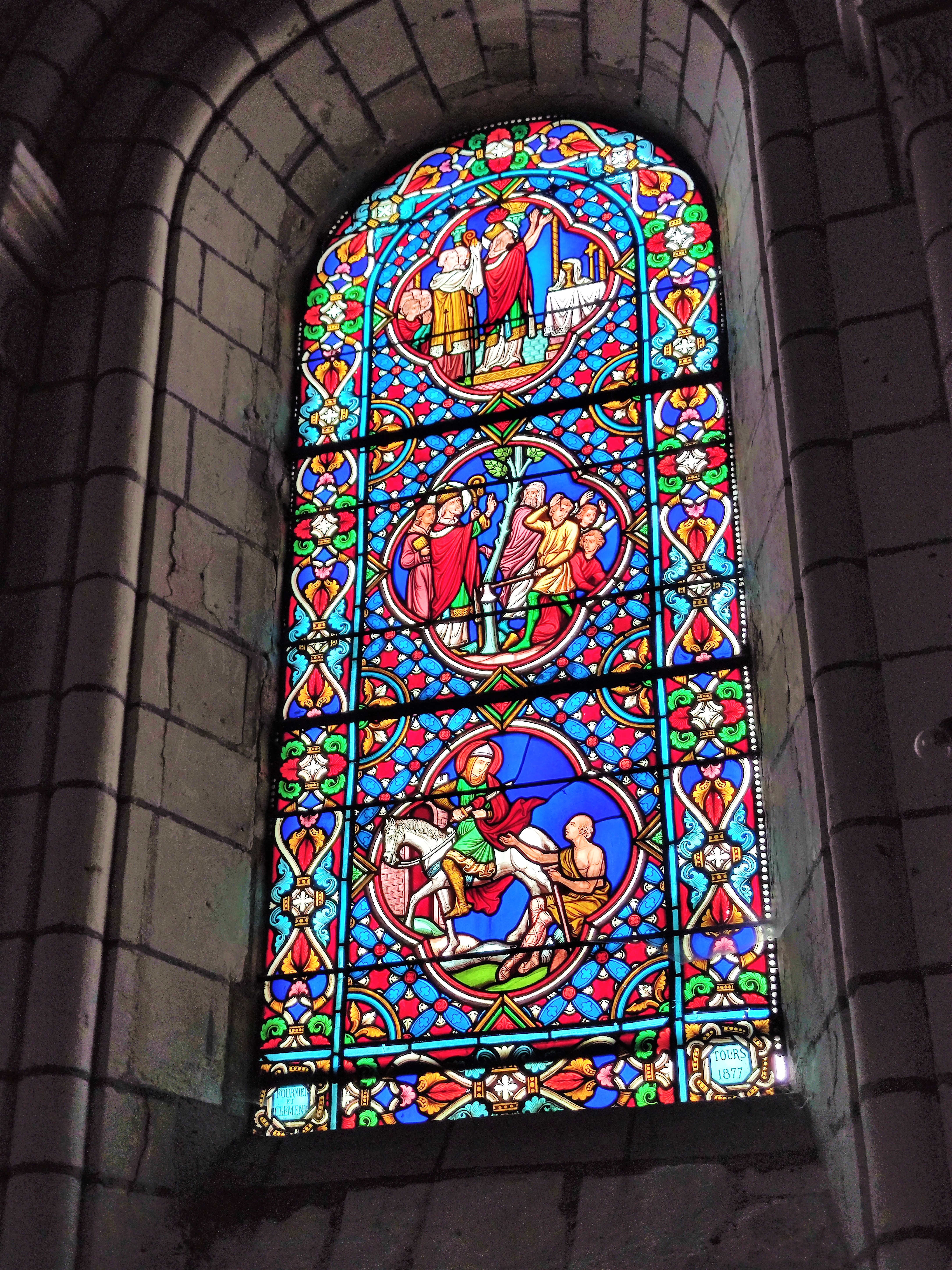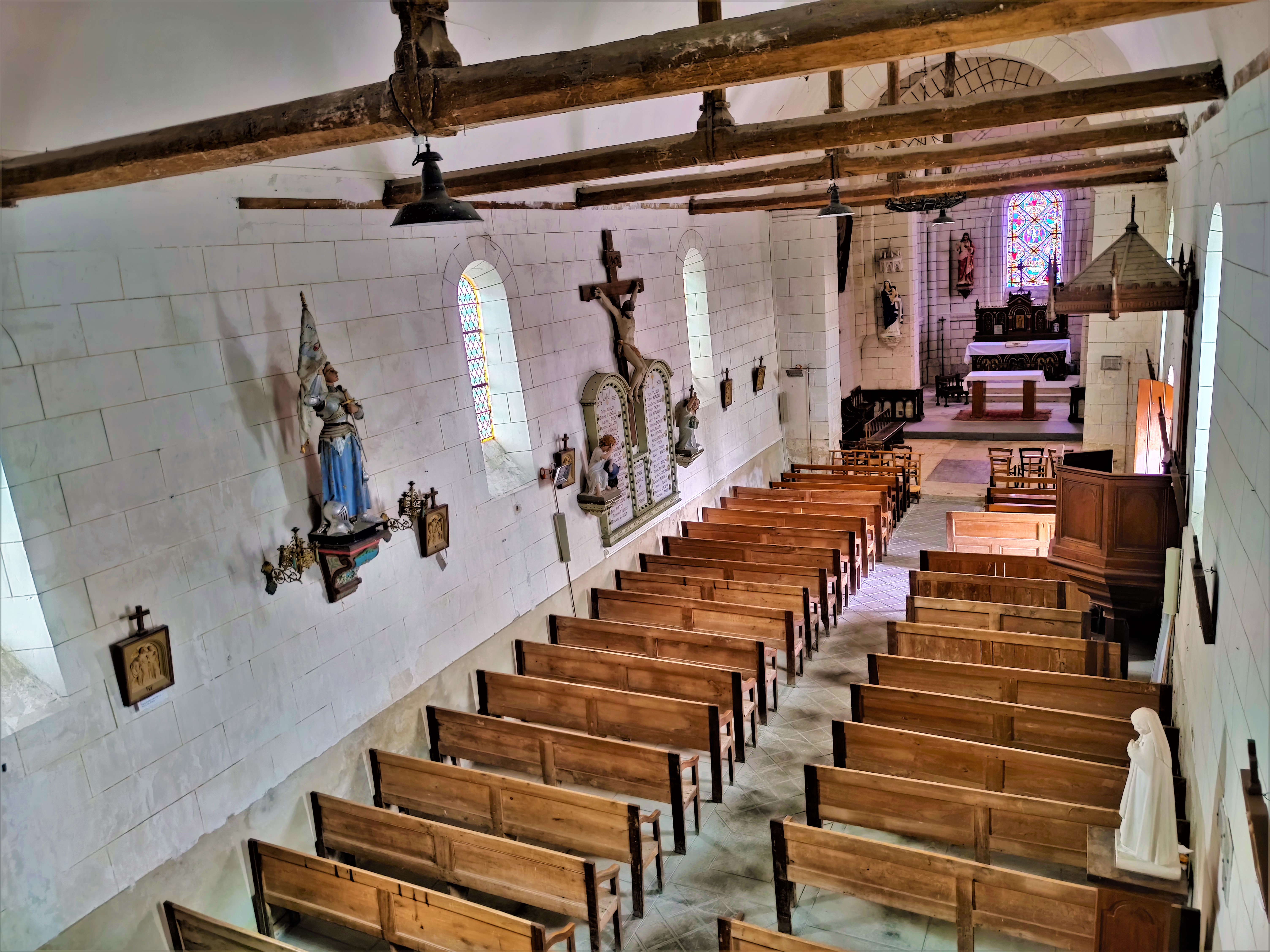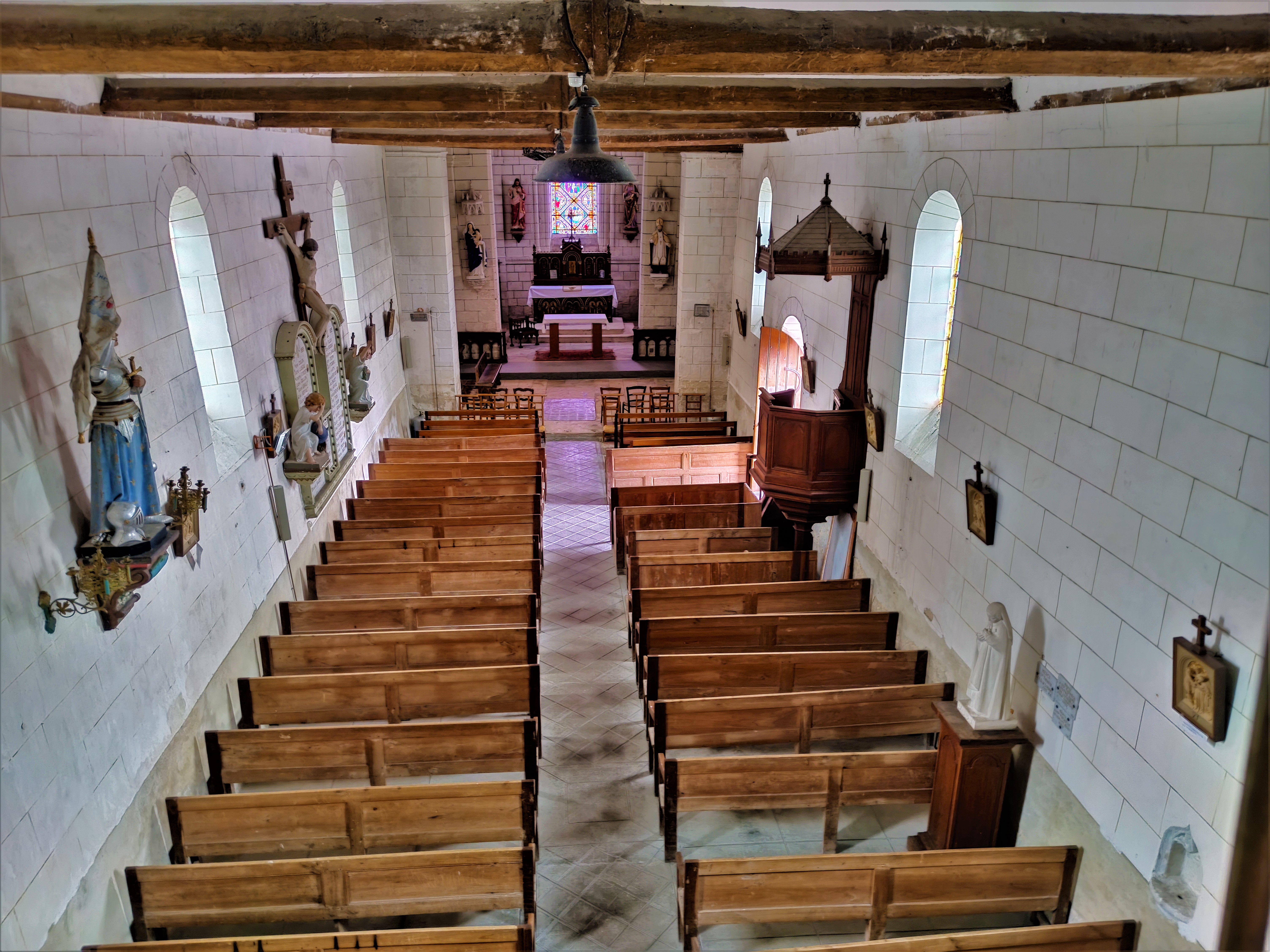 Un lieu de culte chrétien existe dans cette cité depuis 1600 ans, l'église Saint-Venant est la seconde église. Dès le 5ème siècle une église existait à Dolus-le-Sec, construite par Saint-Eustoche (Naissance inconnue-461), 5ème évêque de Tours. Au 11ème, on construisit une nouvelle église, le titulaire était Saint-Pierre. On agrandit cet édifice au 12ème, le clocher fut élevé, le chevet devint plat ; on désigna alors un nouveau titulaire, Saint Venant, grand thaumaturge et moine supérieur de l'abbaye Saint Martin de Tours au 5ème siècle. L'église à simple nef prolongée de la travée sous clocher et du chœur possède des vitraux non historiés dans la nef et historiés dans le chœur. Ces derniers sont de belles réalisations d'ateliers prestigieux. Le maître-autel est coloré et assez spectaculaire, la travée sous clocher et le chœur sont voûtés en croisées d'ogives. La nef primitive était à charpente apparente, au 19ème on la plafonna d'une fausse voûte en berceau brisé. Il faut prendre contact avec la mairie pour emprunter les clés de cette église, héritière de 1600 ans de culte chrétien. Témoin du savoir faire des anciens bâtisseurs, mon respect pour eux ne faiblit pas, cette visite m'a bien plu.