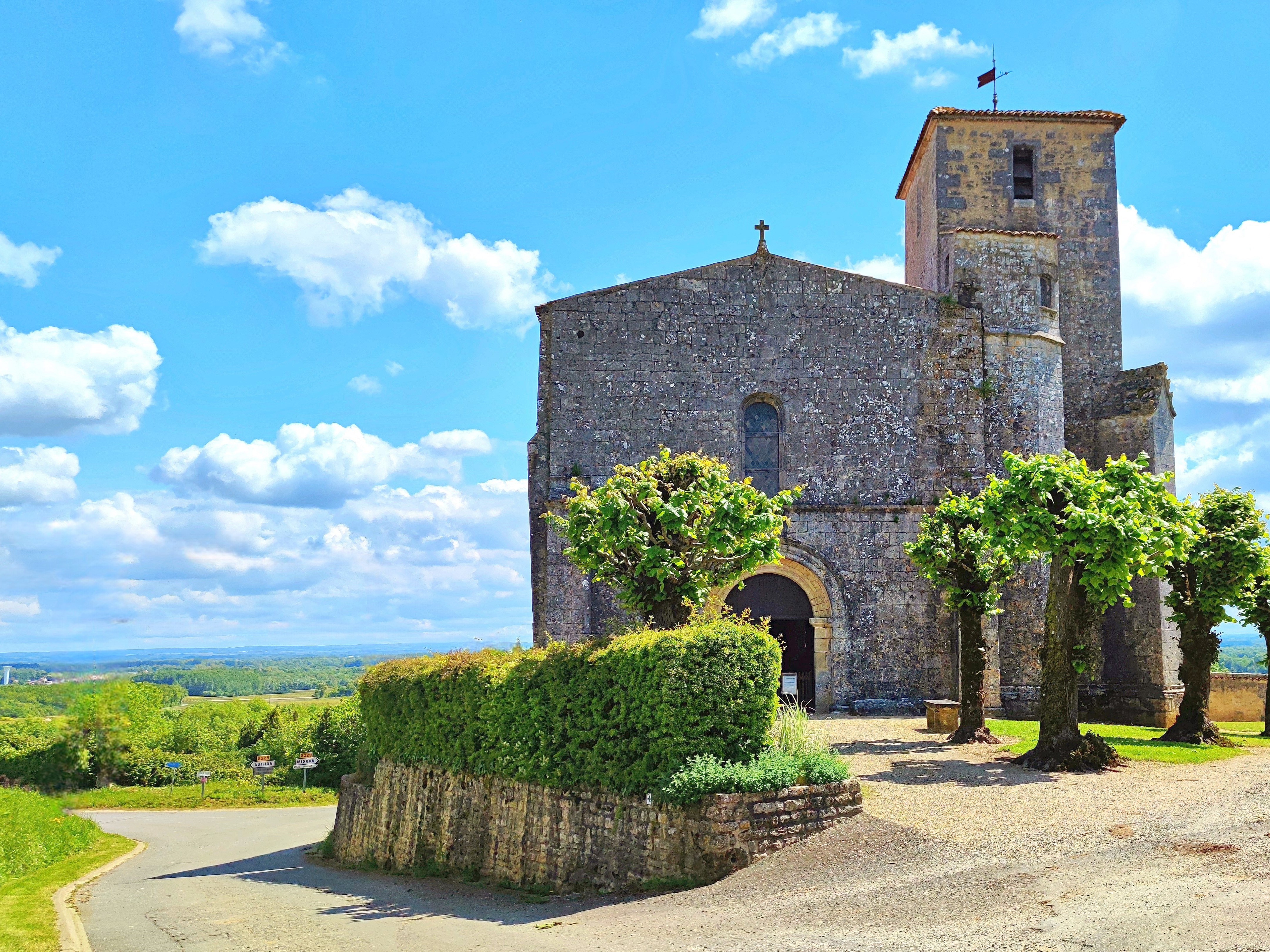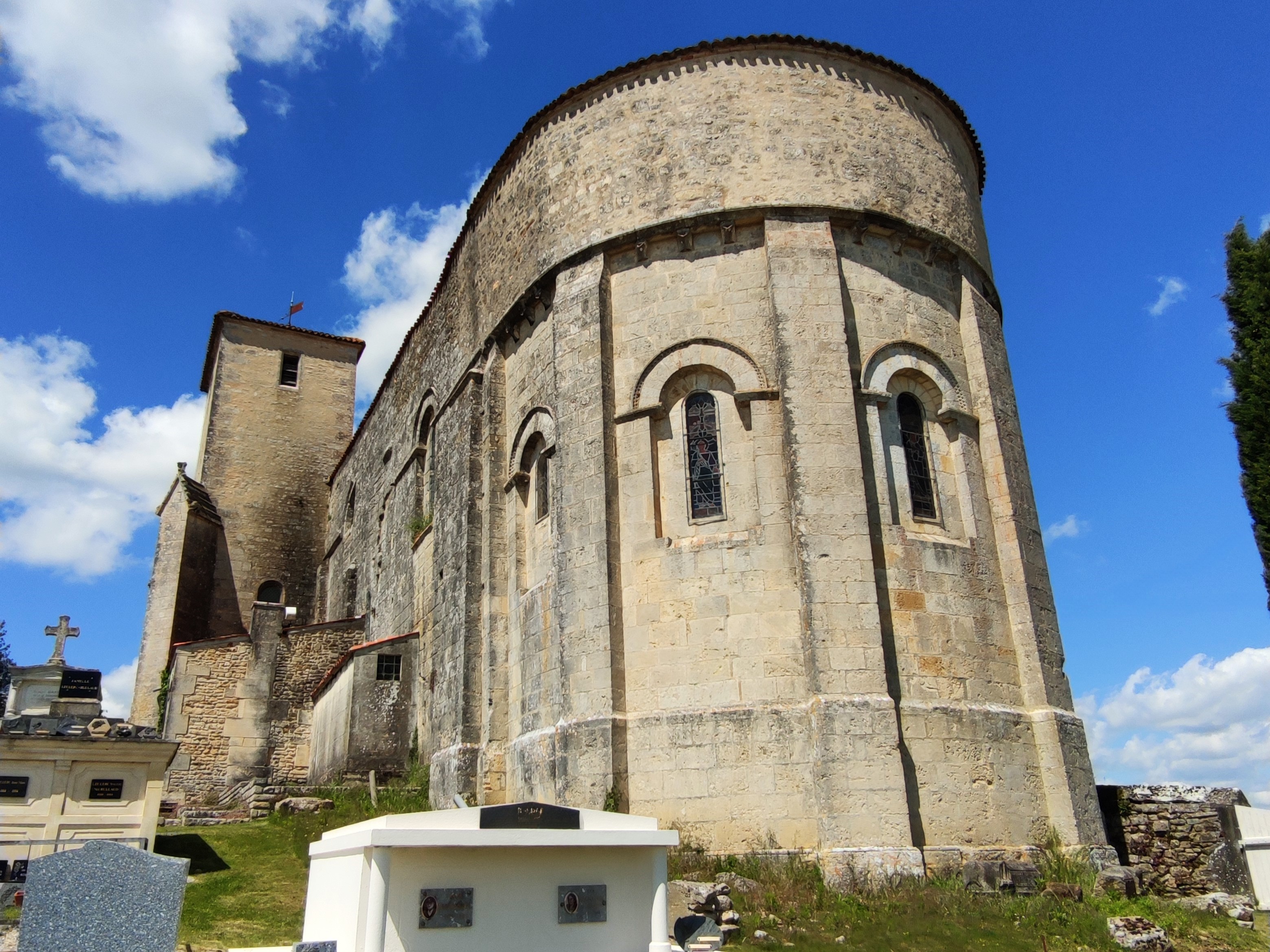 Église ouverte, témoin historique et héritage légué par les anciens bâtisseurs, c'est une belle découverte. Investie du rôle de place forte et de surveillance, cette église fut construite à un emplacement stratégique situé à l'écart du village et au sommet d'une colline. Église fortifiée, la population pouvait se réfugier dans une salle construite au-dessus de l'abside, la nef rehaussée reçut des aménagements défensifs. Cet édifice, victime des conflits guerriers qui ont ponctué son histoire presque millénaire, fut dévasté et reconstruit plusieurs fois. Dans la nef, une voûte en béton a remplacé la voûte gothique du 13è dont il reste quelques vestiges. Cette église romane du 12è est classée par les MH, l'abside depuis 1912 et la nef depuis 1950.