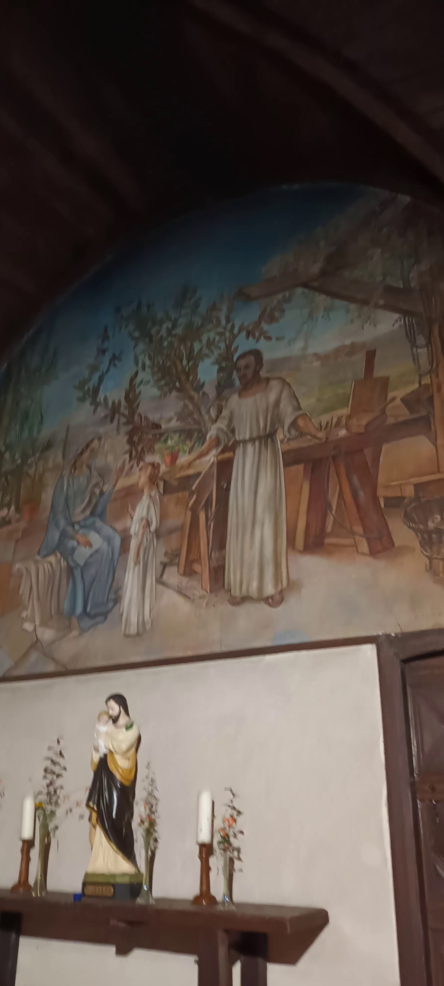 Il faut pénétré dans l'église pour admirer cette fresque de Castaing. Beau retable baroque