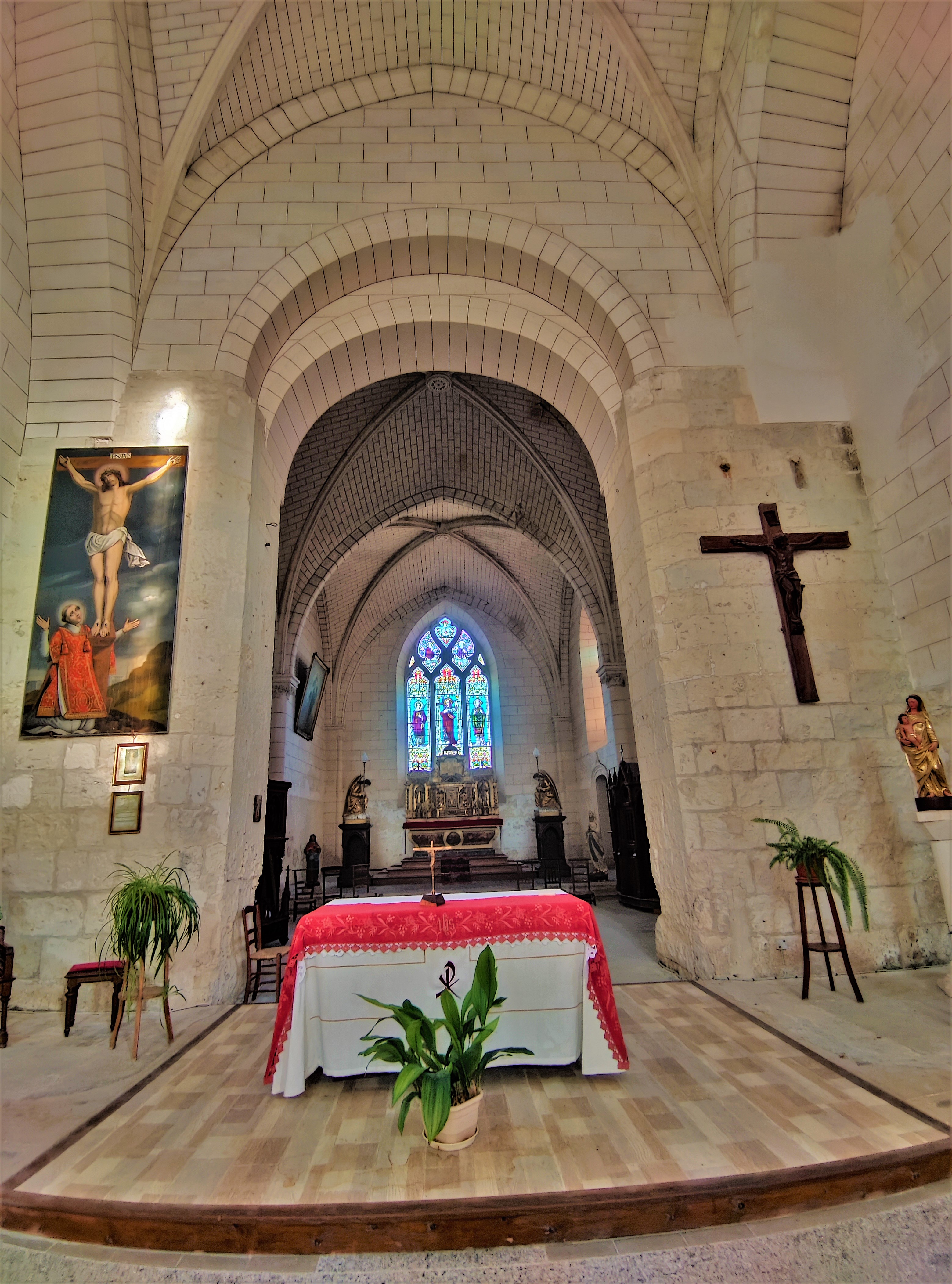 Ouverte et accueillante, c'est un lieu agréable, idéal pour une pause spirituelle. L'église primitive du 12ème siècle a disparu, détruite pendant la guerre de cent ans, reconstruite, et à nouveau dévastée pendant les guerres de religions. Elle sera reconstruite au 17ème et au 18ème siècles, puis modifiée au 19ème siècle. Ouverte et accueillante, elle est bien éclairée malgré un mur Nord dépourvu d'ouverture. Quelques objets protégés, peintures, sculpture et autel principal sont à découvrir, les vitraux du chœur sont intéressants. Voilà un lieu idéal pour une pause spirituelle.