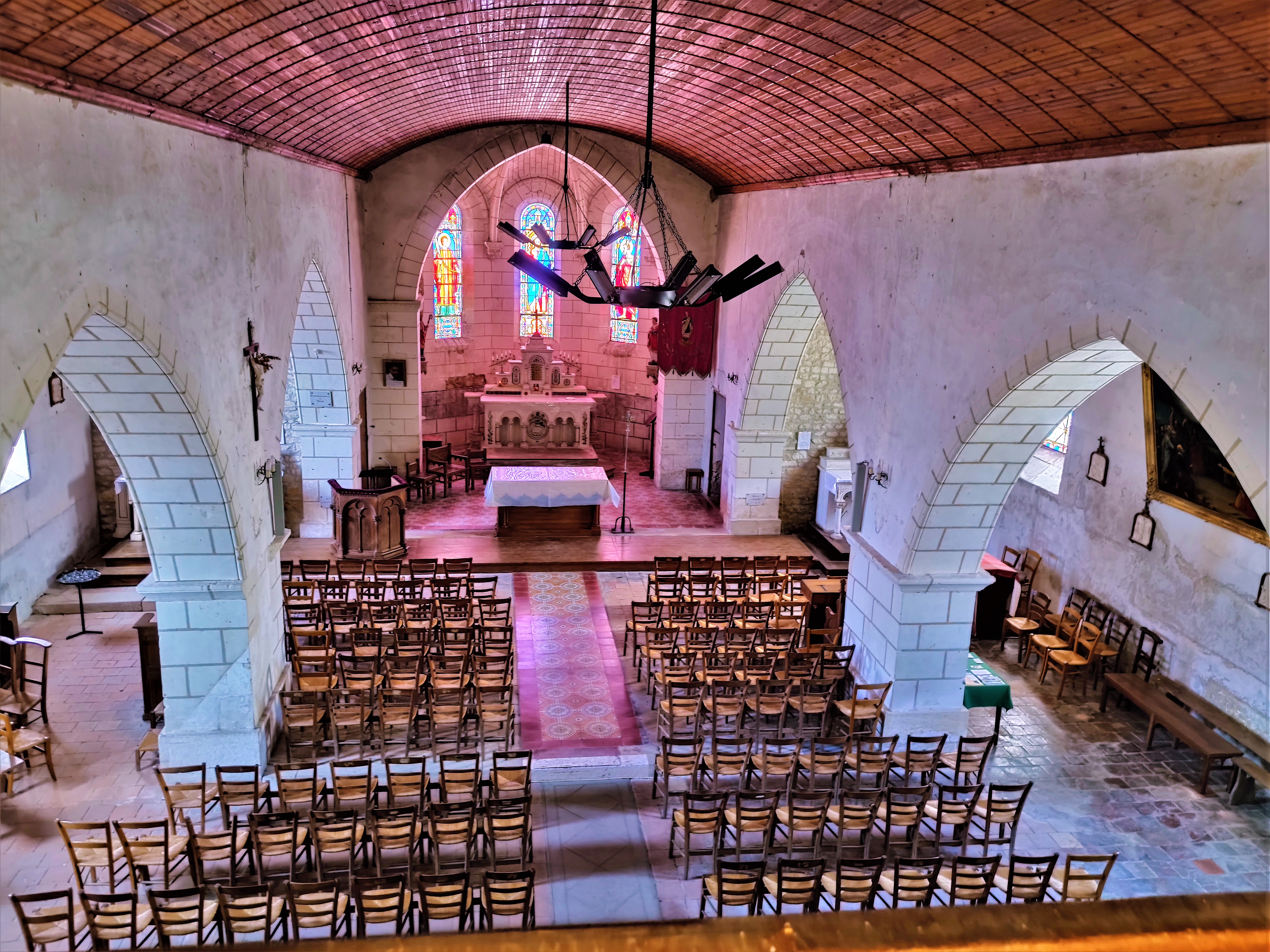 Il faut passer à la mairie pour demander l'ouverture de cette belle église du 19ème. 1832, Marigny-Marmande annexe les communes de Nancré et de Pontçay, une nouvelle église fut construite à la suite de cette augmentation de la population. Cette église sera même agrandie à la fin du 19ème en cette époque très catholique. Restaurée entre 1998 et 2000, c'est une église en bel état aujourd'hui. Édifice accueillant, les 3 vaisseaux de la nef sont plafonnés en bois, les ouvertures en plein cintre, les arcades en arcs légèrement brisés. L'abside est voûtée en croisées d'ogives. Vitraux, statuaire, autels et mobilier concourent à créer un espace qui rassemble, parfait pour toute activité spirituelle ou pour un simple moment de détente. La commune abrite les vestiges du prieuré et de l'église de Ponçay à Marigny-Marmande, protégés par les Monuments Historiques depuis 1931.