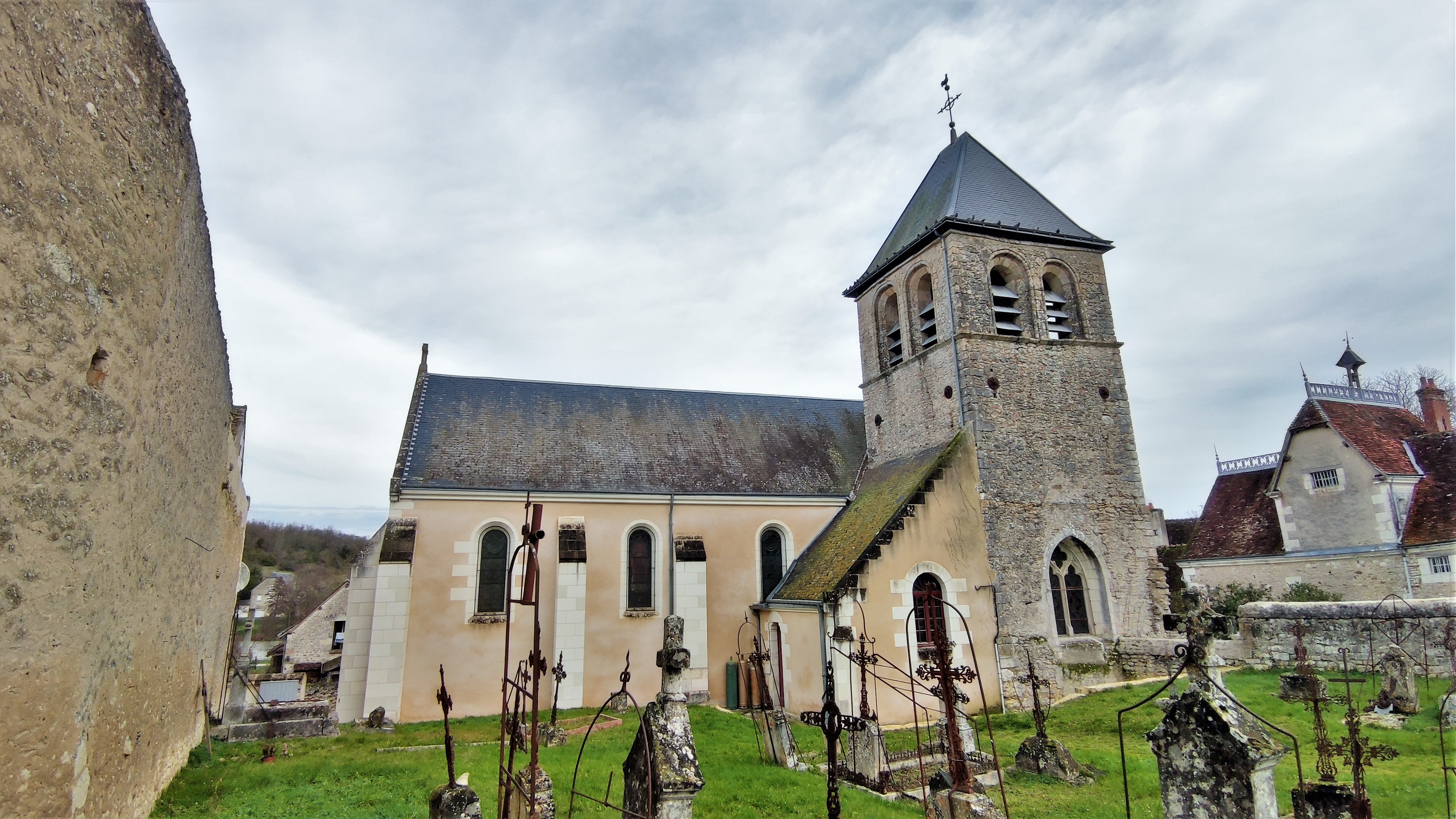 Église du 12è, des chapelles ont été ajoutées au 15è et 16è, la nef fut reconstruite au 19è. L'église paroissiale Saint Vincent était fermée lors de mon passage, aucune indication ne figurait sur les lieux concernant les possibilités de visites. Je n'ai pas réussi à en faire le tour, le chevet et ses modillons du 12ème donnant sur une propriété (privée ?) semblent inaccessibles. Cette partie orientale est protégée par les MH (Inscription depuis 1951). Renseignements pris par la suite à l'Hôtel de ville, il faut prendre contact avec le secrétariat de la mairie pour pouvoir y entrer. C'est finalement une visite assez frustrante, le manque d'information sur place est dissuasif pour les curieux, dommage, cette cité est dans son ensemble très accueillante Le village est agréable, son plan d'eau est un espace de loisir inscrit dans la modernité, le patrimoine local est superbe : Chartreuse du Liget aux vestiges remarquables, la Chapelle du Liget et ses fresques médiévales, le Château-hôtel de la Corroirie, quelques curiosités (aqueduc, moulin, pyramides de la forêt de Loches).