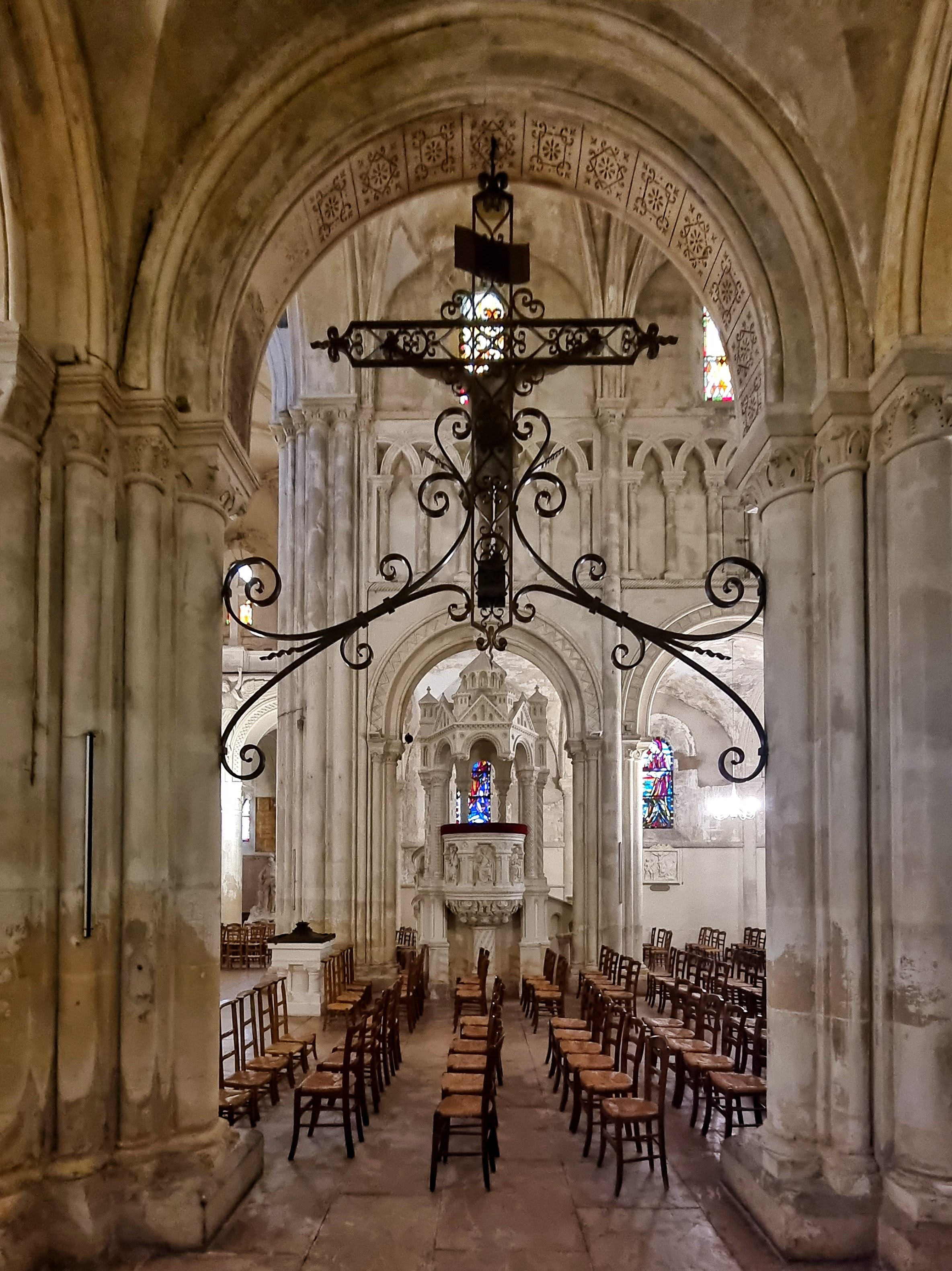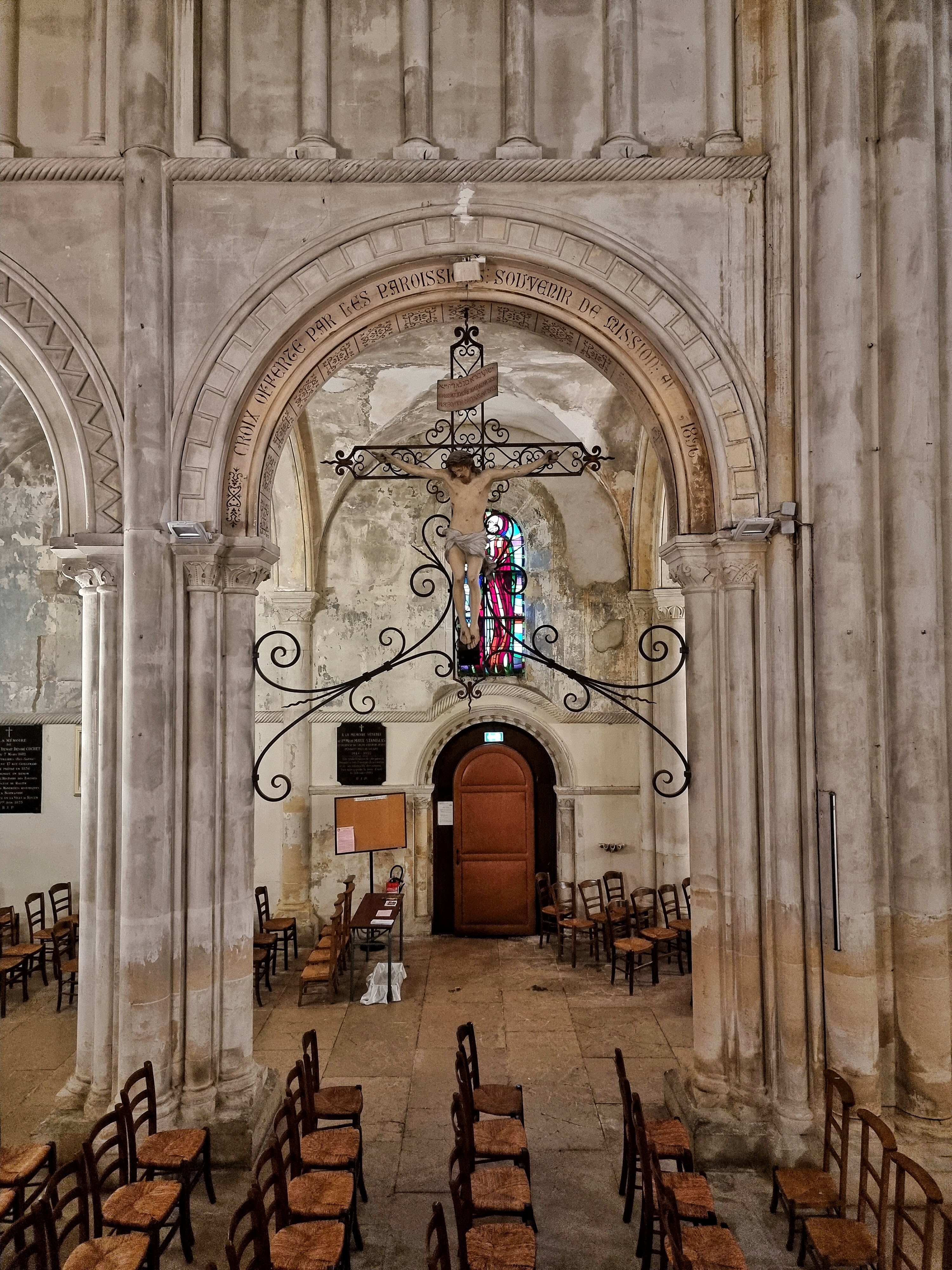 Explicatif des vitraux par un greeter . Église curieuse sans parcours de croix.