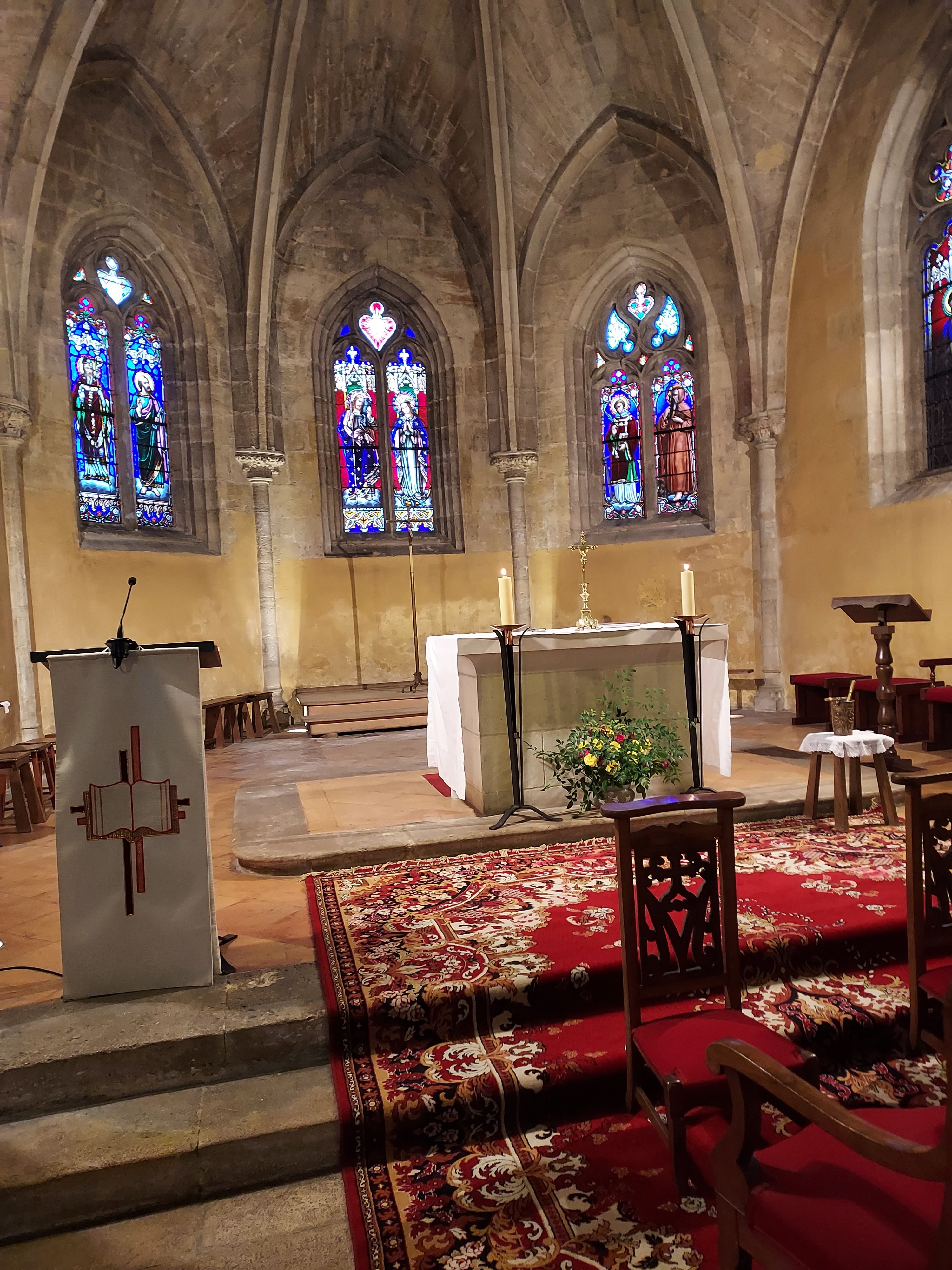 Invitée à un mariage, j'ai adoré cette église avec de superbes vitraux et une atmosphère paisible et positive.