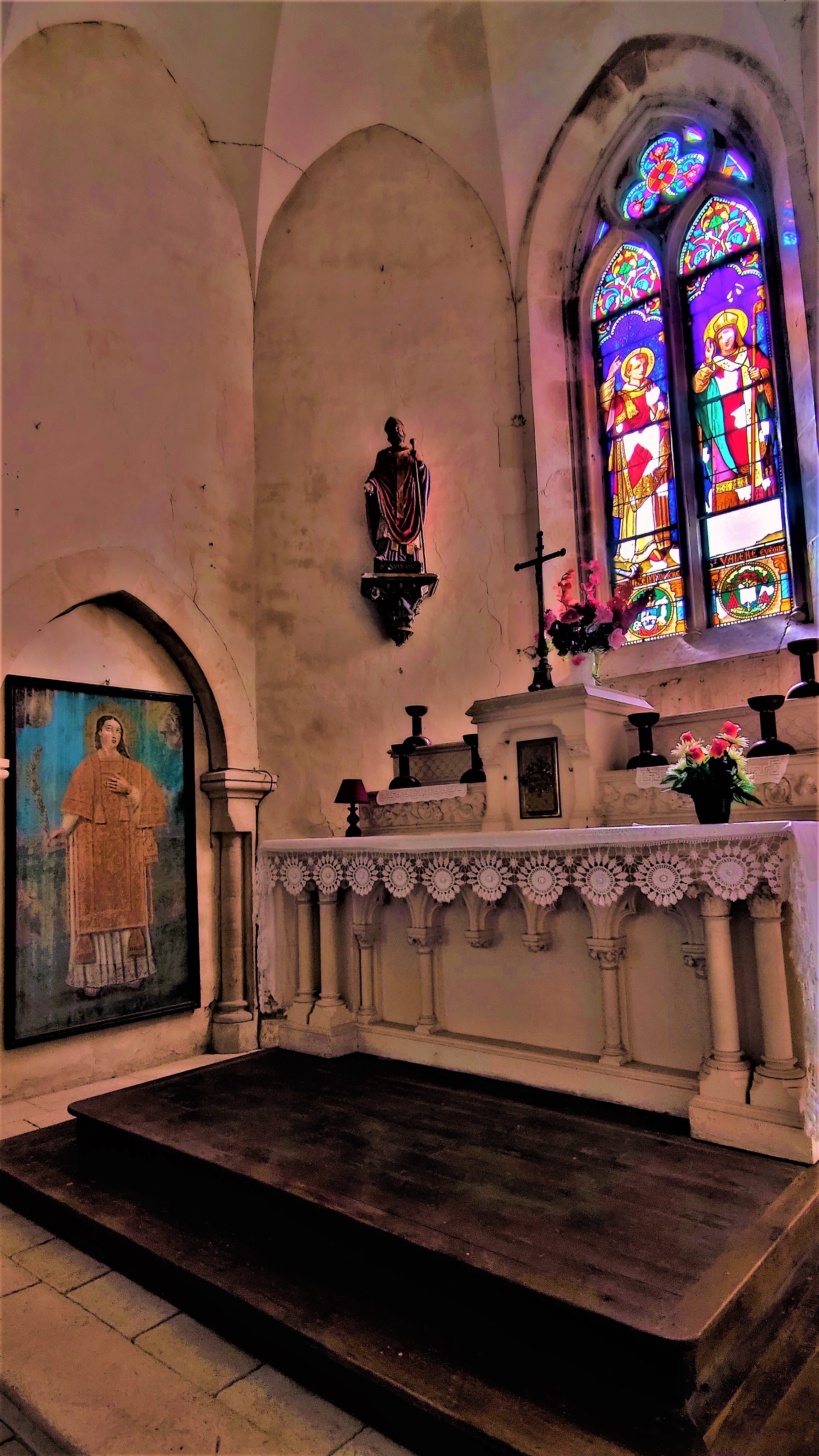 Région habitée depuis des millénaires, cette église est le énième sanctuaire en ces lieux. Il fut en cet endroit un temple gallo-romain où l'on célébrait les dieux gaulois, les dieux romains et l'empereur. Puis avec l'avènement du christianisme, on installa des sanctuaires monothéistes. Une église romane fut construite au 11è, elle dépendait du prieuré de Dœuil-sur-le-Mignon (situé à 20km). Cet édifice atteignit le 19è en ayant survécu aux conflits féodaux (14è-15è) et aux guerres entre Papistes et Huguenots (16è). Fin 19è, l'ancienne église menaçait ruine, une reconstruction s'imposait dans ces temps très catholiques. L'église actuelle fut alors édifiée, elle fut consacrée en 1880. Bâtie sans doute à la hâte, comme beaucoup d'églises du 19è, elle fut interdite d'accès en 1999, puis consolidée et rouverte au culte. Son intérêt principal est d'exister ; cet édifice offre aux visiteurs un endroit bien pratique pour toute activité d'intériorité. Dans ce village agréable, l'accueil à la mairie fut courtois et instructif, ce fut le passage obligé pour obtenir l'ouverture de l'église. Je remercie le monsieur qui m'a accueilli à la mairie pour sa patience et sa disponibilité.