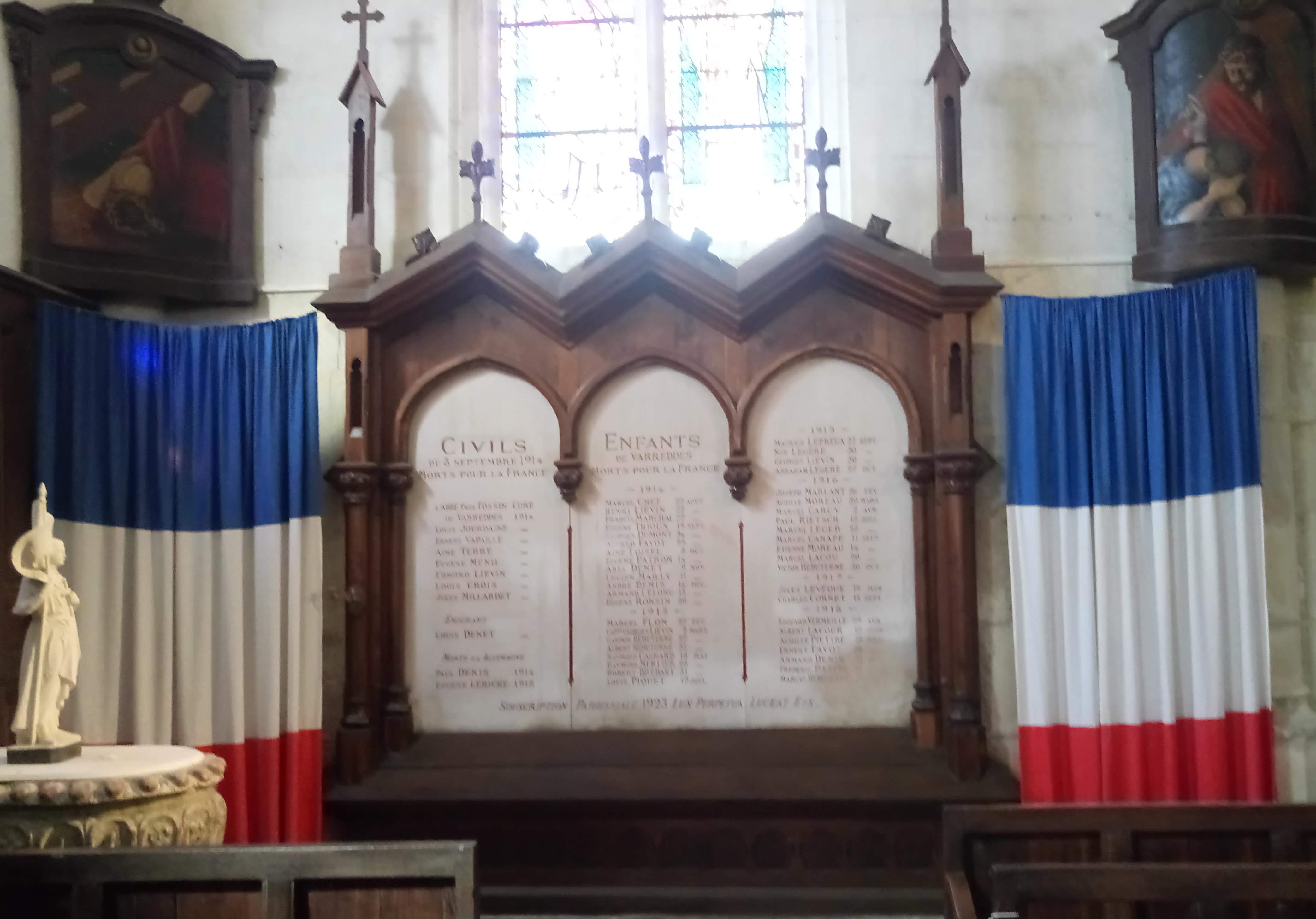 Quand vous pénétré dans cette église lumineuse et au charme authentique, elle vous invite pour quelques instants à méditer, écouter la splendeur du silence intérieur. Elle est l'une des plus spacieuse église de l'agglomération nord Seine et Marne. En sachant que St Arnoul est le 1er St Patron paroissial et St Vincent le 2ème St Patron paroissial. Un peu d'histoire : l'église de Varreddes fut plusieurs fois dévasté. Malheureusement par les Viking (860-887), la guerre de cent ans (1337-1453), les guerres de religion (1562-1598). A la révolution les villageois sauvent l'église en invoquant des réparations et qu'elle conviendrait à la tenue d'assemblée générale. Au début de la guerre 1914-1918 le Père Fossin fit parti des otages des Allemands. Mort pour la France, il a été massacré avec les autres otages du village. (En remerciant les passeurs d'histoires). Pour les messes voir sur le site cathomeaux. fr . Pour Varreddes le 4ème samedi du mois, plus les célébrations importantes dans l'année (jour de fête).