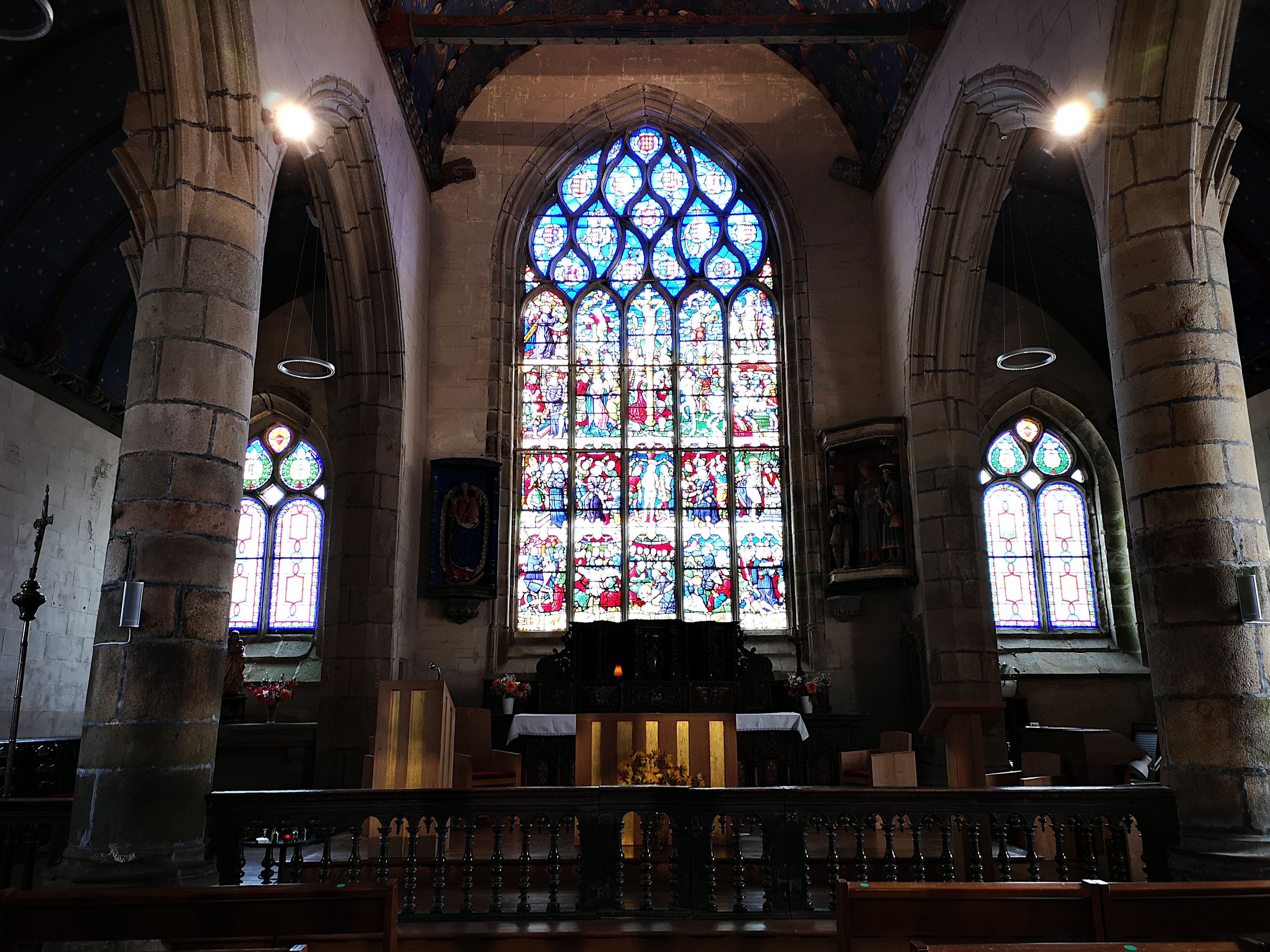 Enclos paroissial plutôt impressionnant au regard de la taille de la ville. L'ossuaire est magnifique, l'intérieur de l'église aussi
