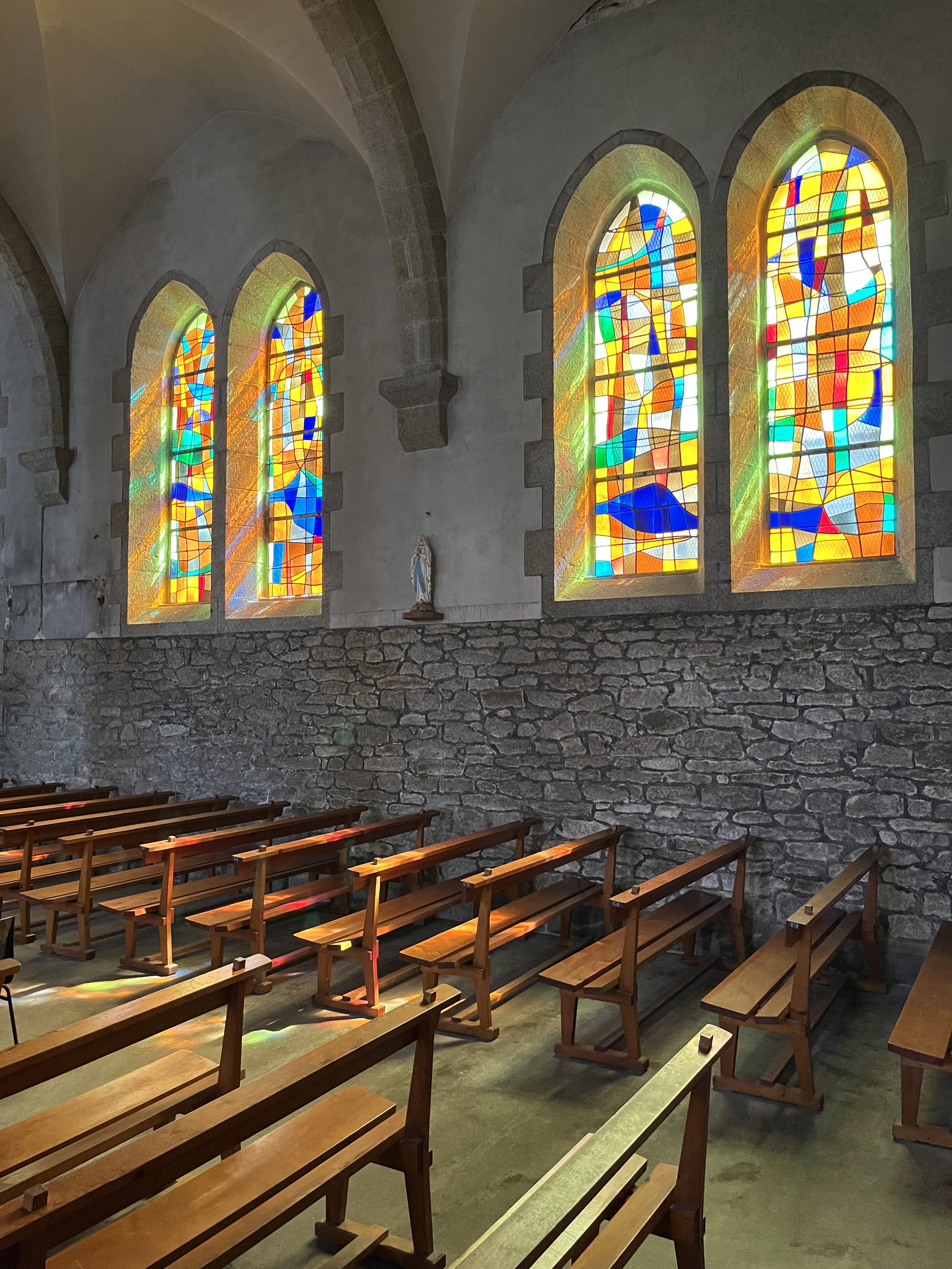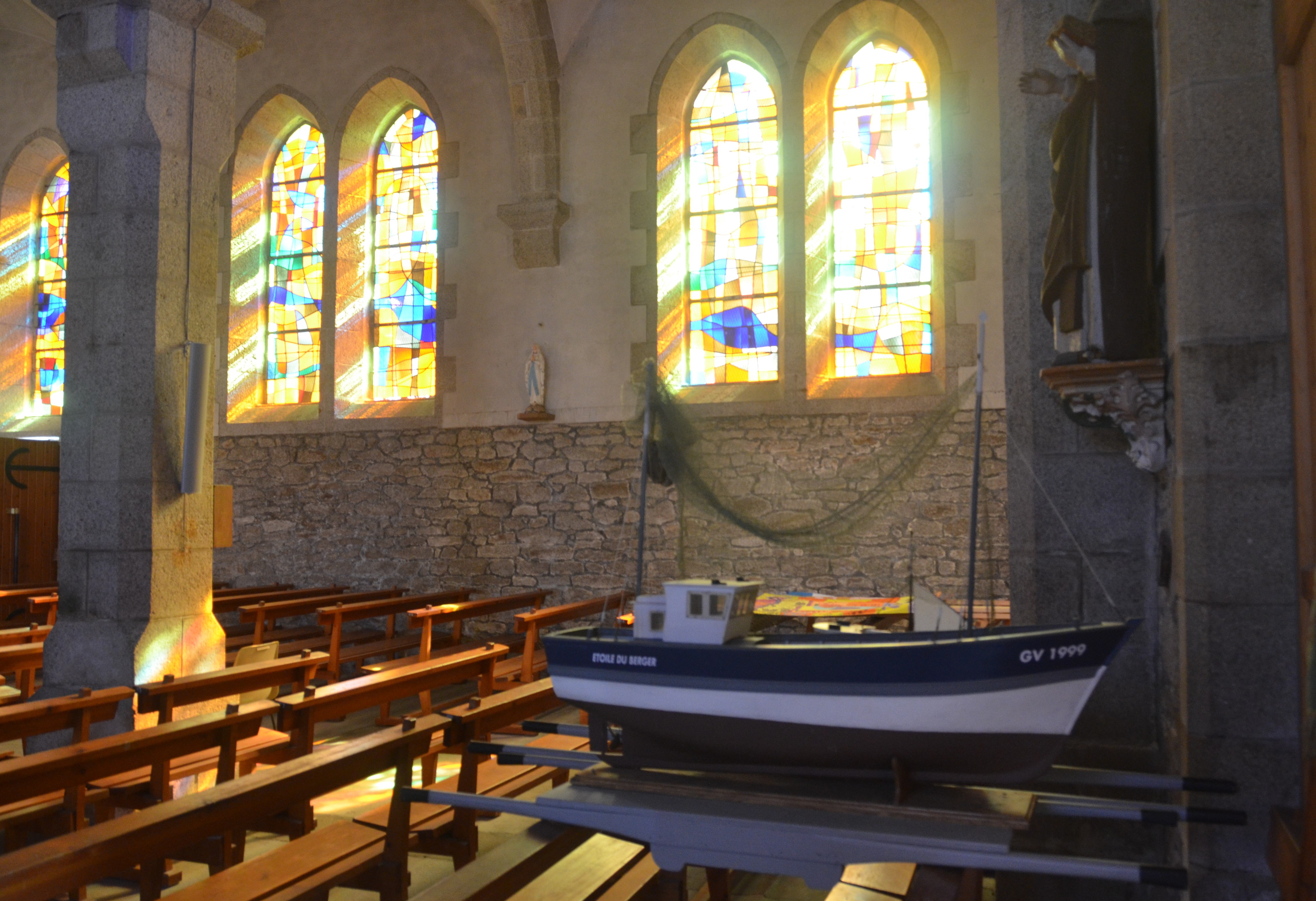 Une jolie petite église dans le village de pêcheurs du Guilvinec. Le caractère du lieu en tant que lieu de pêche se reflète également dans l'église. Les dimanches et mardis, une partie du grand marché hebdomadaire a lieu juste en face de l'église. Beaucoup plus fréquenté le dimanche que le mardi. Cela vaut le détour si vous préférez vous déconnecter le dimanche.