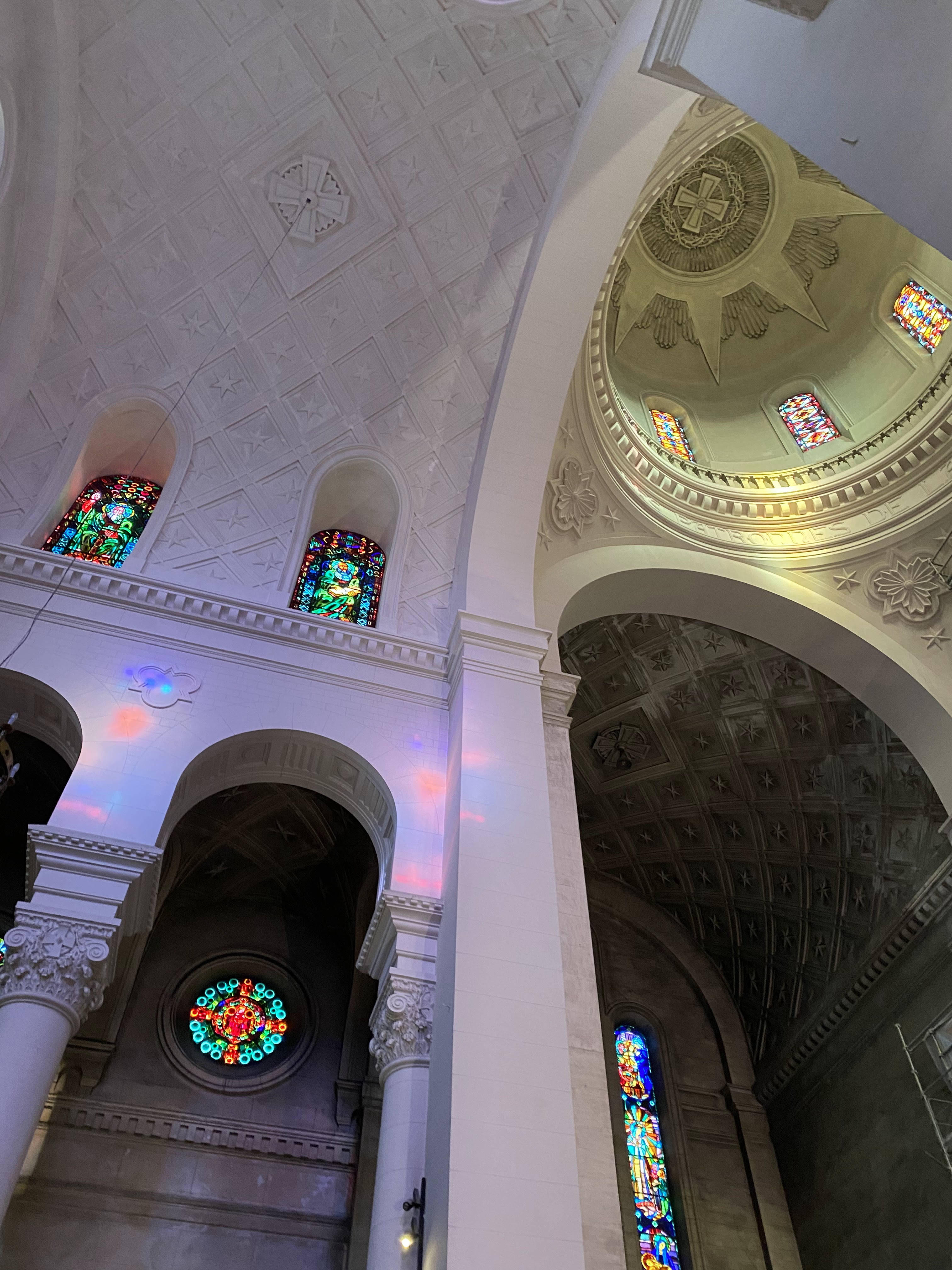 La rénovation est toujours en cours, l'église est très jolie, surtout le deuxième autel. Très confortable et paisible.
