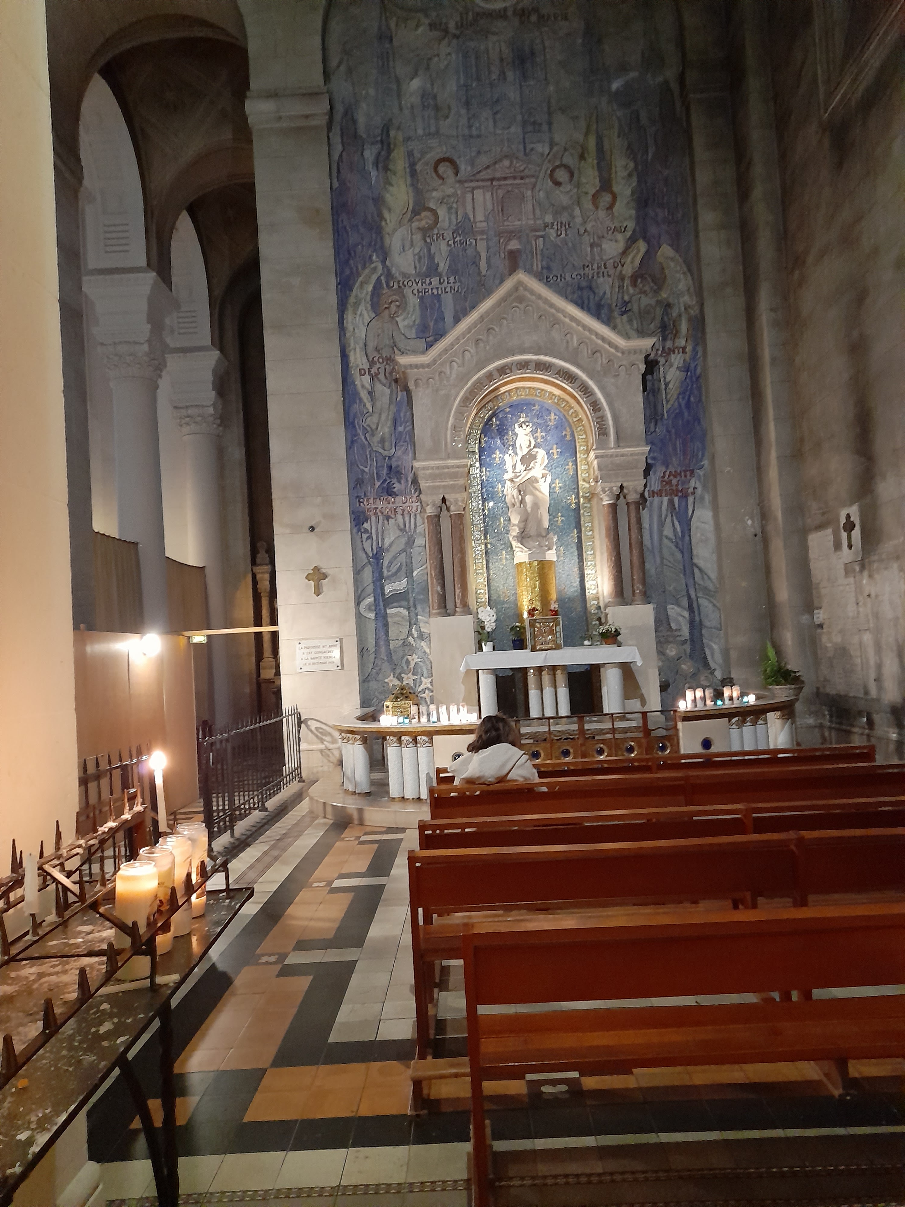 Très belle église avec sa mosaïque 😀 Dommage que les jeunes ne viennent pas à la messe . 😞